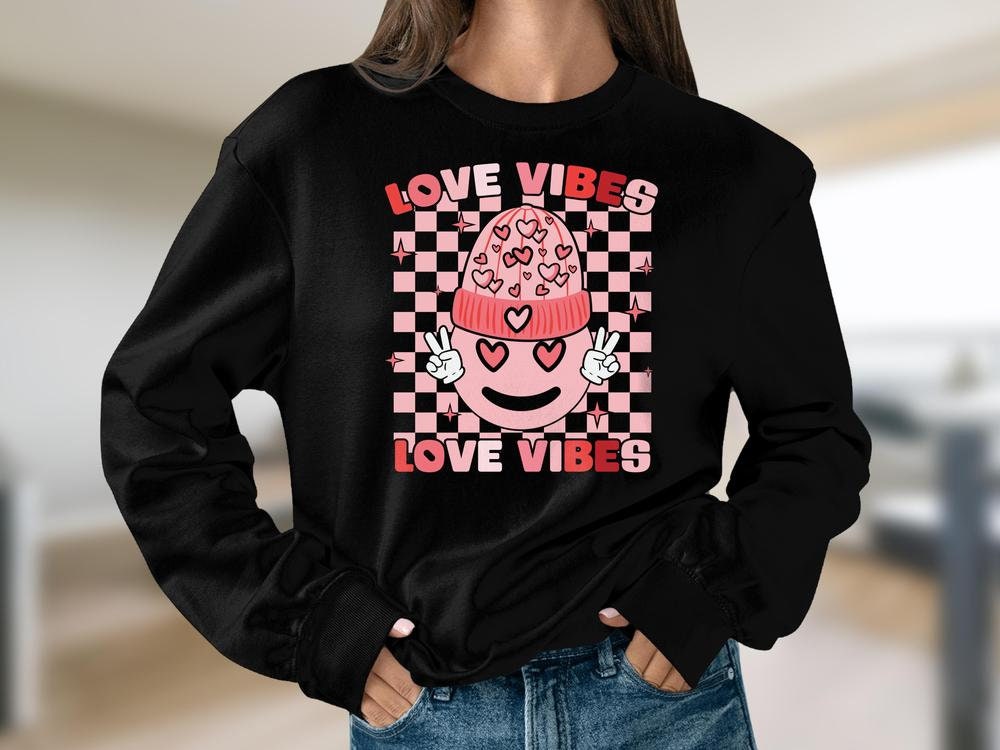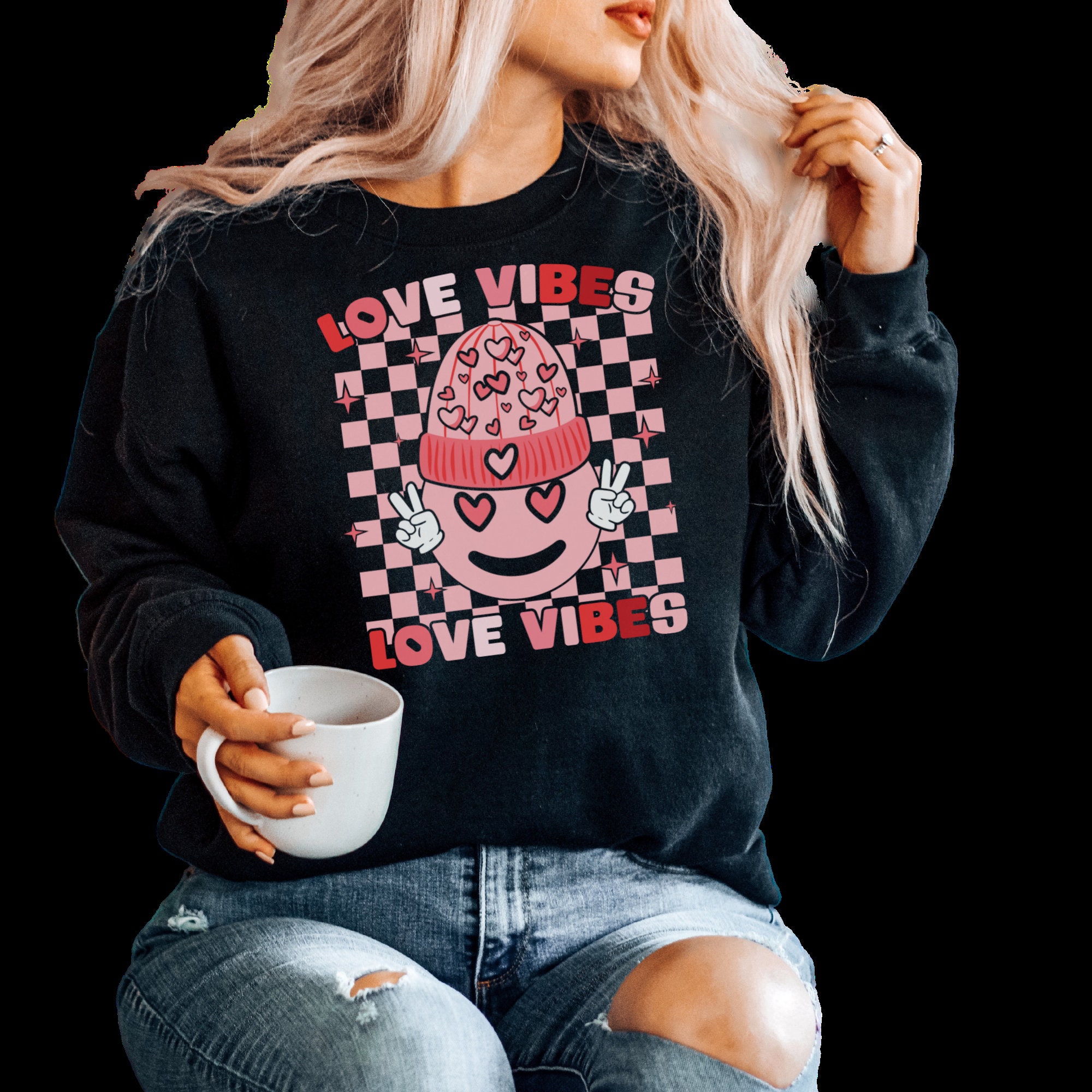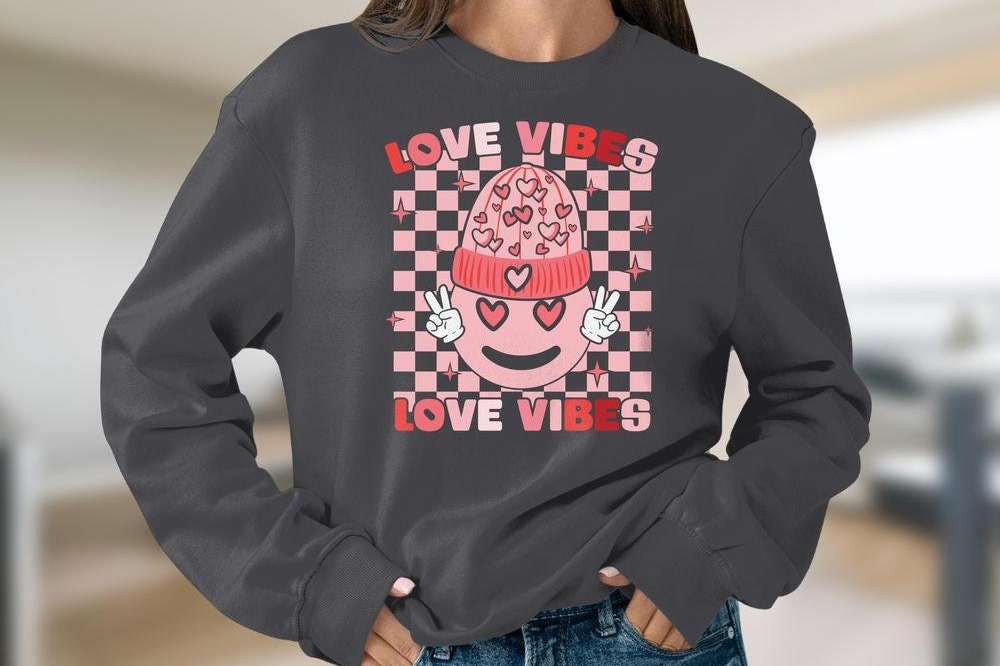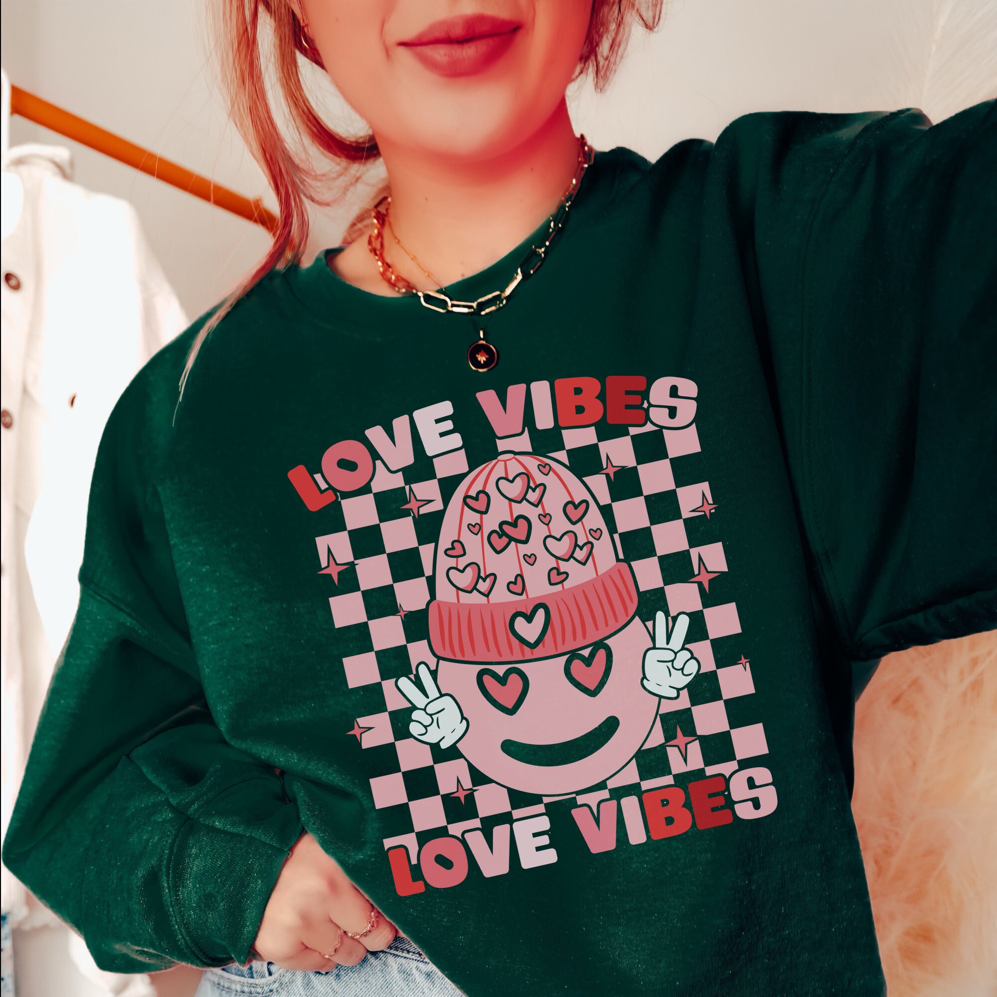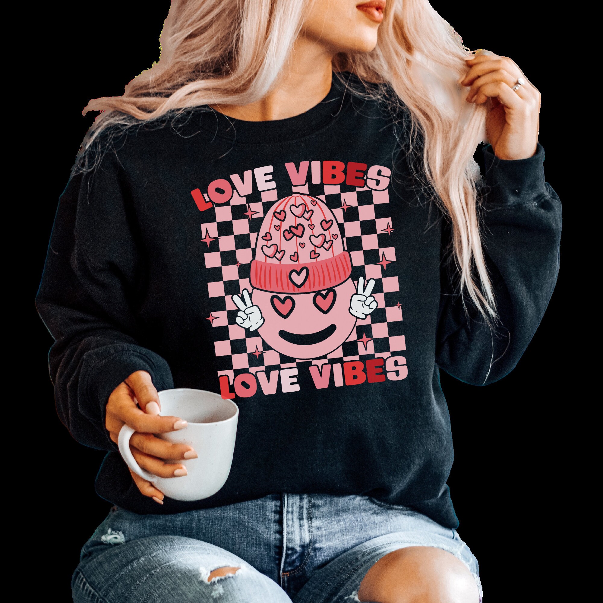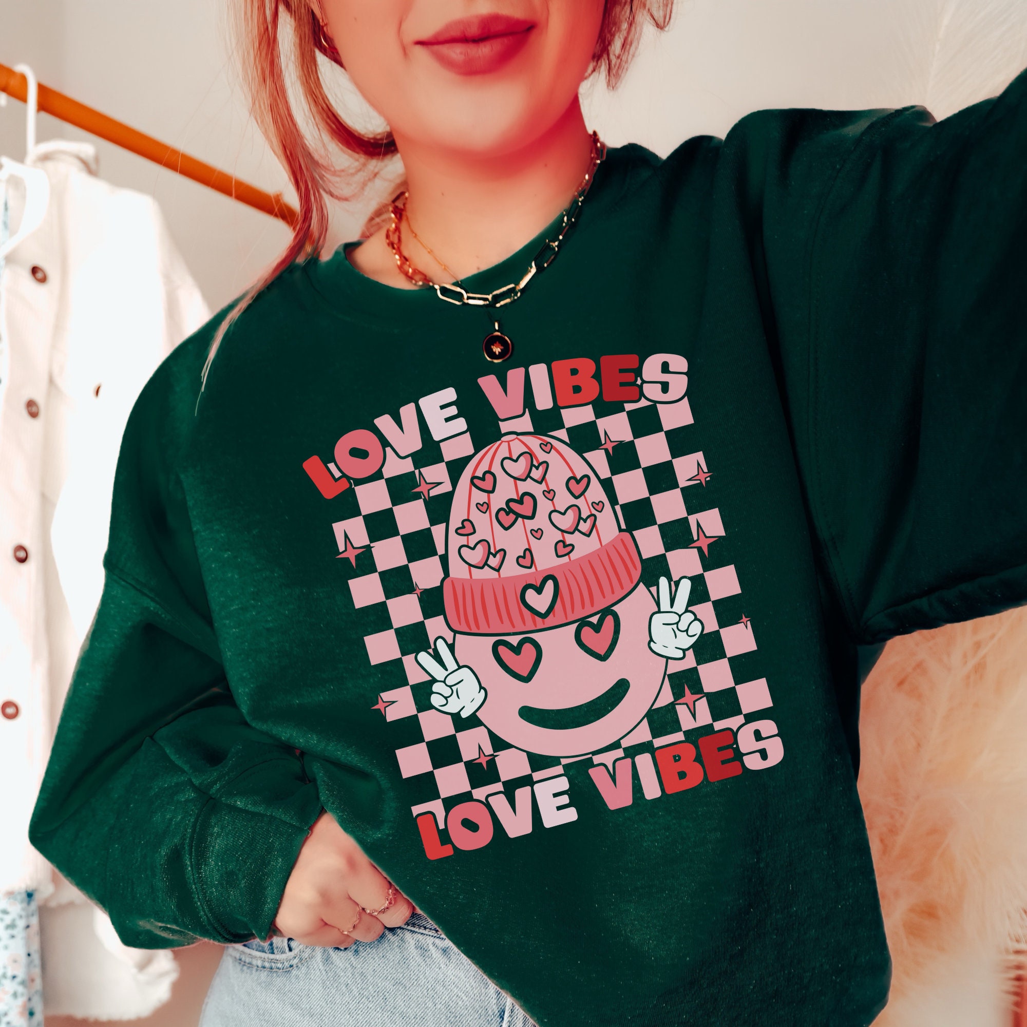 Retro smiley love vibes Sweatshirt Unisex, Cute Valentines Day Sweatshirt, Sweatshirt Unisex Heavy Blend Crewneck Gildan 1800