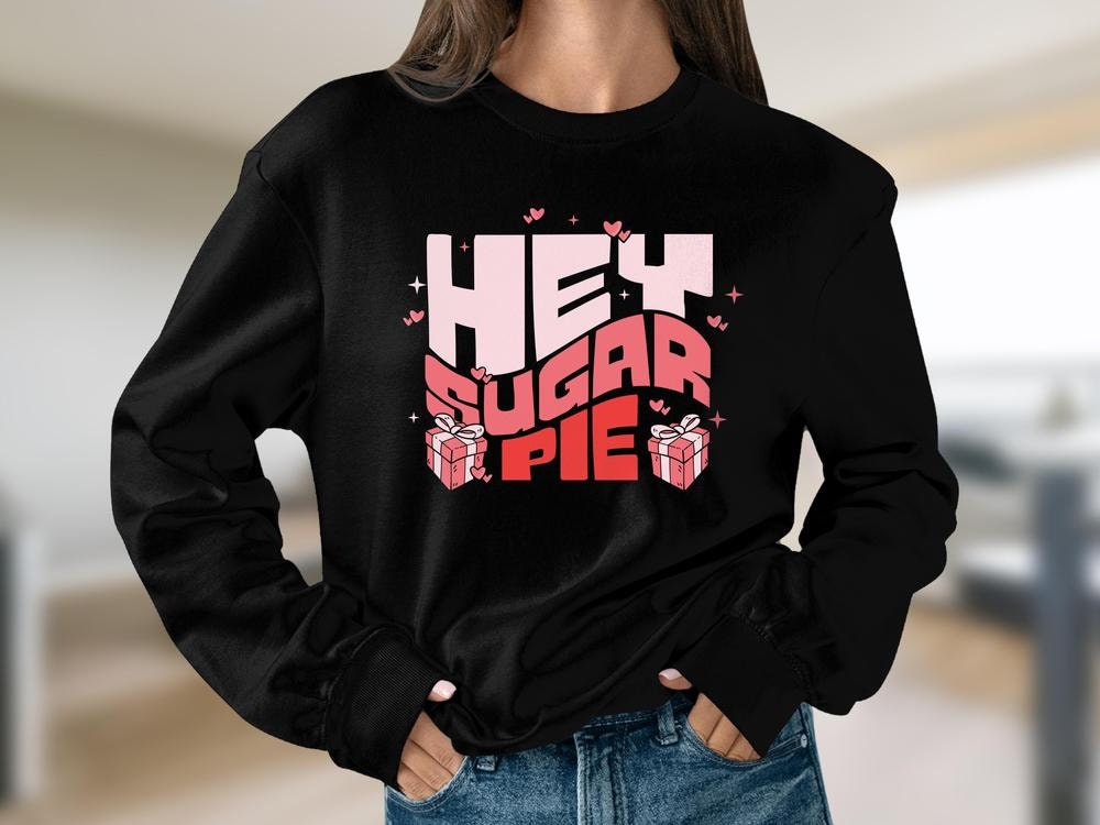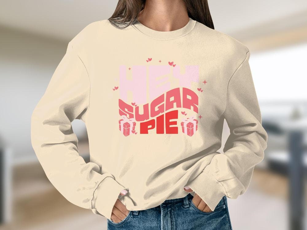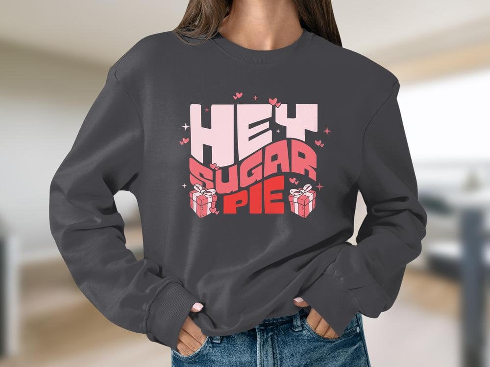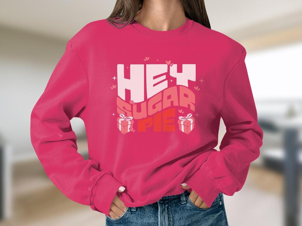 Retro Cute Hey Sugar Pie Sweatshirt Unisex, Cute Valentines Day Sweatshirt, Sweatshirt Unisex Heavy Blend Crewneck Gildan 1800