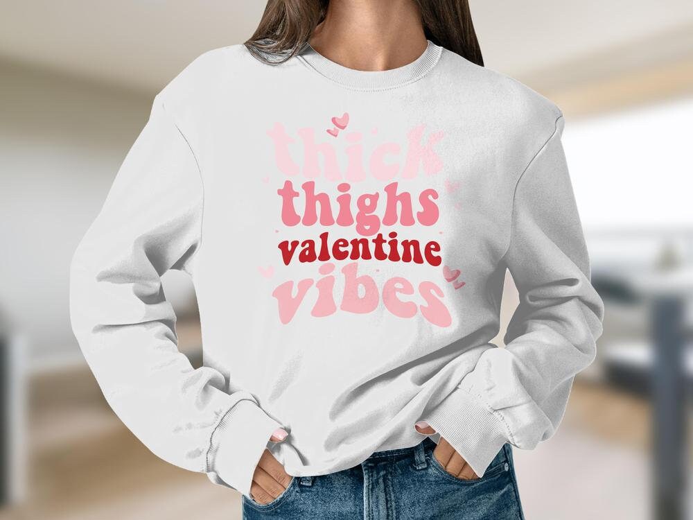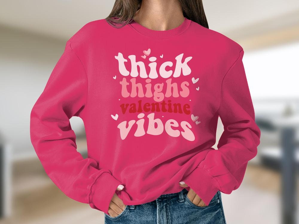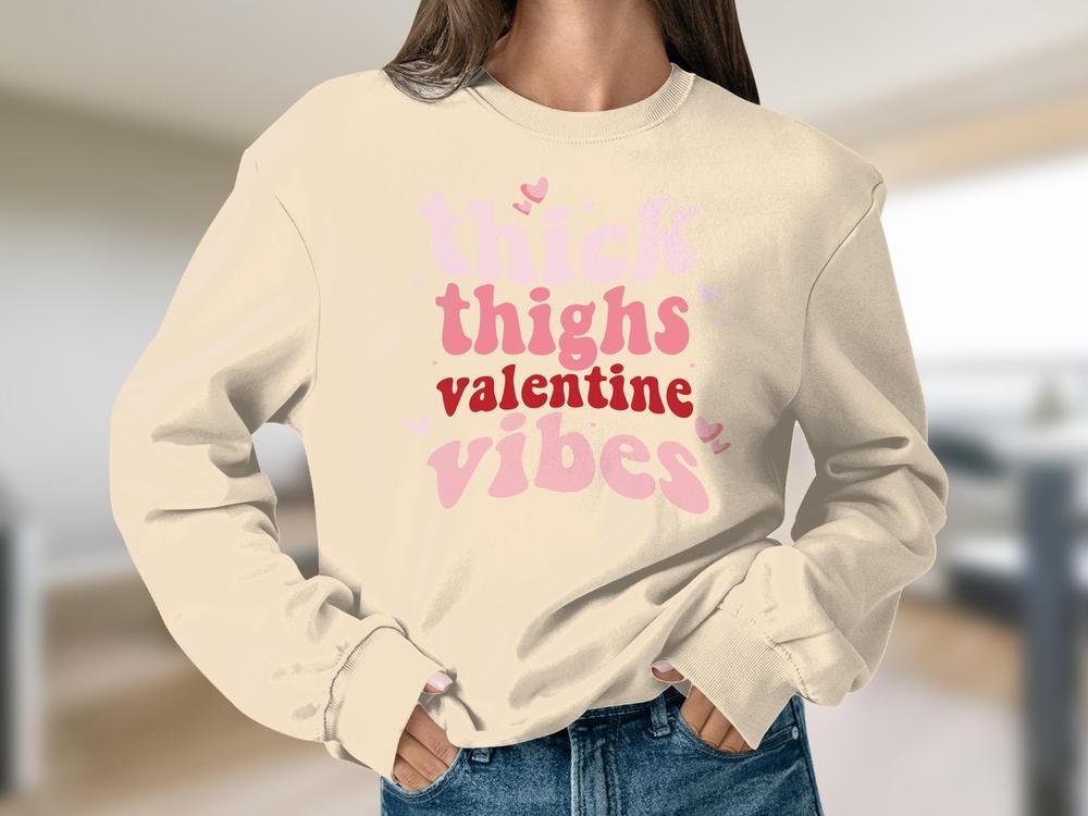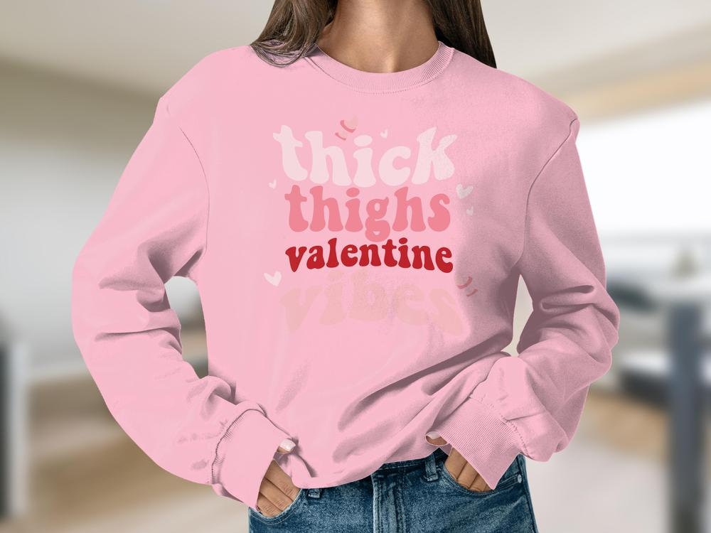 Retro Thick Thighs and Valentines Vibes Sweatshirt Unisex, Cute Valentines Day Sweatshirt, Sweatshirt Unisex Crewneck Gildan 1800