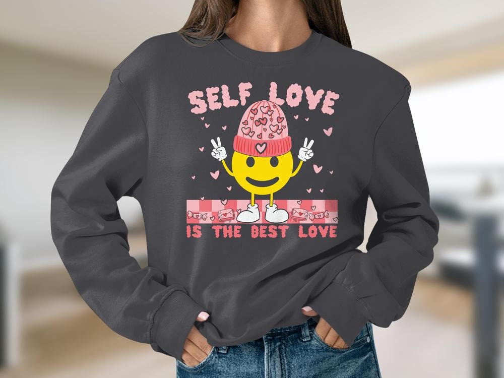 Retro Self Love Unisex Sweatshirt, Cute Valentines Day Sweatshirt, Sweatshirt Unisex Heavy Blend Crewneck Gildan 1800