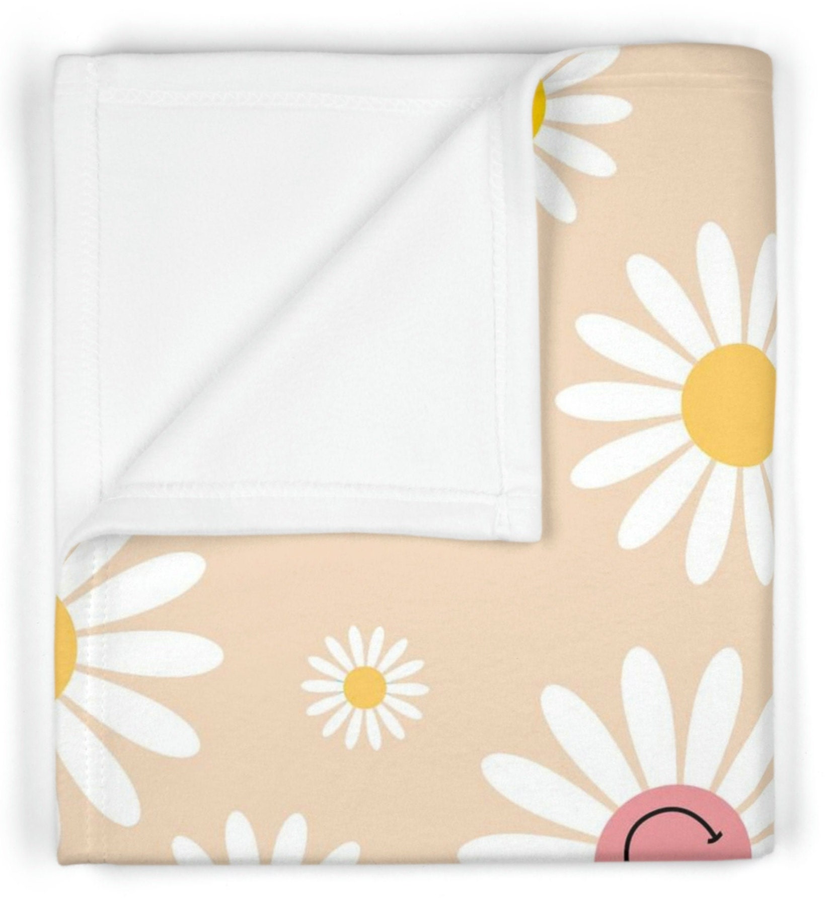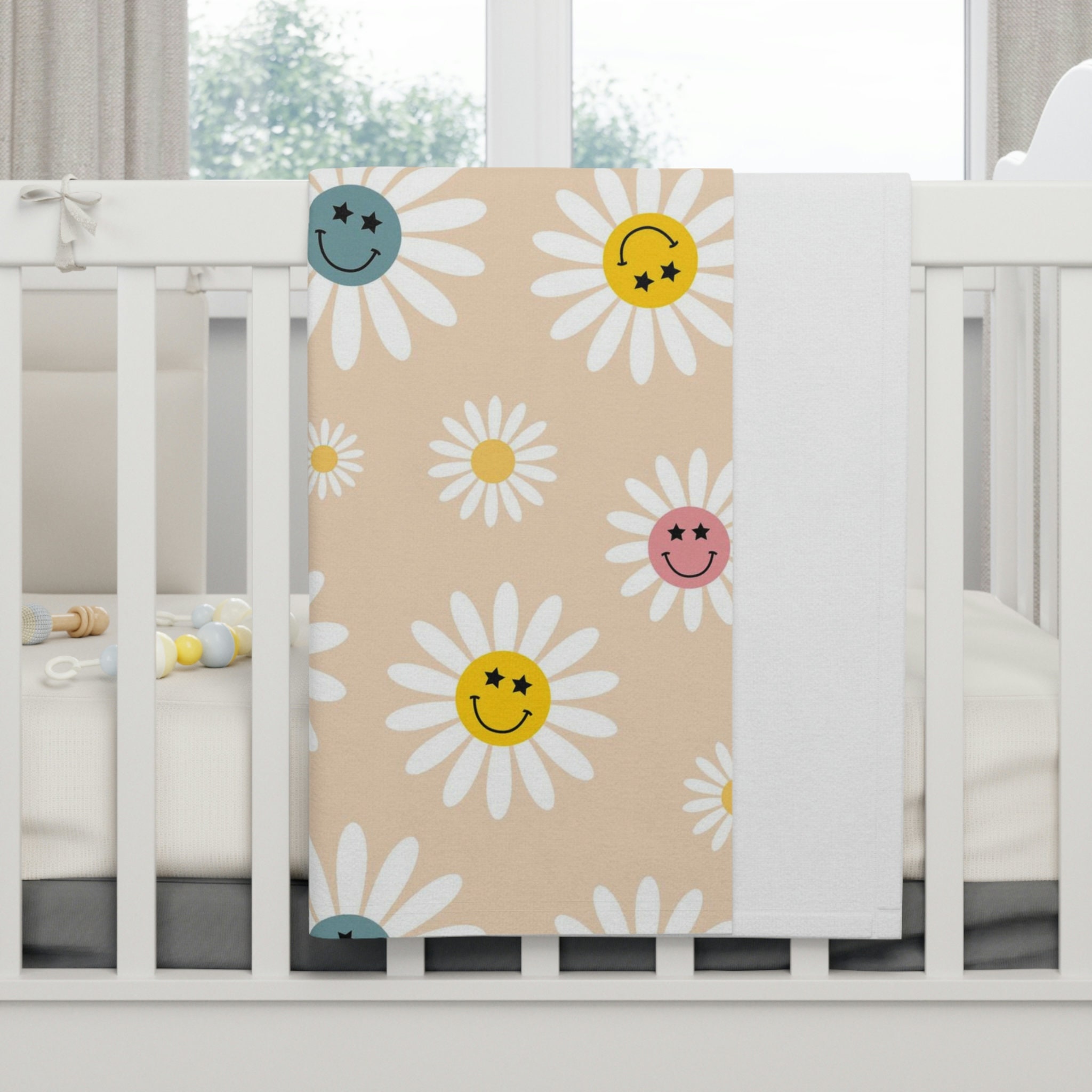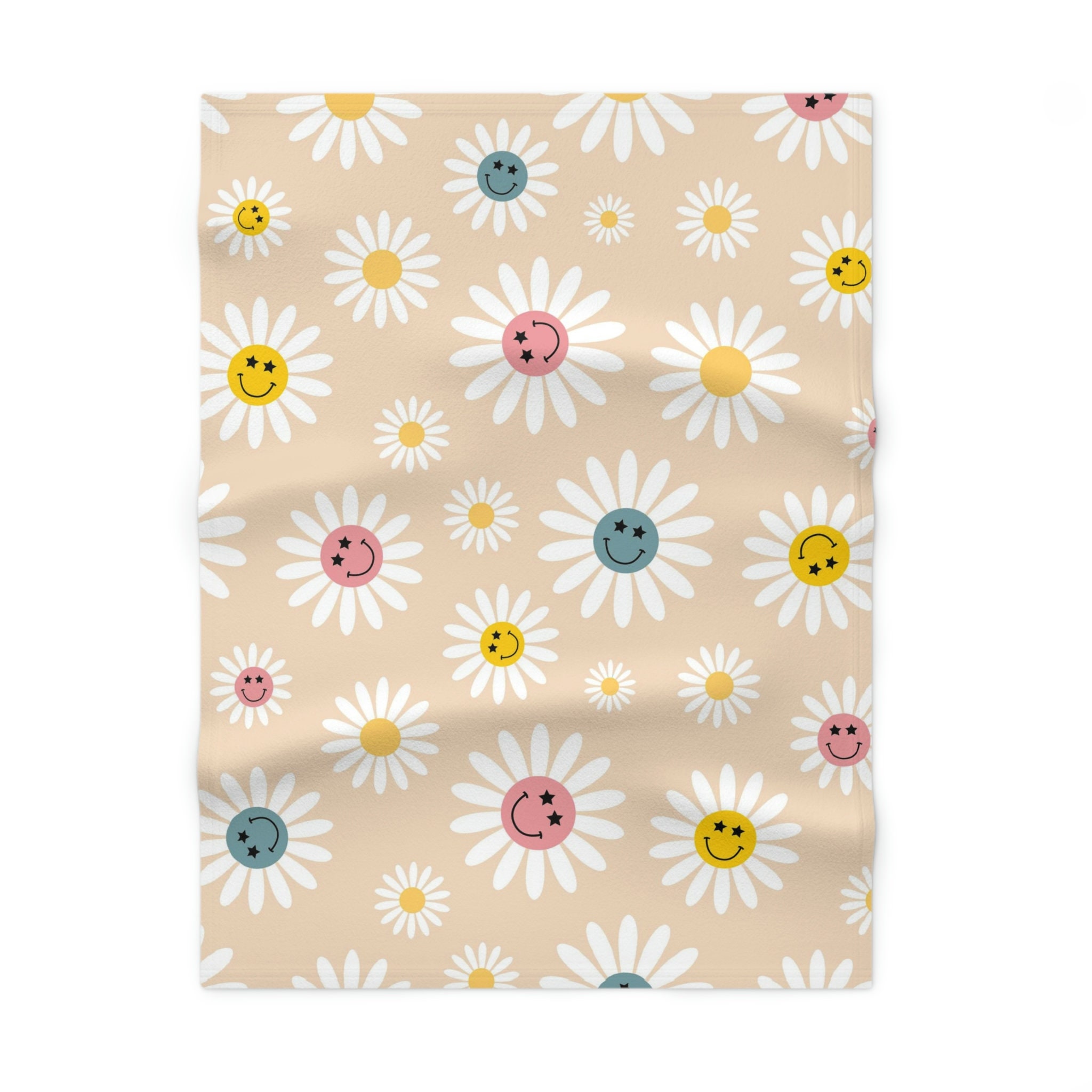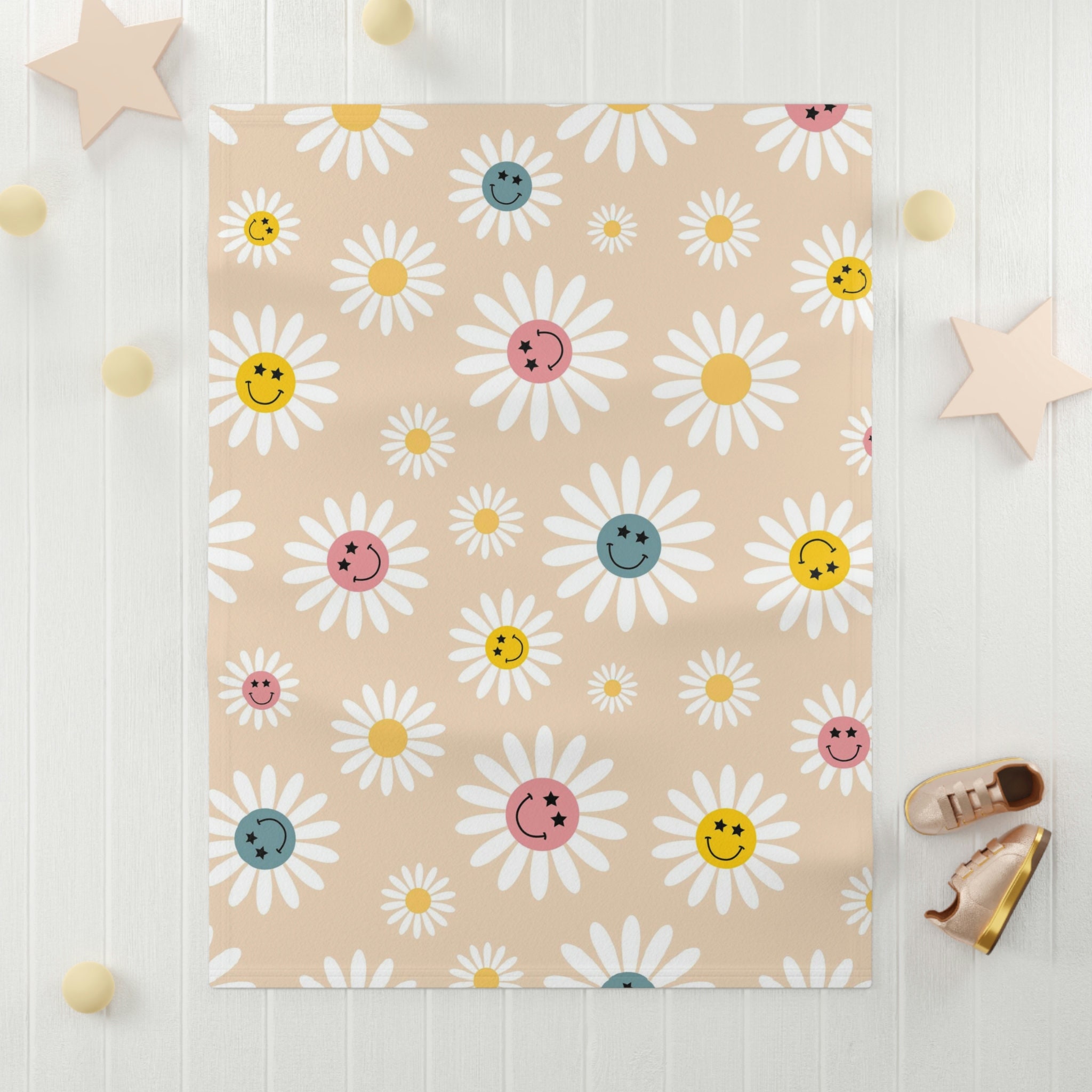 *Retro Smiley Daisy Baby Blanket, Soft Fleece Baby Blanket, Retro Floral Blanket, Baby Shower Gift, Toddler or Preschooler Blanket
