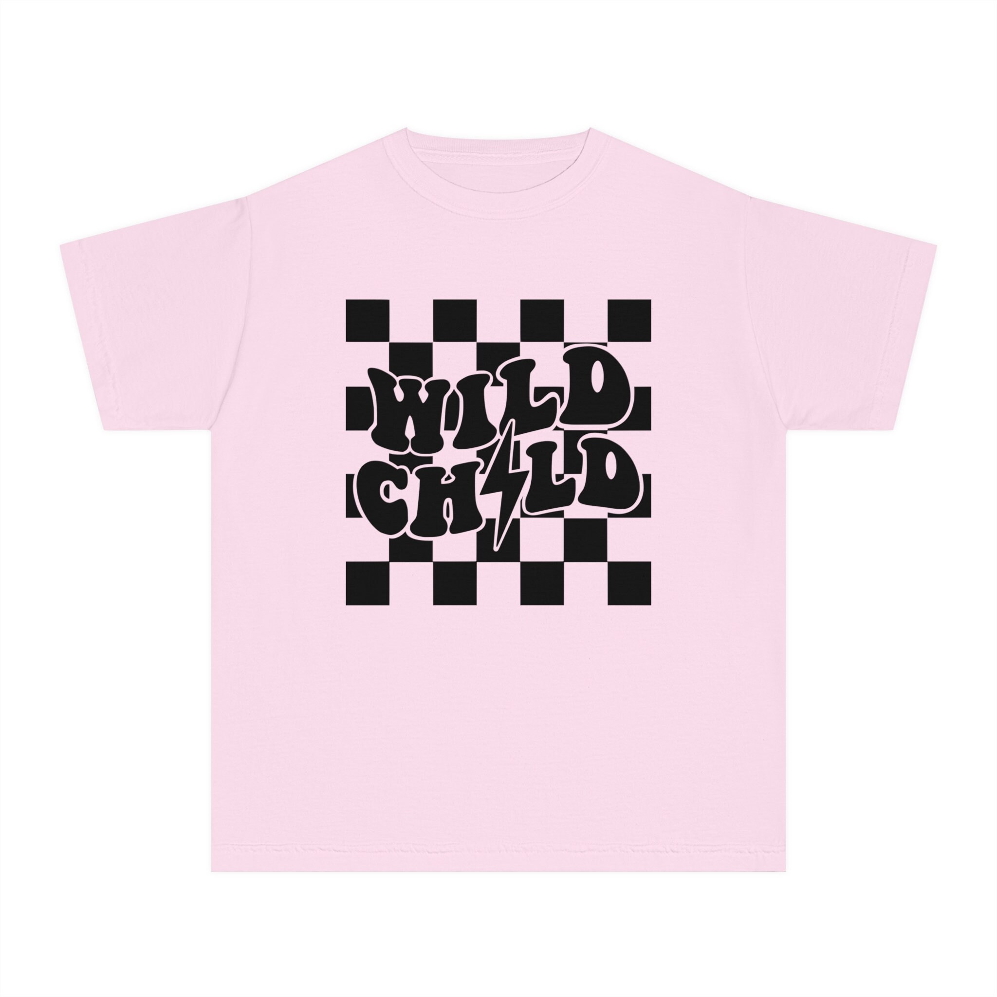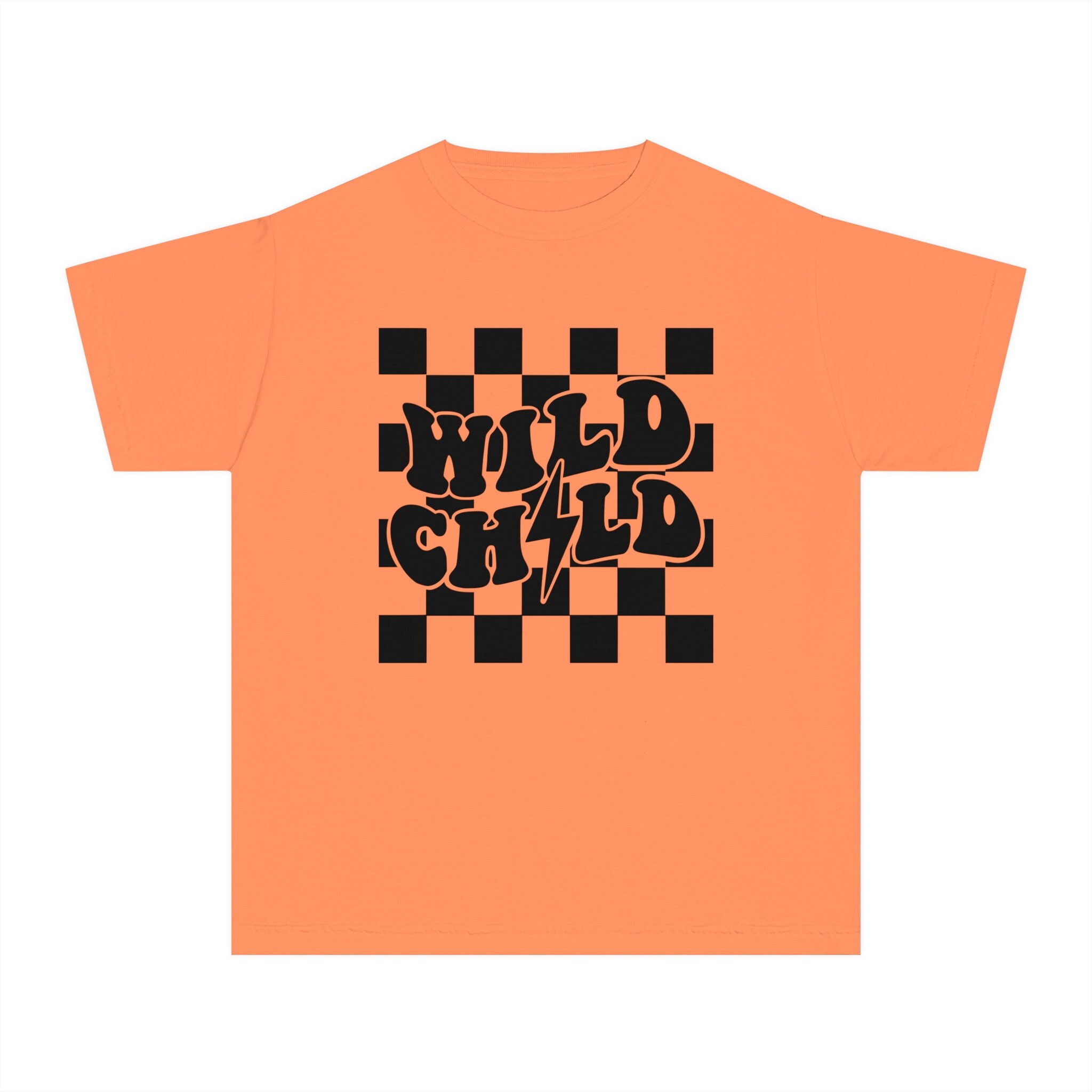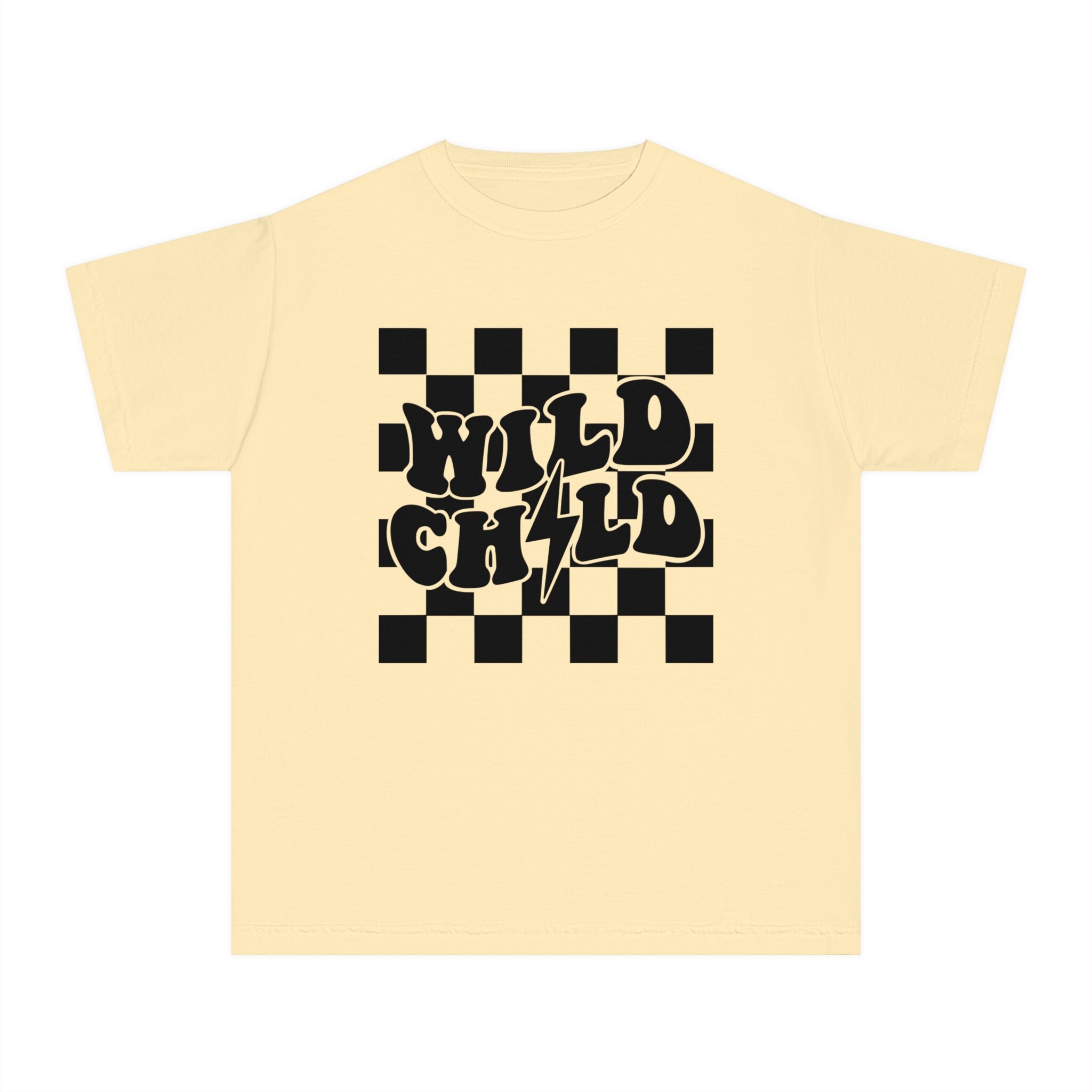 Retro Wild Child Youth Midweight Tee, Retro Checkered Youth Shirt, Wild Child Shirt