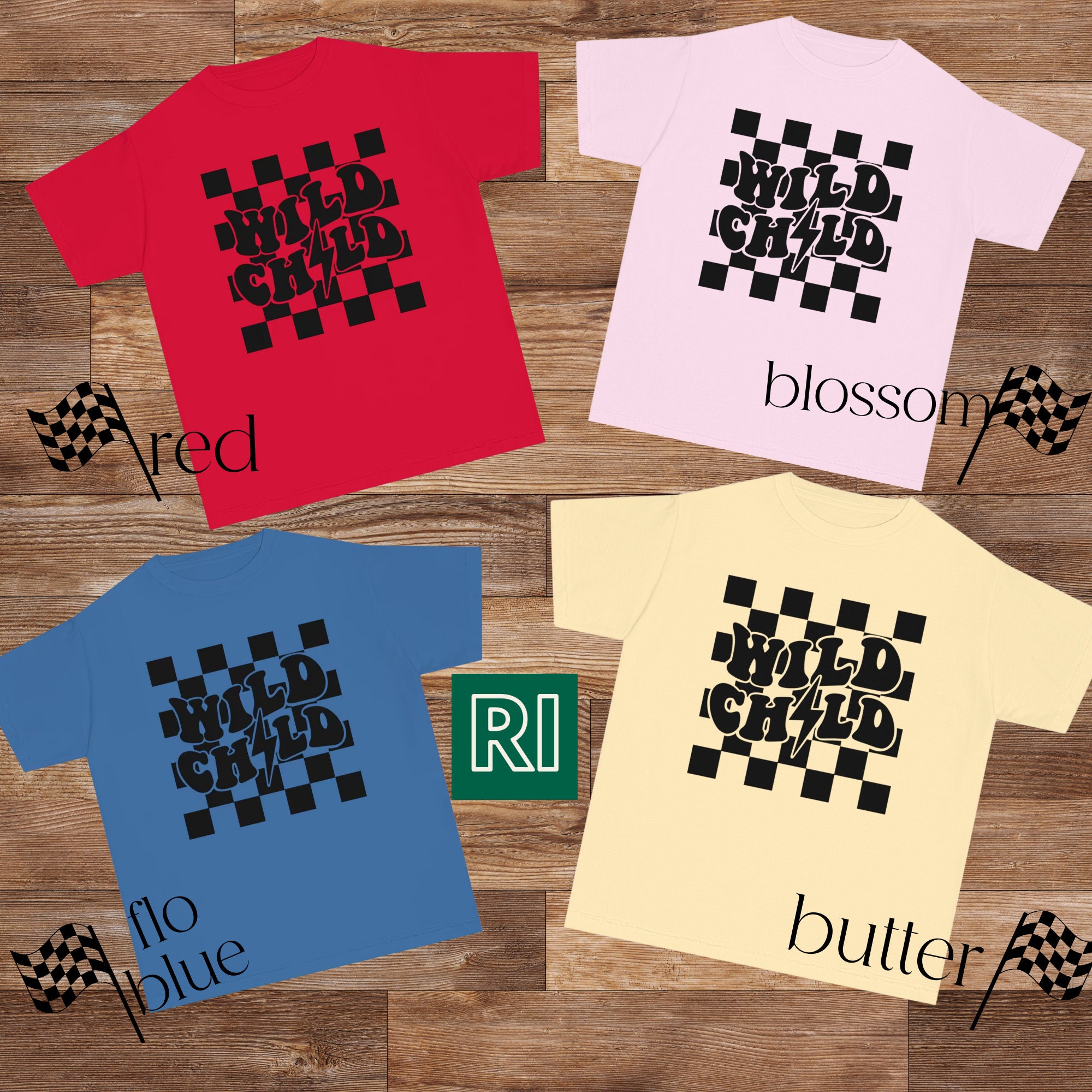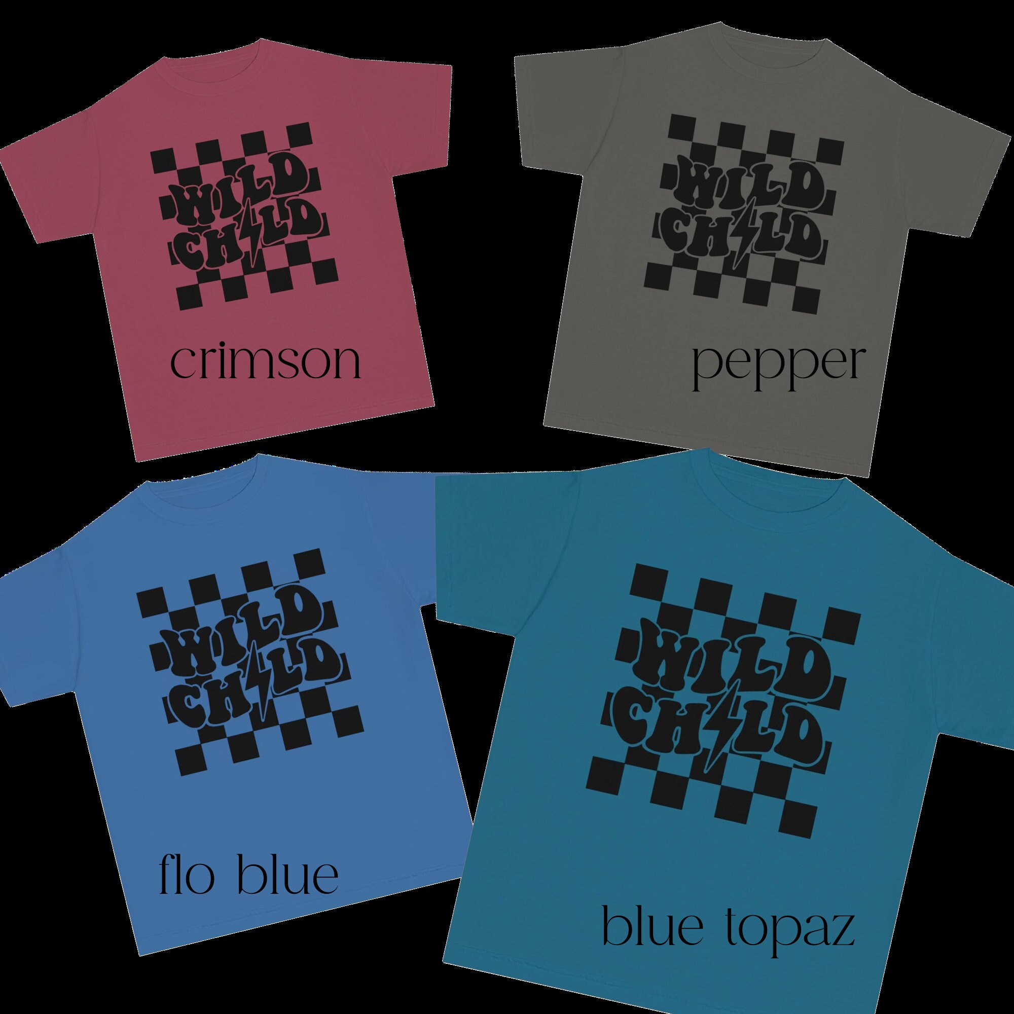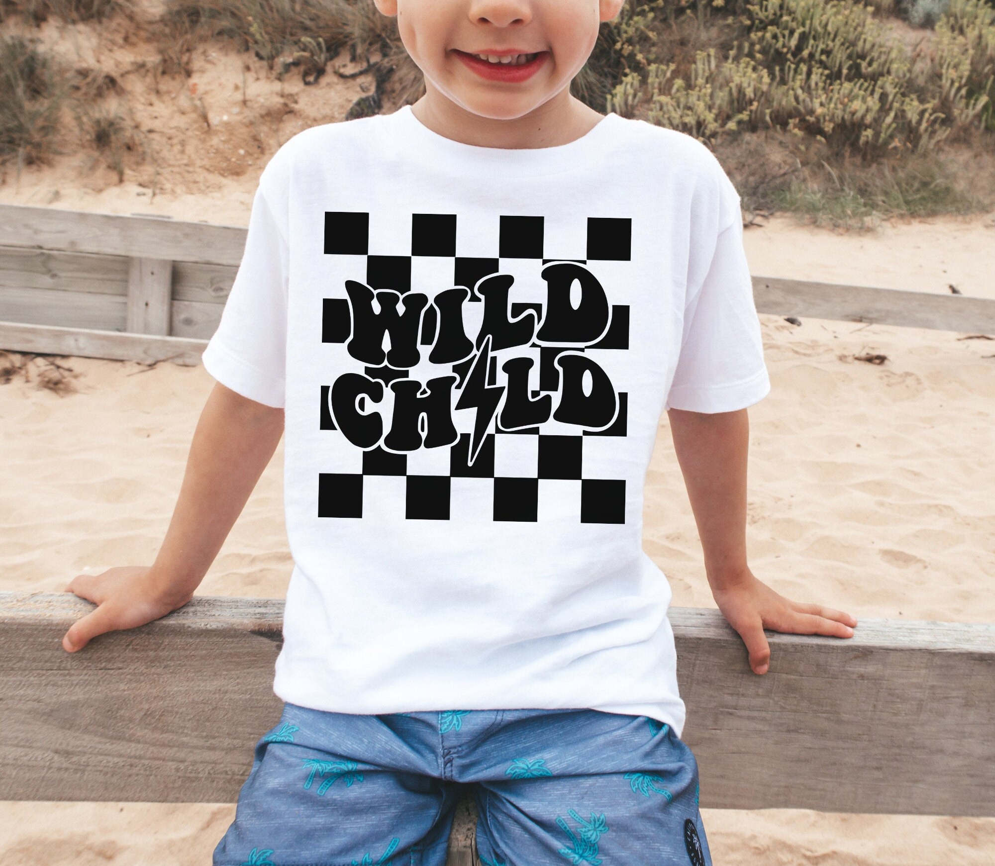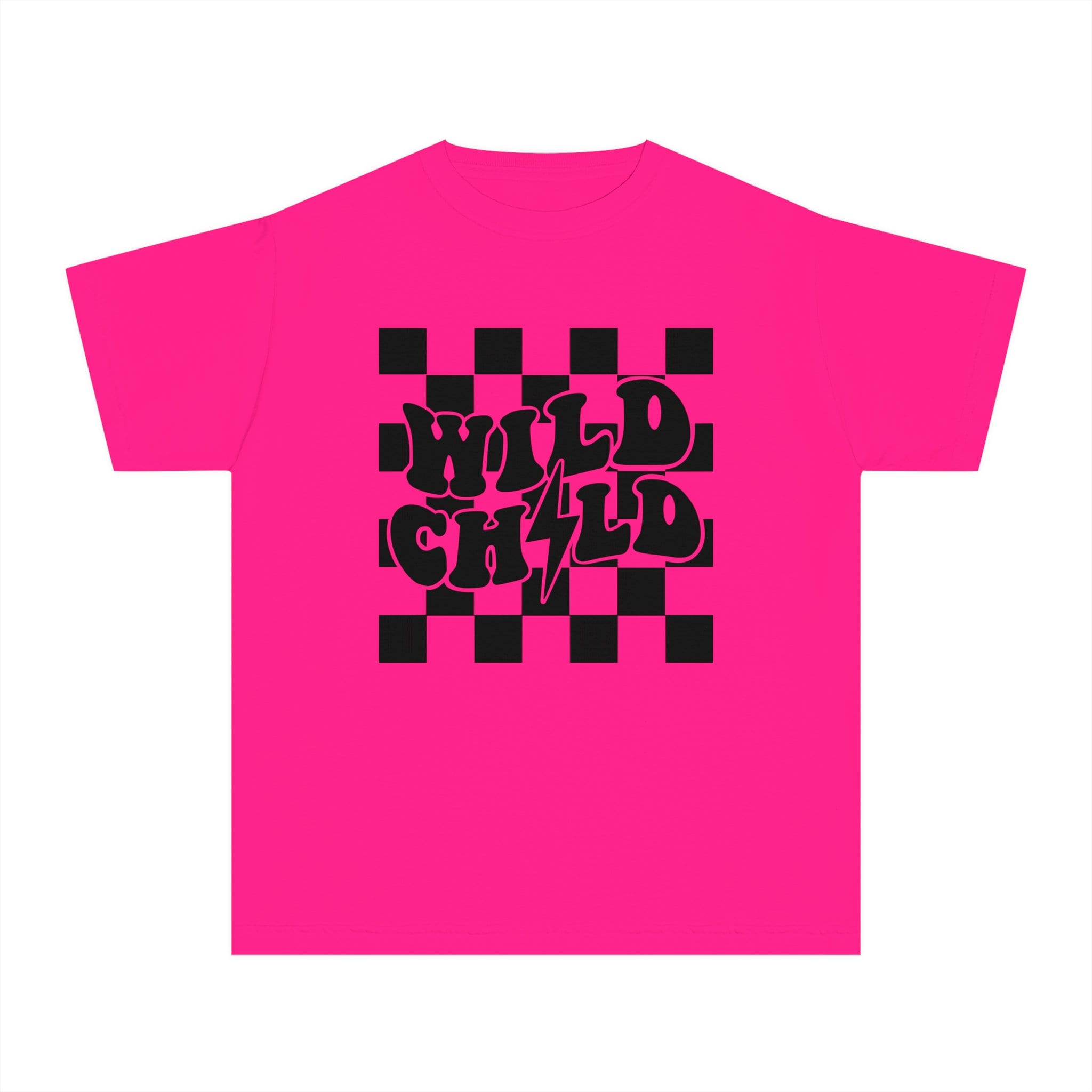 Retro Wild Child Youth Midweight Tee, Retro Checkered Youth Shirt, Wild Child Shirt