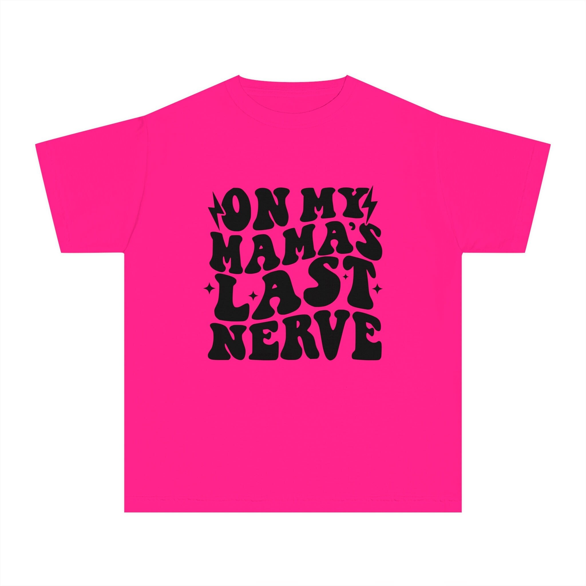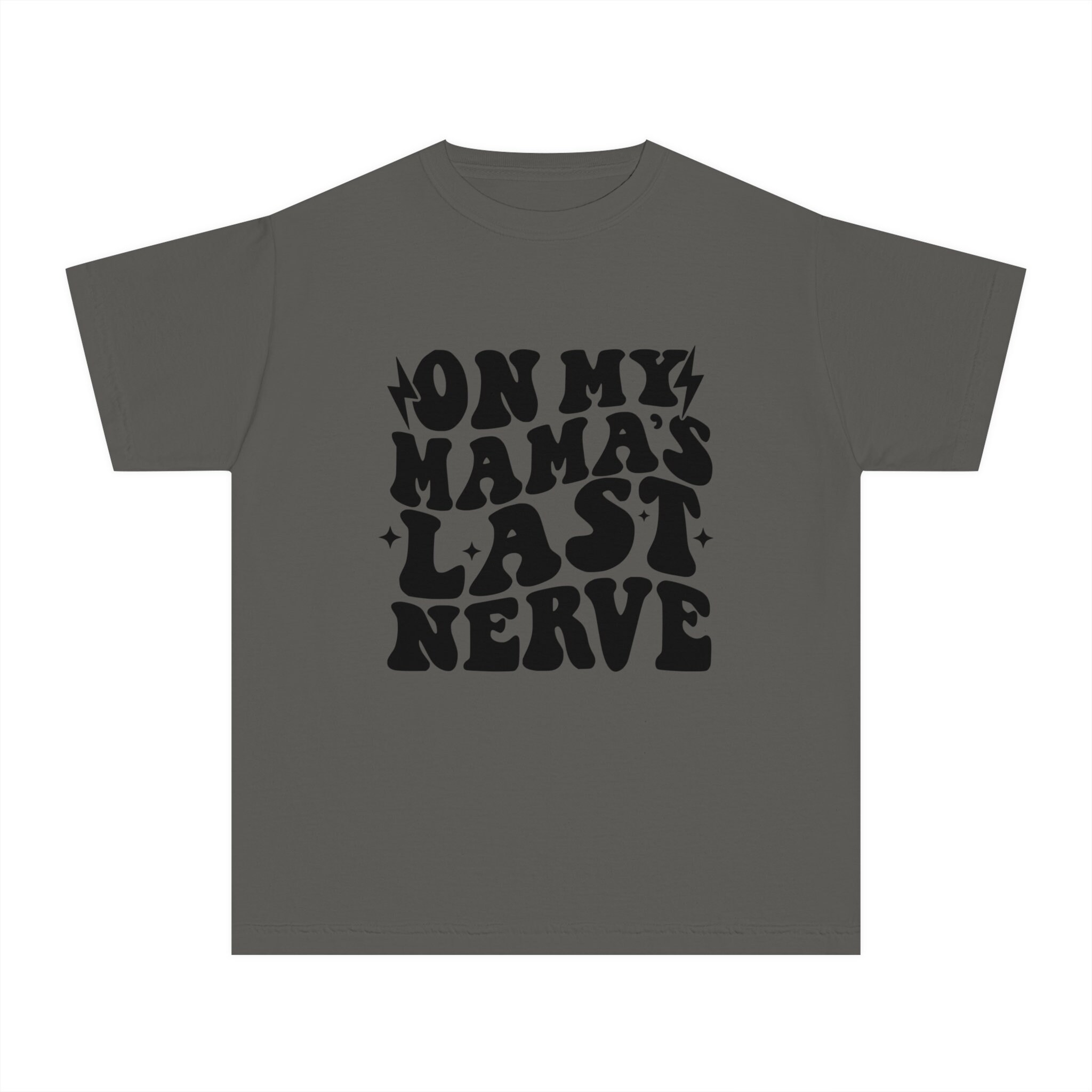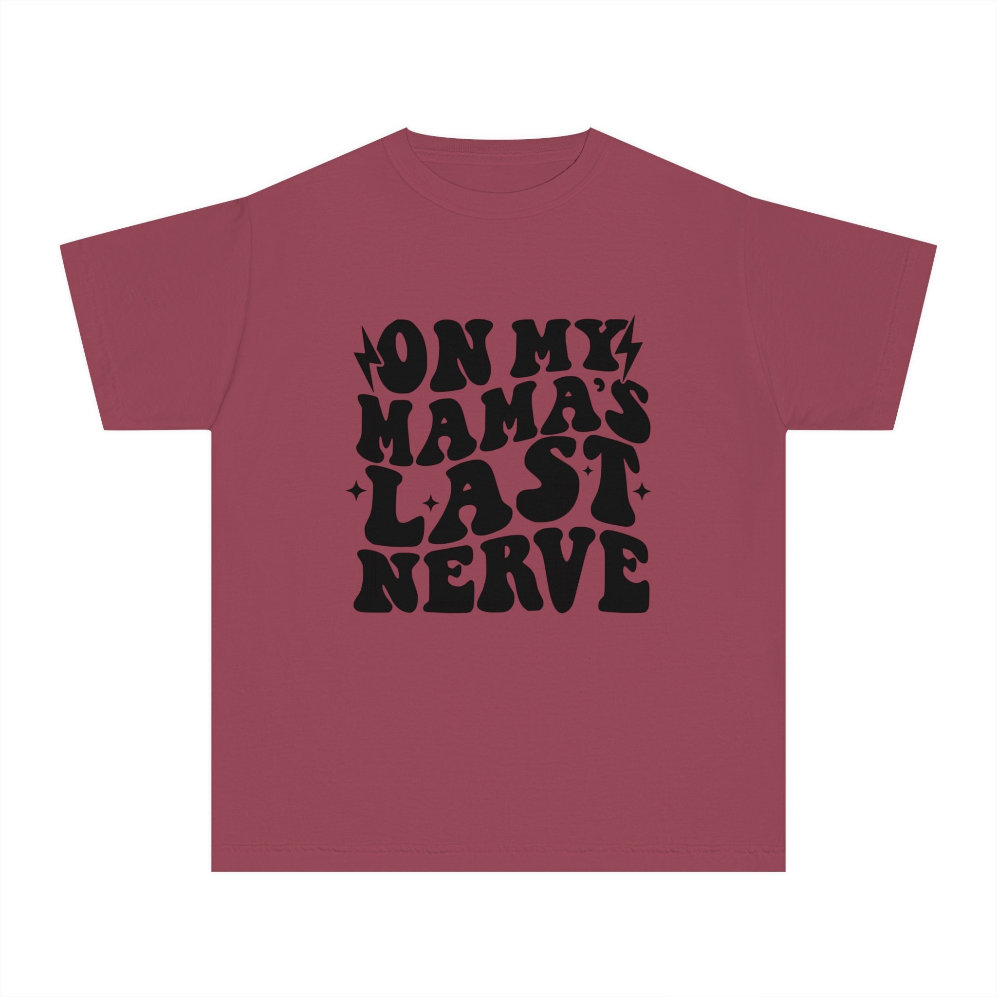 Retro On My Mamas Last Nerve Youth Tee, Retro Youth Shirt, Retro On Mamas Last Nerve Comfort Colors tee, This design is on the Front the shirt. Funny Shirt for Cute Family Pictures, Back to school shirts, Vacay shirt, Spring Break Kids Shirt, Cute Gift for Mother's Day. (retro wavy text on the front of the shirt)