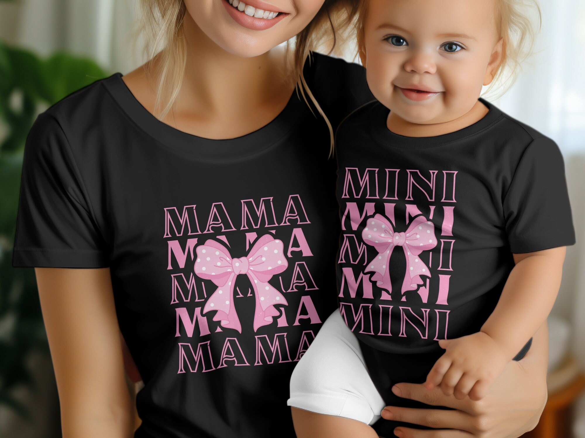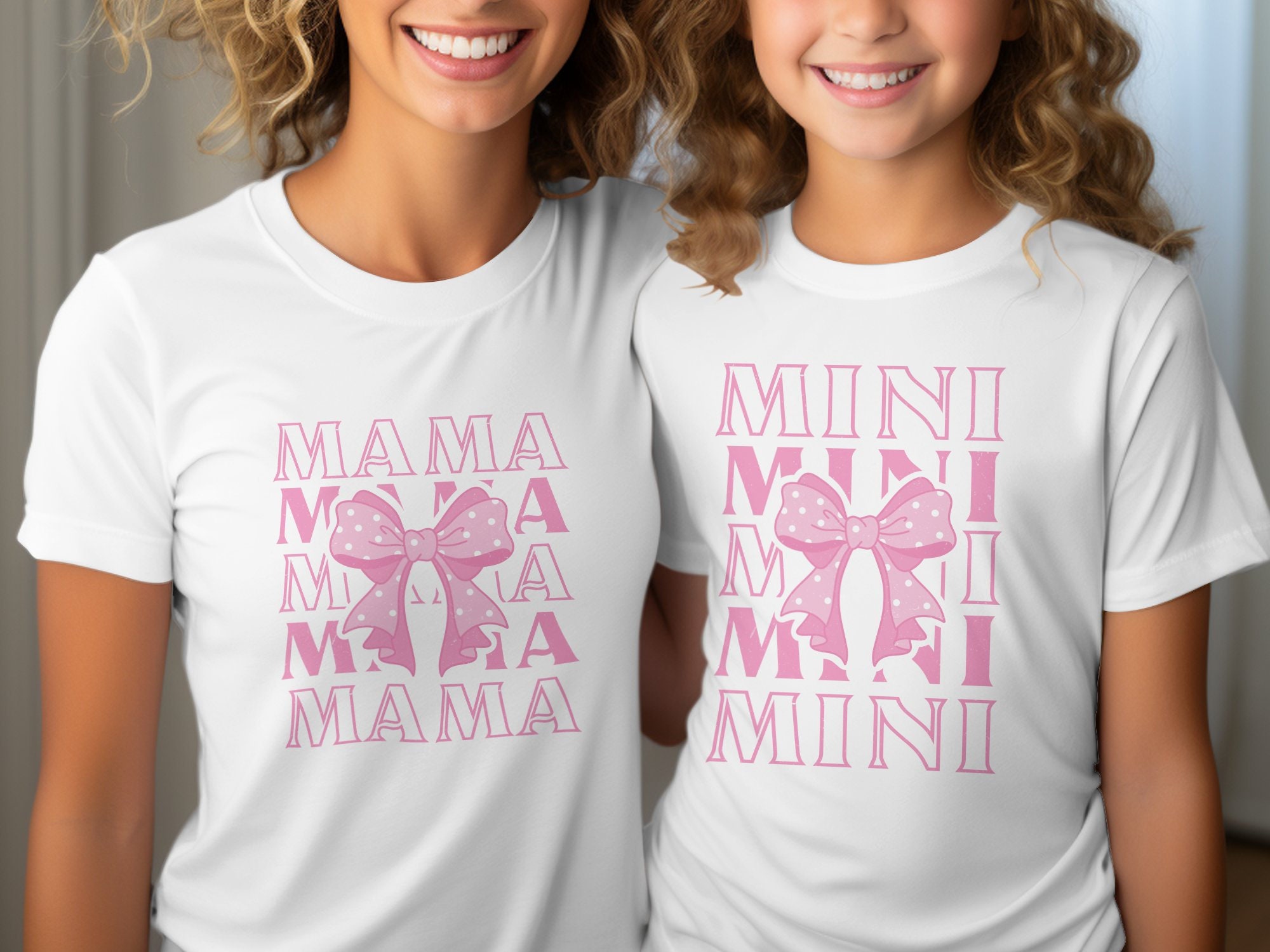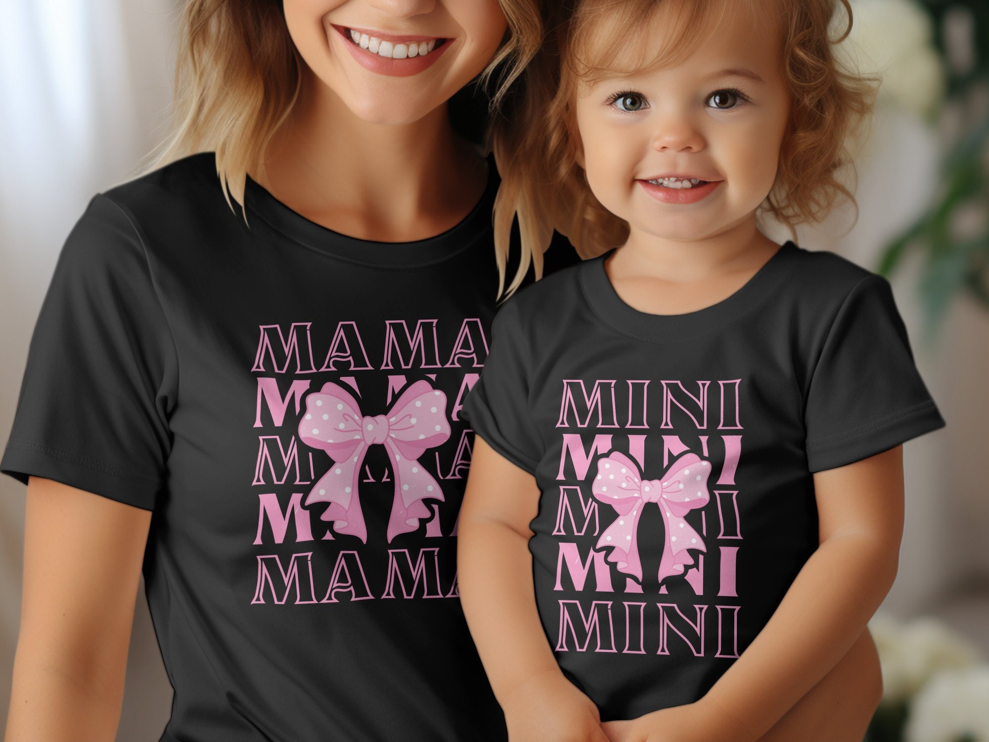 Dress to impress with these adorable Mama and Mini matching coquette-inspired t-shirts. The perfect way to showcase the special bond between a mother and her little one, these shirts feature a chic graphic design with a playful pink bow. Crafted from soft, comfortable fabric, they're ideal for family outings, photo sessions, or simply lounging at home in style. Get ready to create beautiful memories with these charming and fashionable tees that celebrate the love between mom and child.