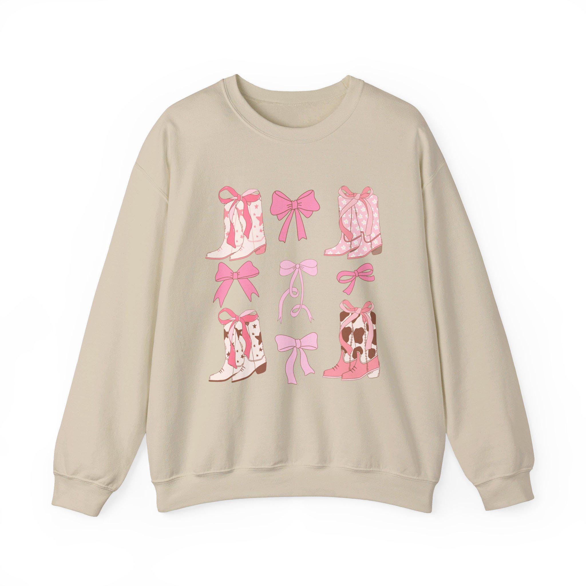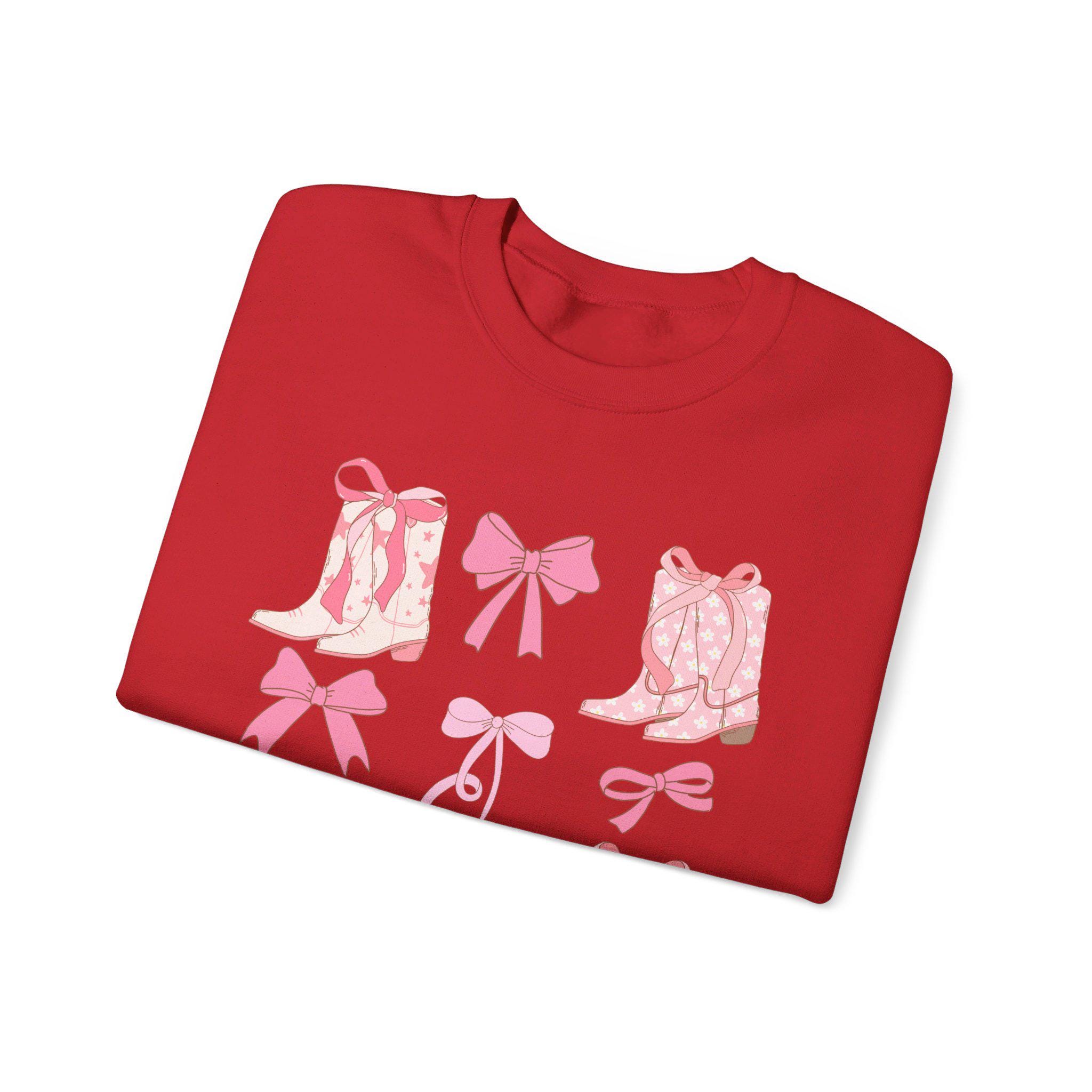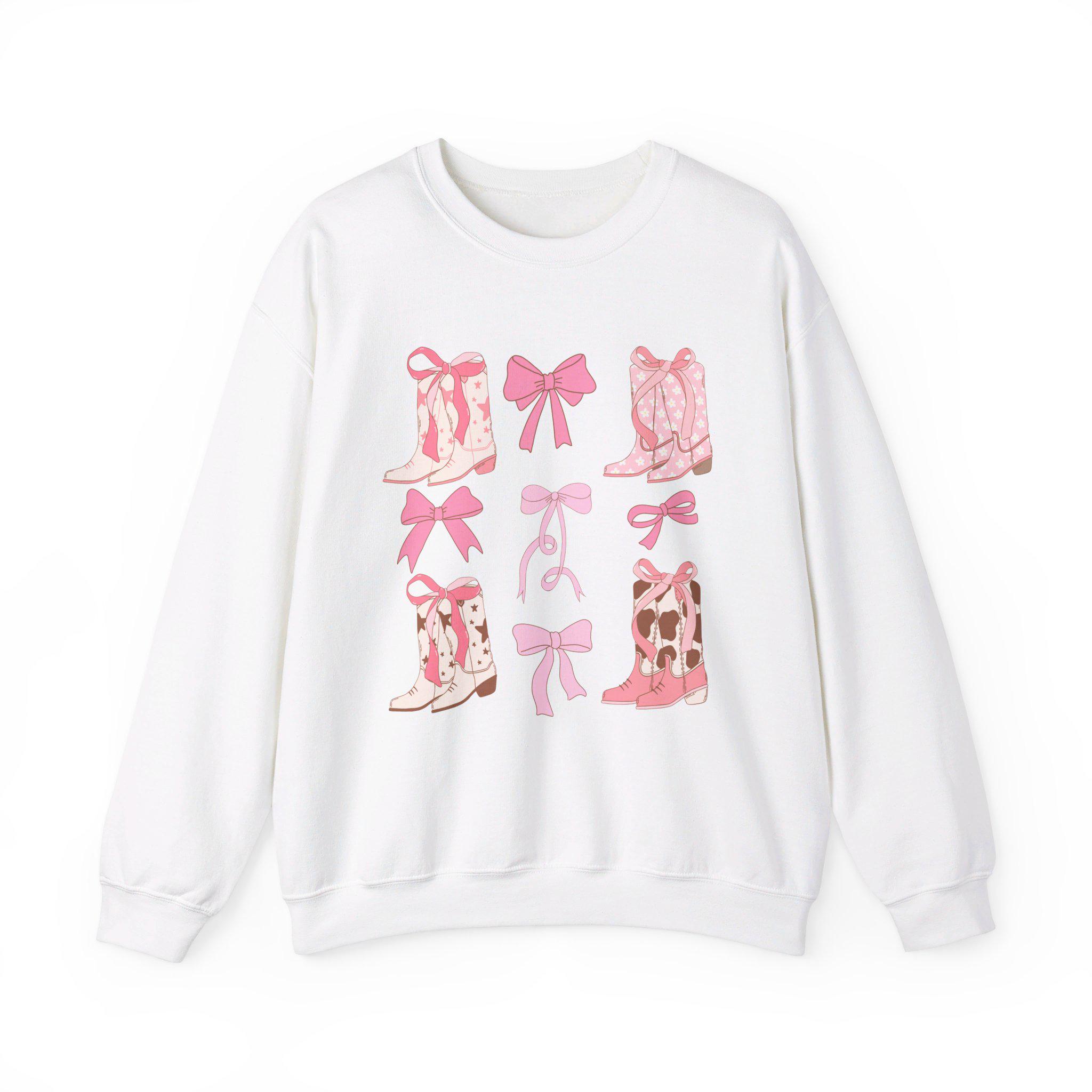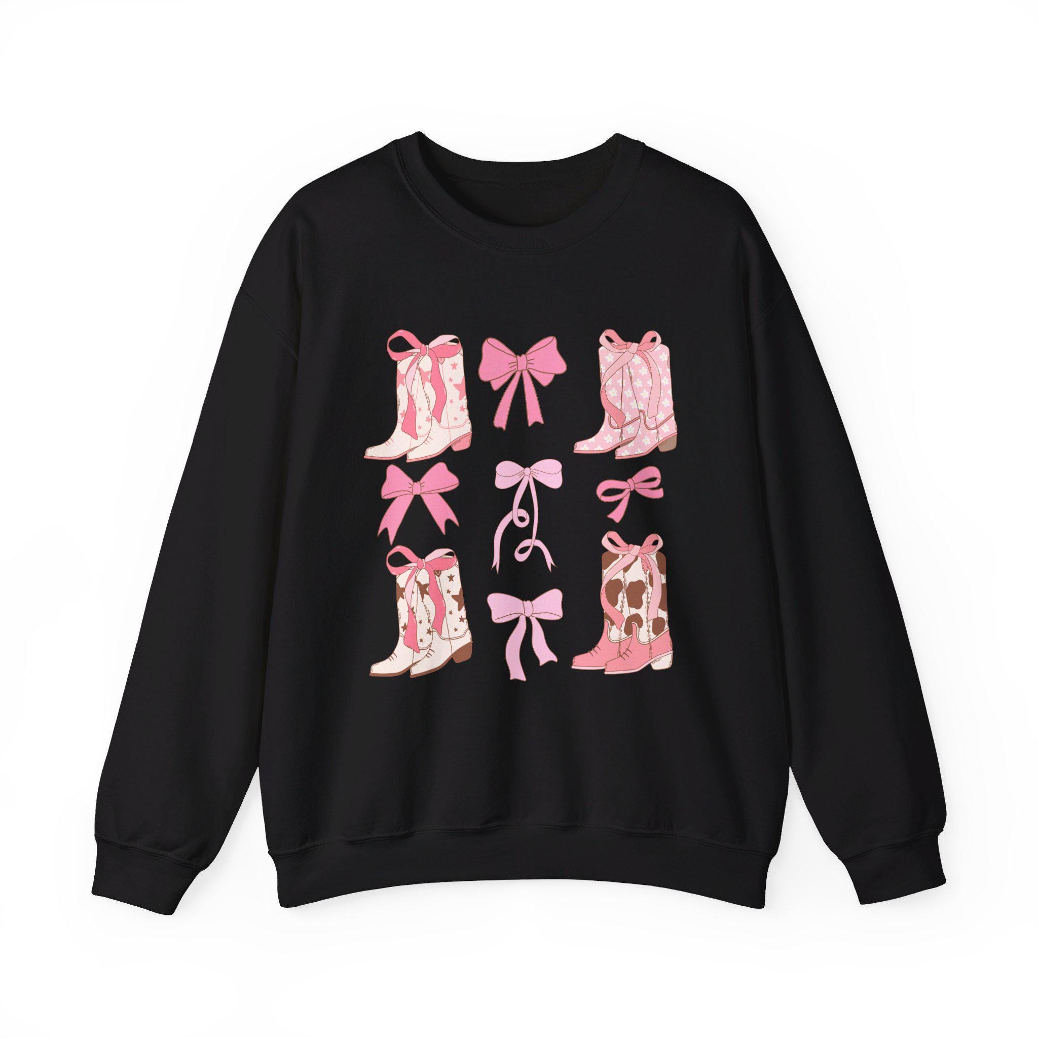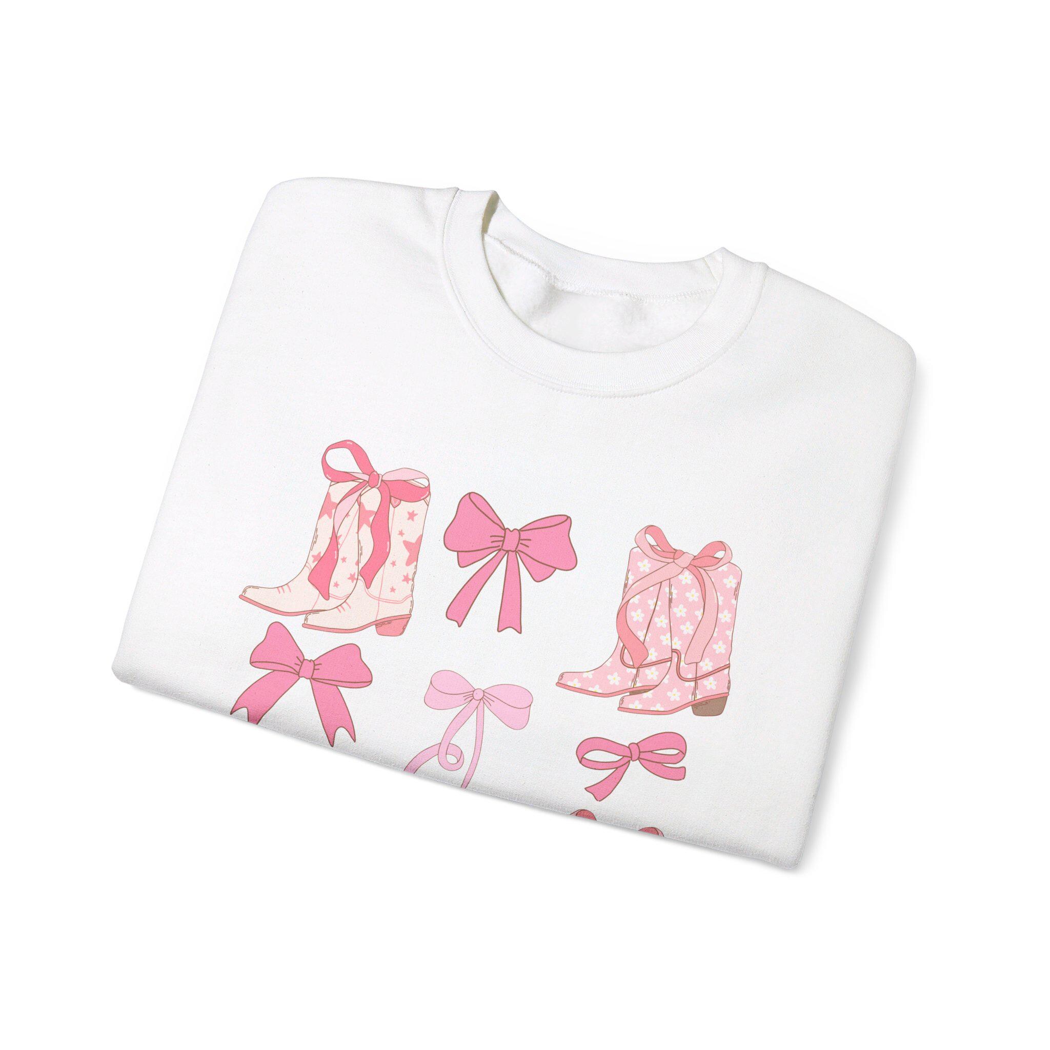 Trendy Western Style Sweatshirt - Bows and Cowboy Boots Design - Coquette Aesthetic Shirt, Pink Boots and Bows, Gift for her, Back to School