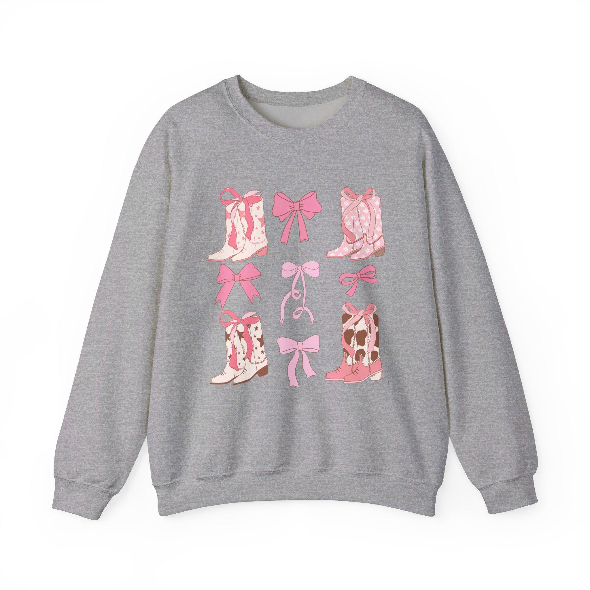 Western Style Sweatshirt - Bows and Cowboy Boots Design - Coquette Aesthetic Shirt - Multiple Colors & Sizes Available, Heavy Blend™ Crewneck Sweatshirt