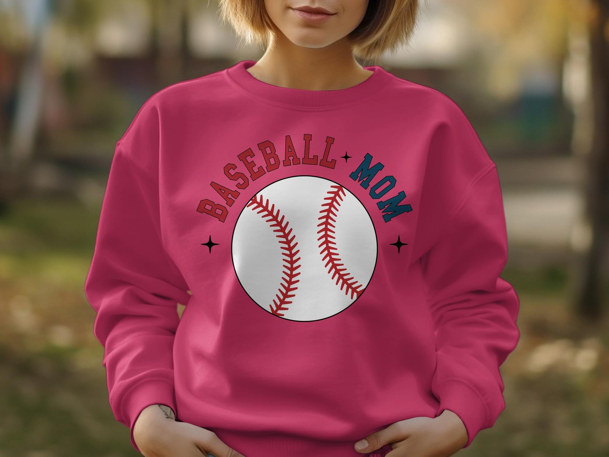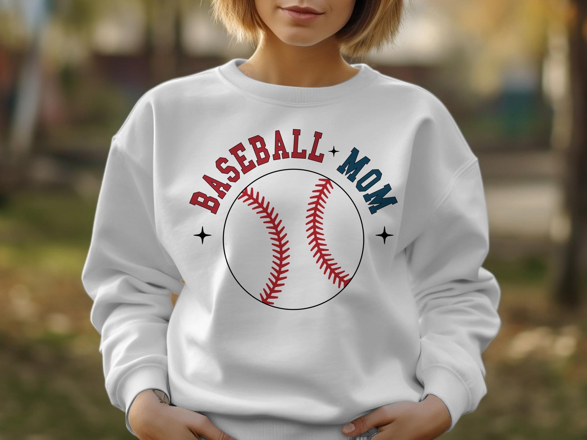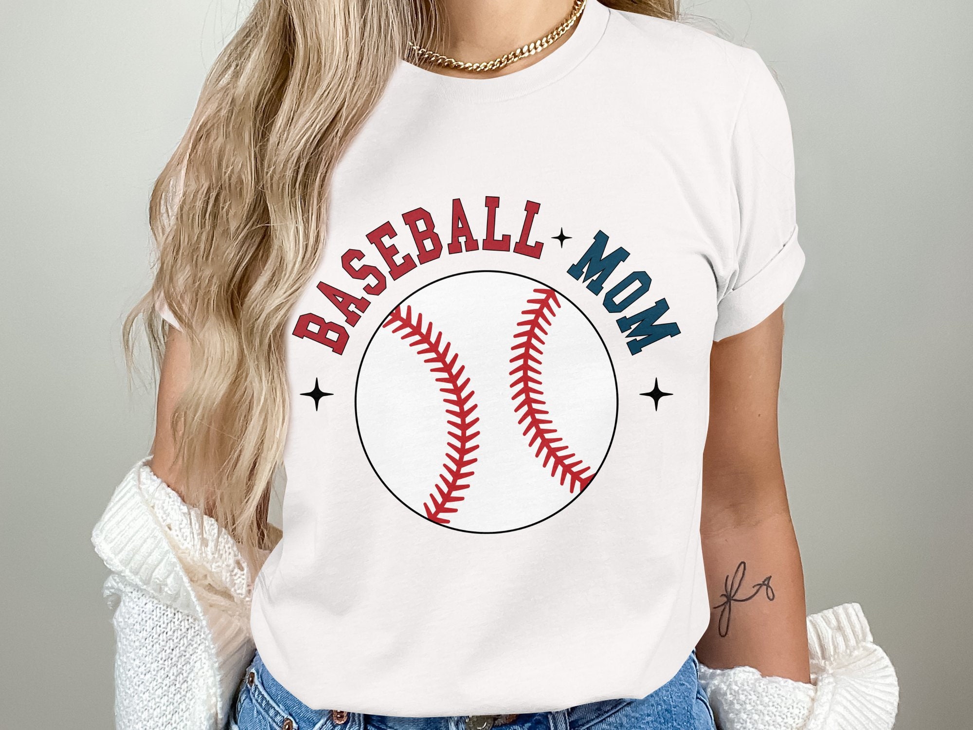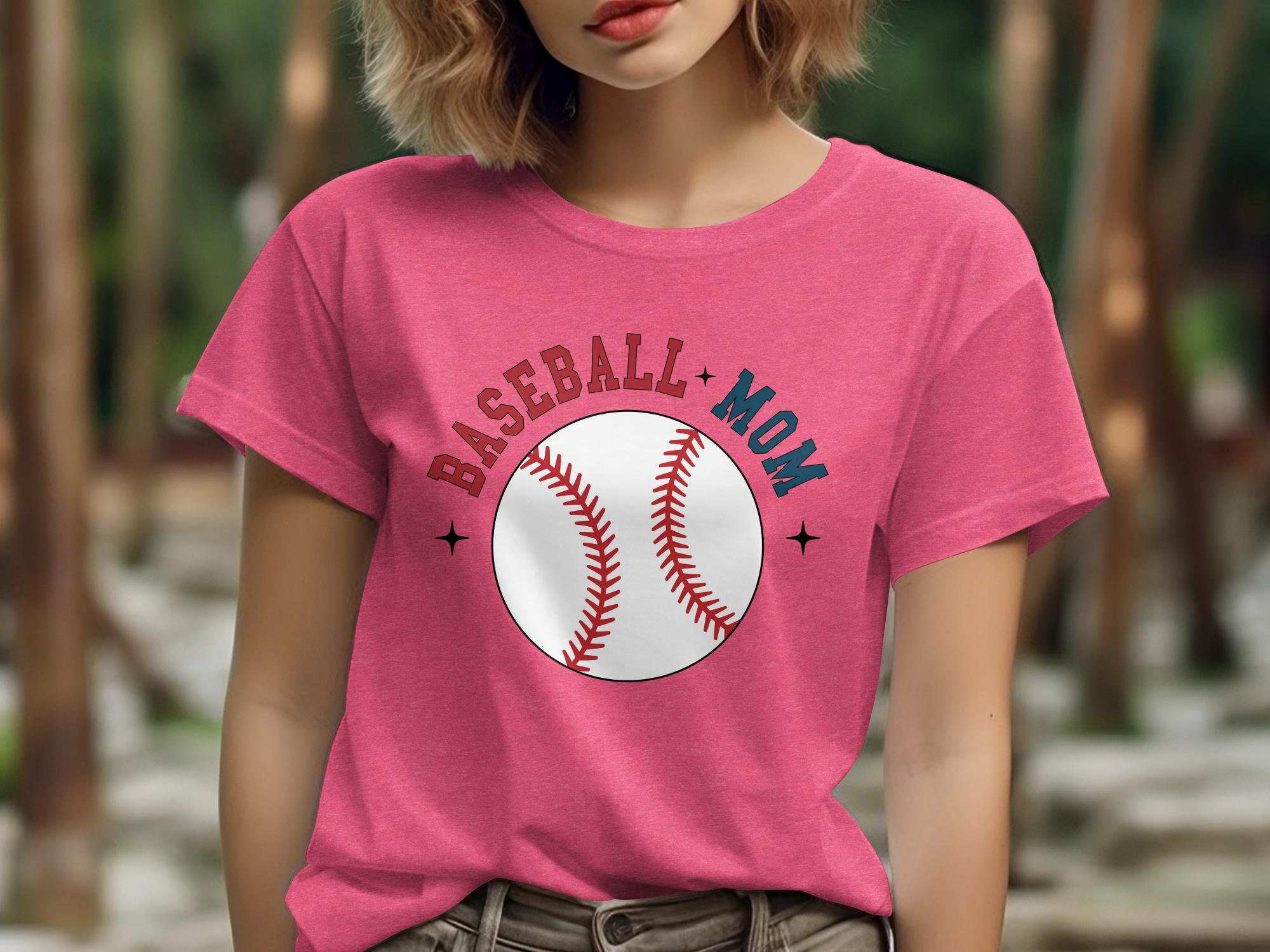 Show your support and pride with our stylish 'Baseball Mom' T-shirt, perfect for any game day or casual wear. This tee features bright red text on a white baseball graphic, making it ideal for any sports-lover parent. Made from comfortable, high-quality materials, it's designed to last through every inning. Whether you're cheering from the stands or running errands, this shirt is a home run for any baseball mom!