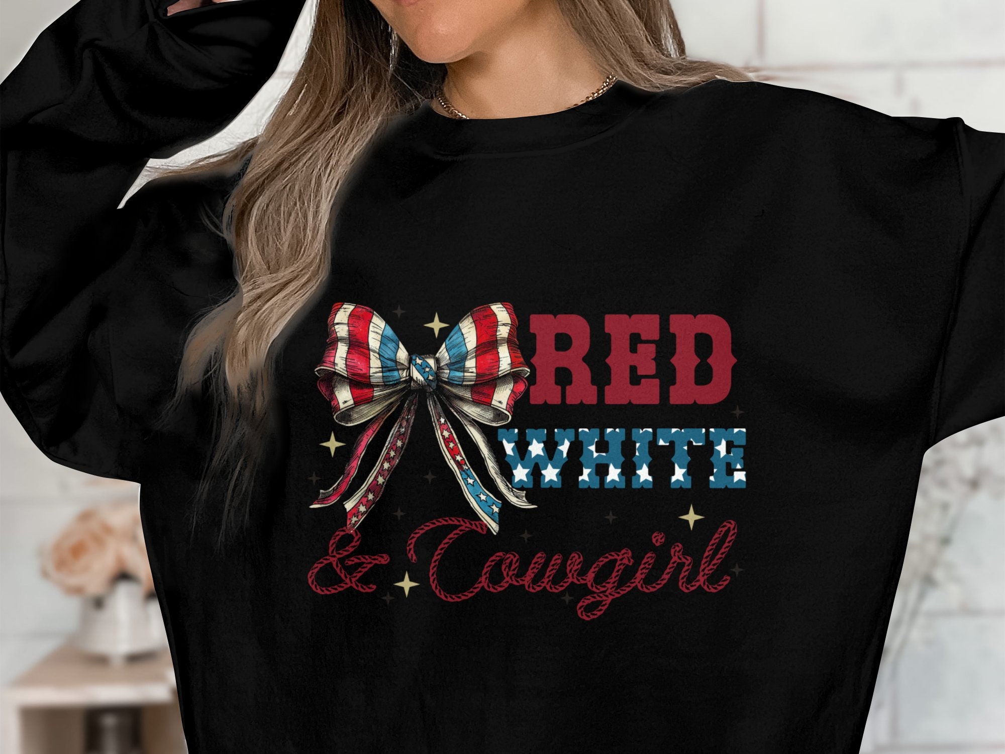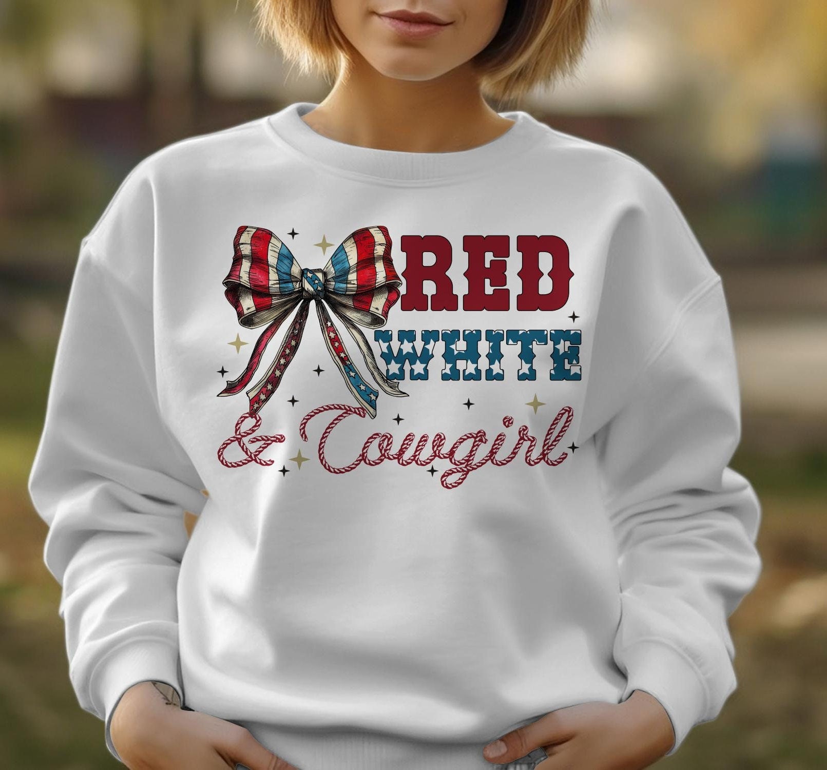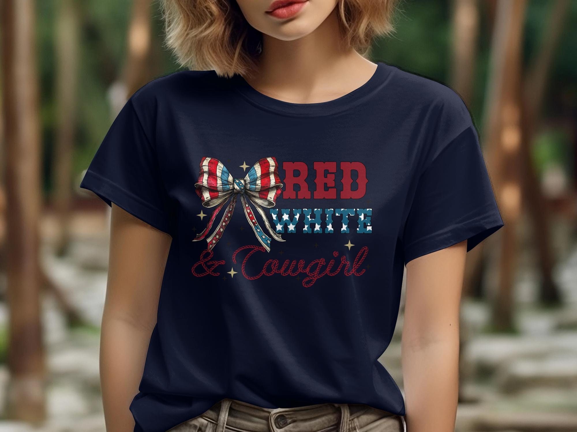 Red White and Cowgirl T-Shirt, Patriotic Bow Graphic, Women's Fashion Tee, Stylish Summer Top eye-catching "Red White and Cowgirl" T-shirt features a bold, colorful bow graphic with patriotic flair. Perfect for summer events or as a casual stylish top, this tee is a great way to show your cowgirl spirit and love for the country. Made from soft, breathable fabric, it offers both comfort and durability. Ideal for Fourth of July celebrations, rodeos, or everyday wear, this shirt is sure to make a statement wherever you go!