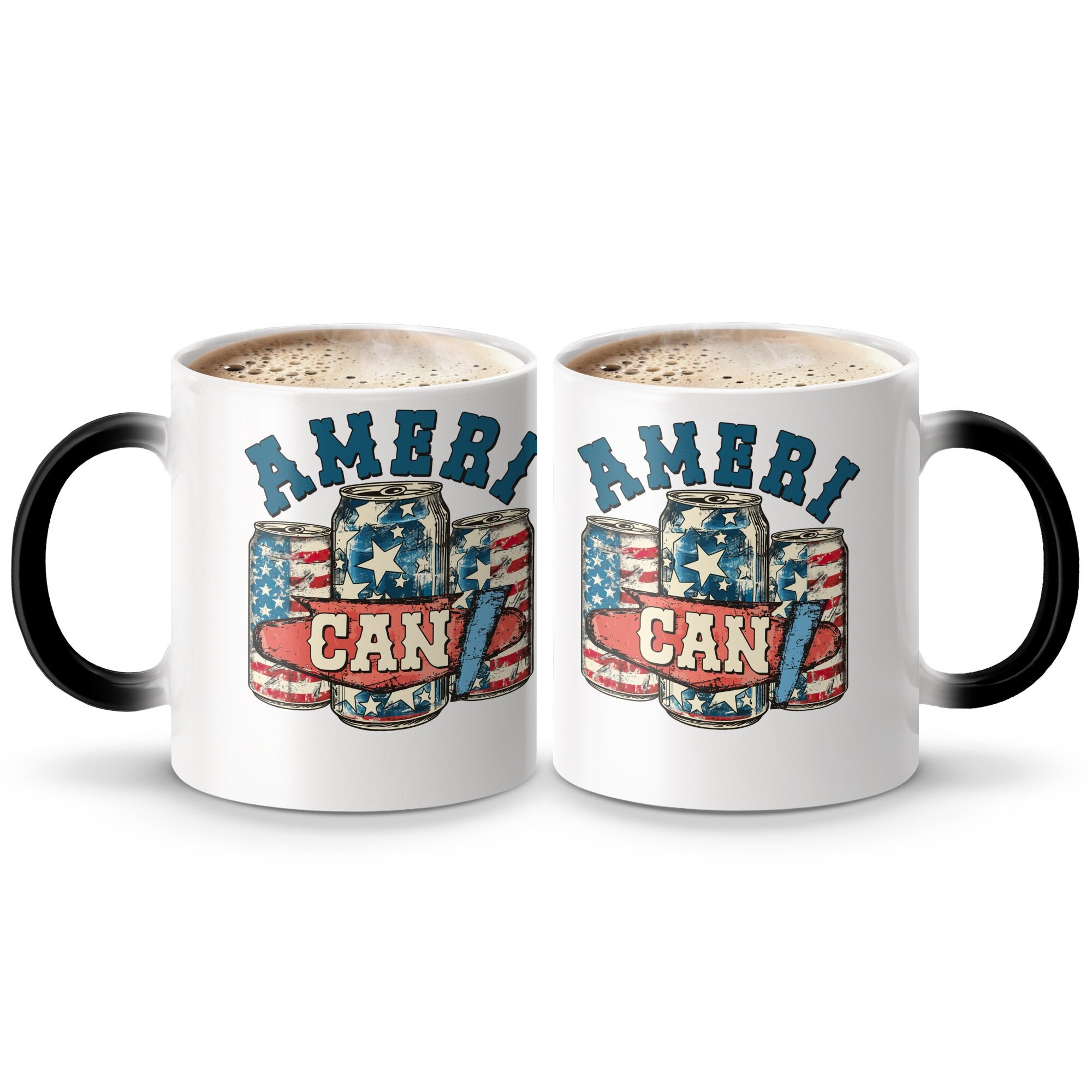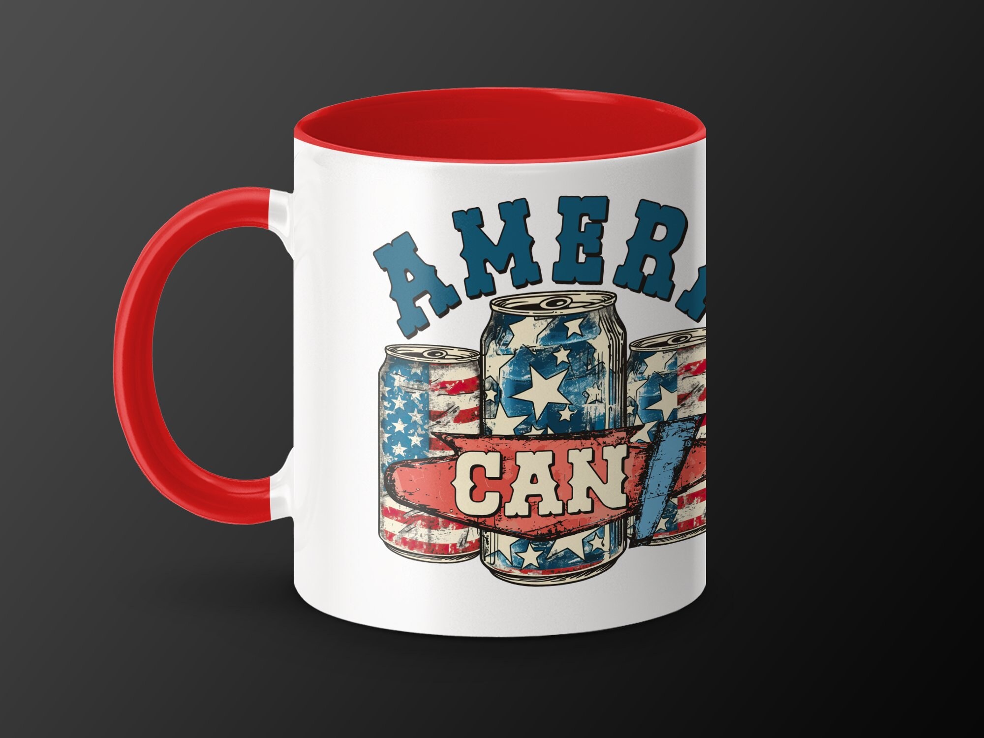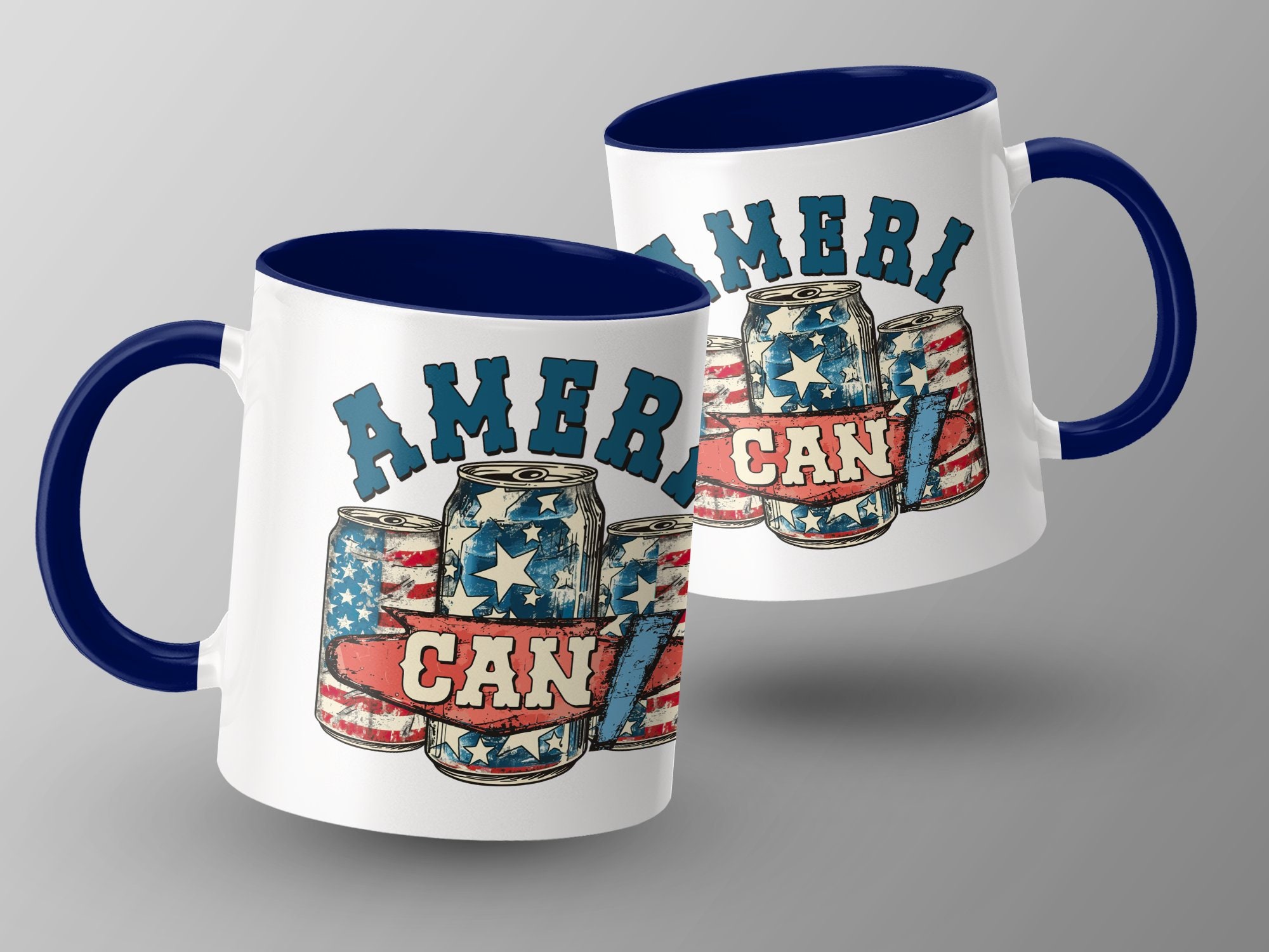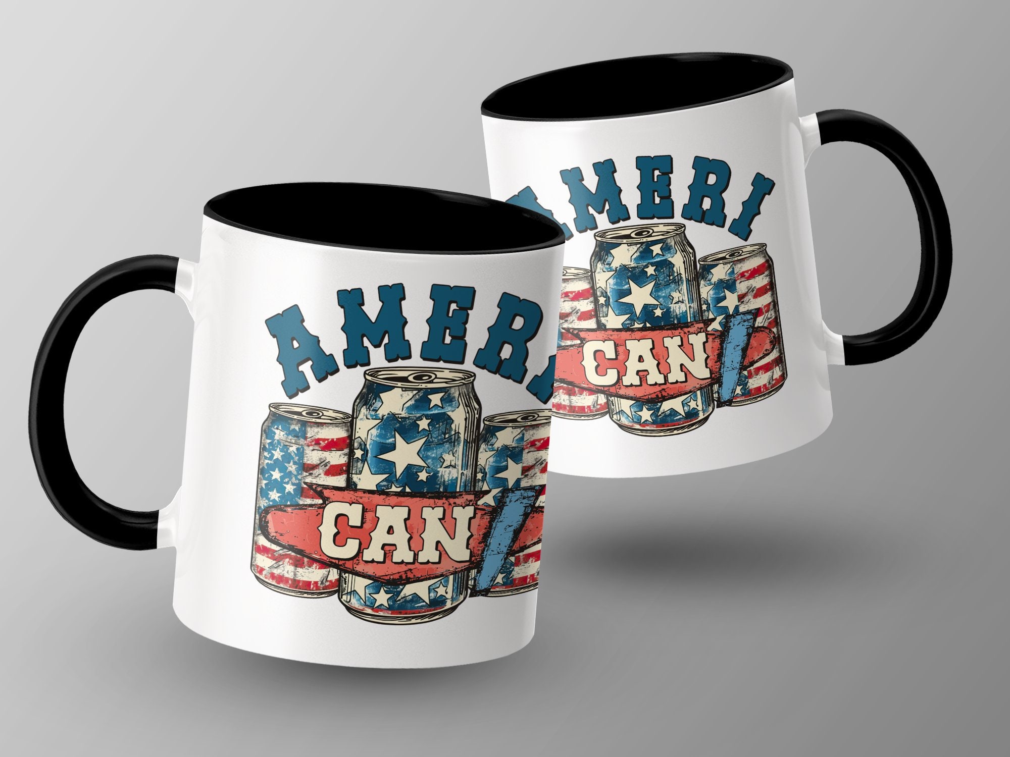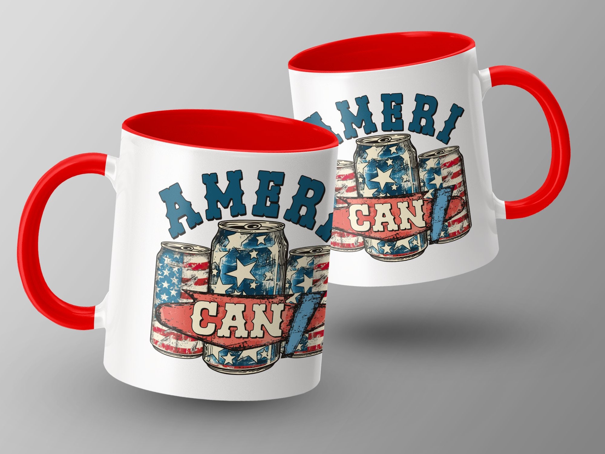 Celebrate your love for the country with this unique American can design mug. The design replicates vintage beverage cans adorned with the American flag colors and star patterns, making it a perfect patriotic addition to your mug collection. Ideal for sipping your favorite beverages, this mug also makes a great gift for friends and family who appreciate vintage American aesthetics and patriotism.