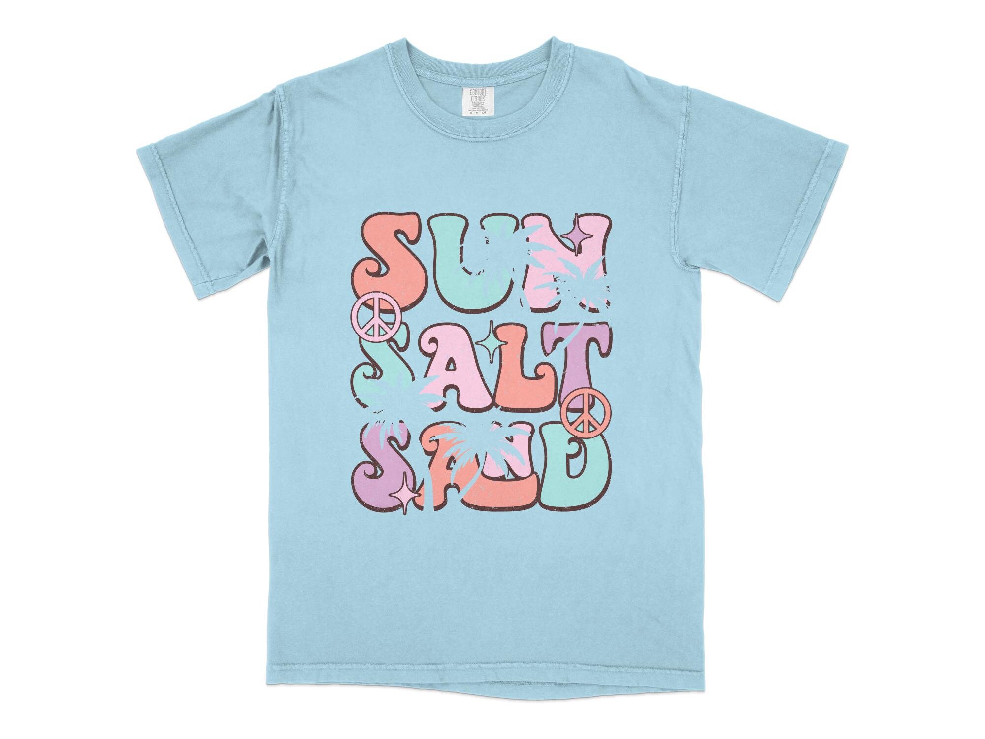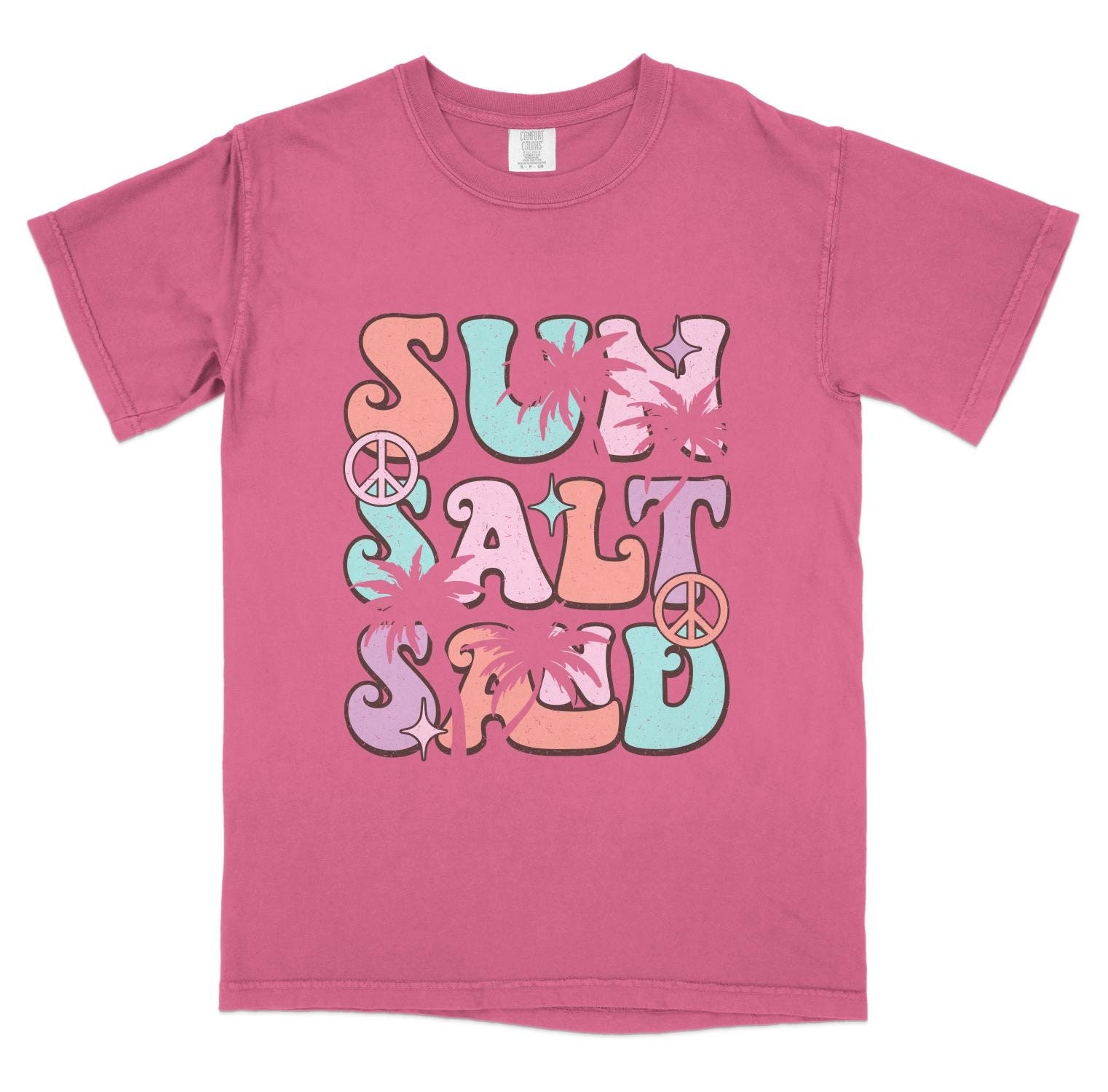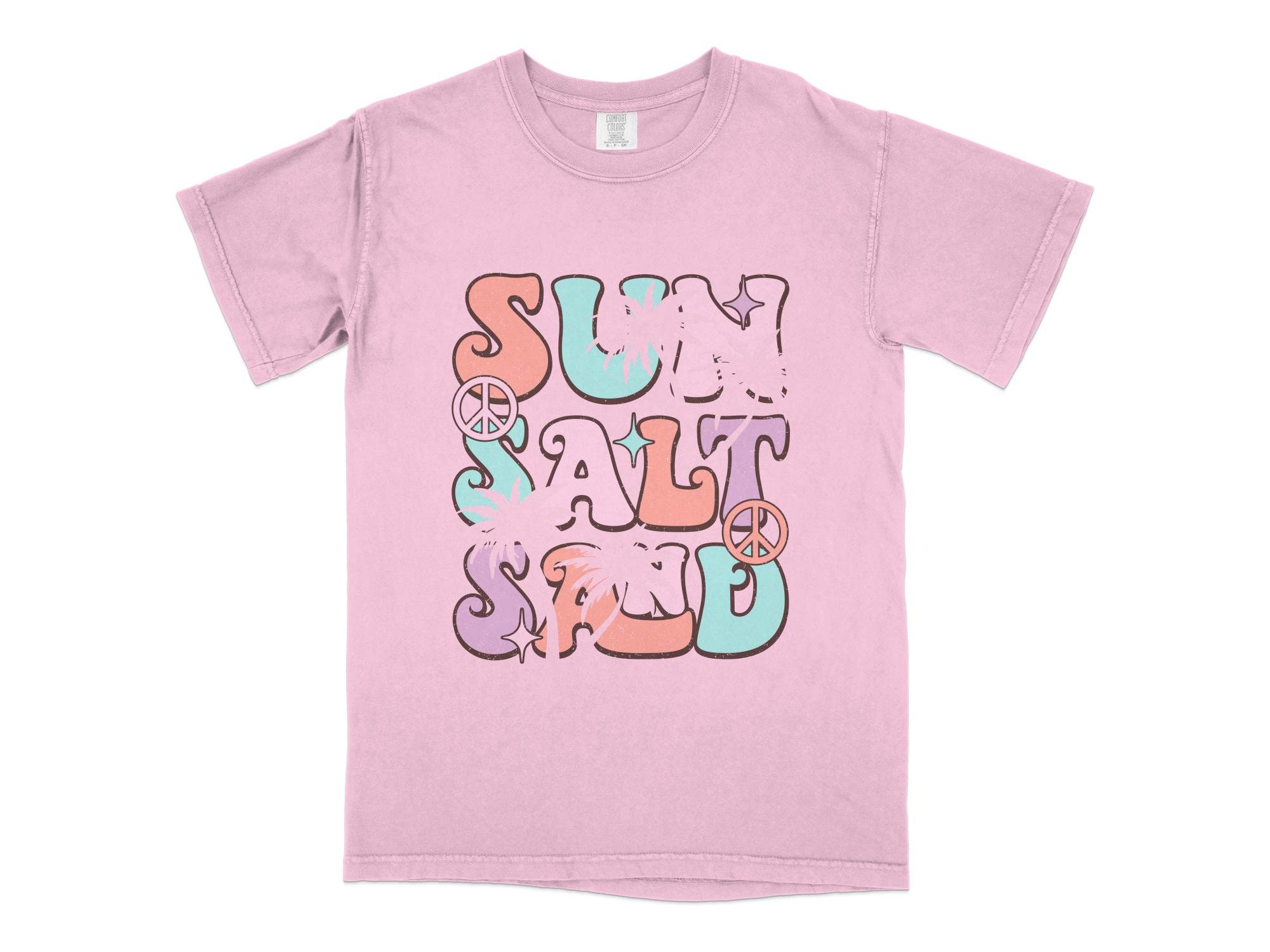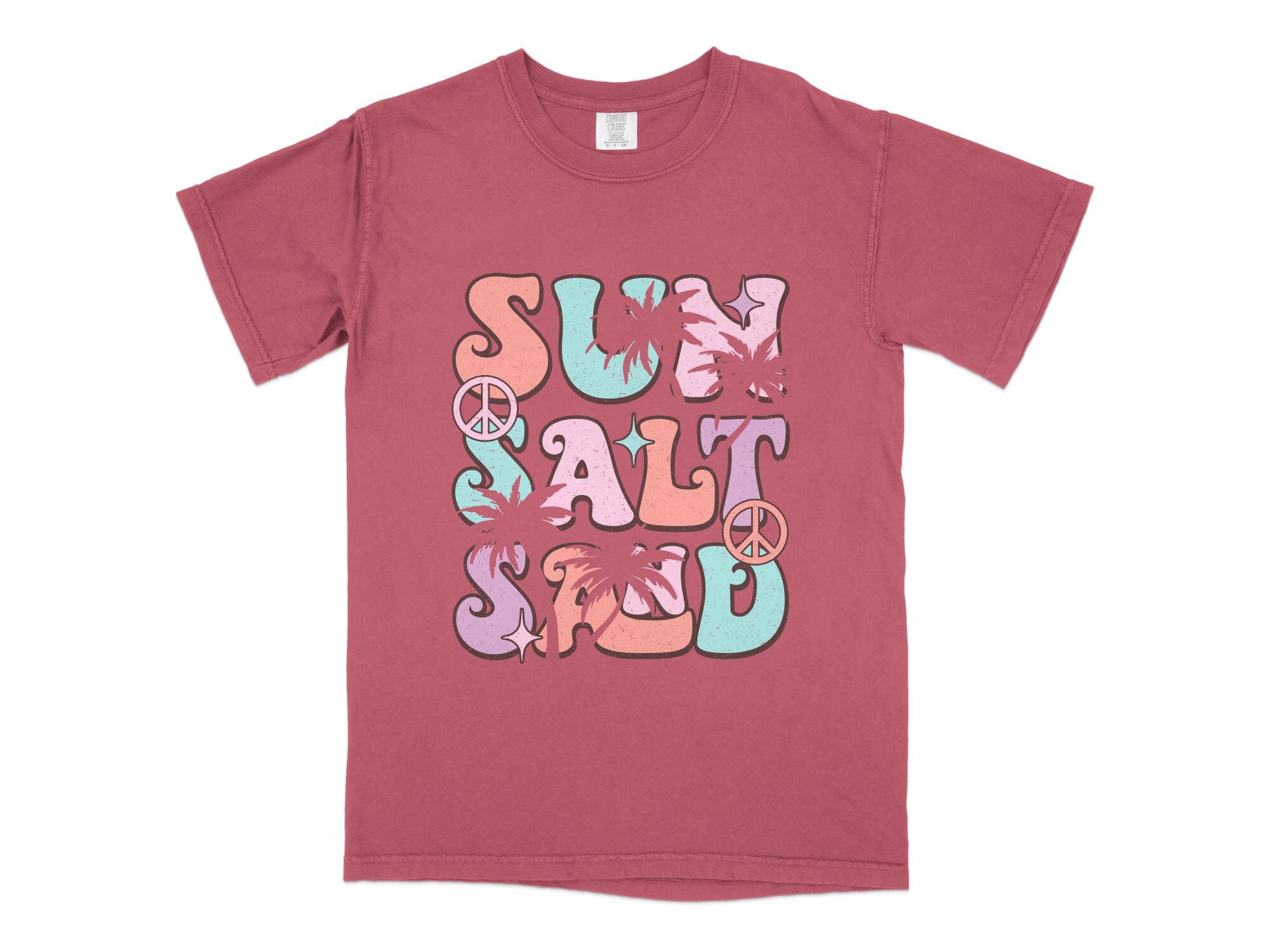 Rock this retro-styled t-shirt featuring a colorful "Surf Salt" graphic with a vintage sunset and beach theme. Perfect for letting your summer vibes shine, this tee is ideal for casual outings, beach trips, and surf sessions. Made with quality material for comfort and durability. This is also available in a canvas tote.