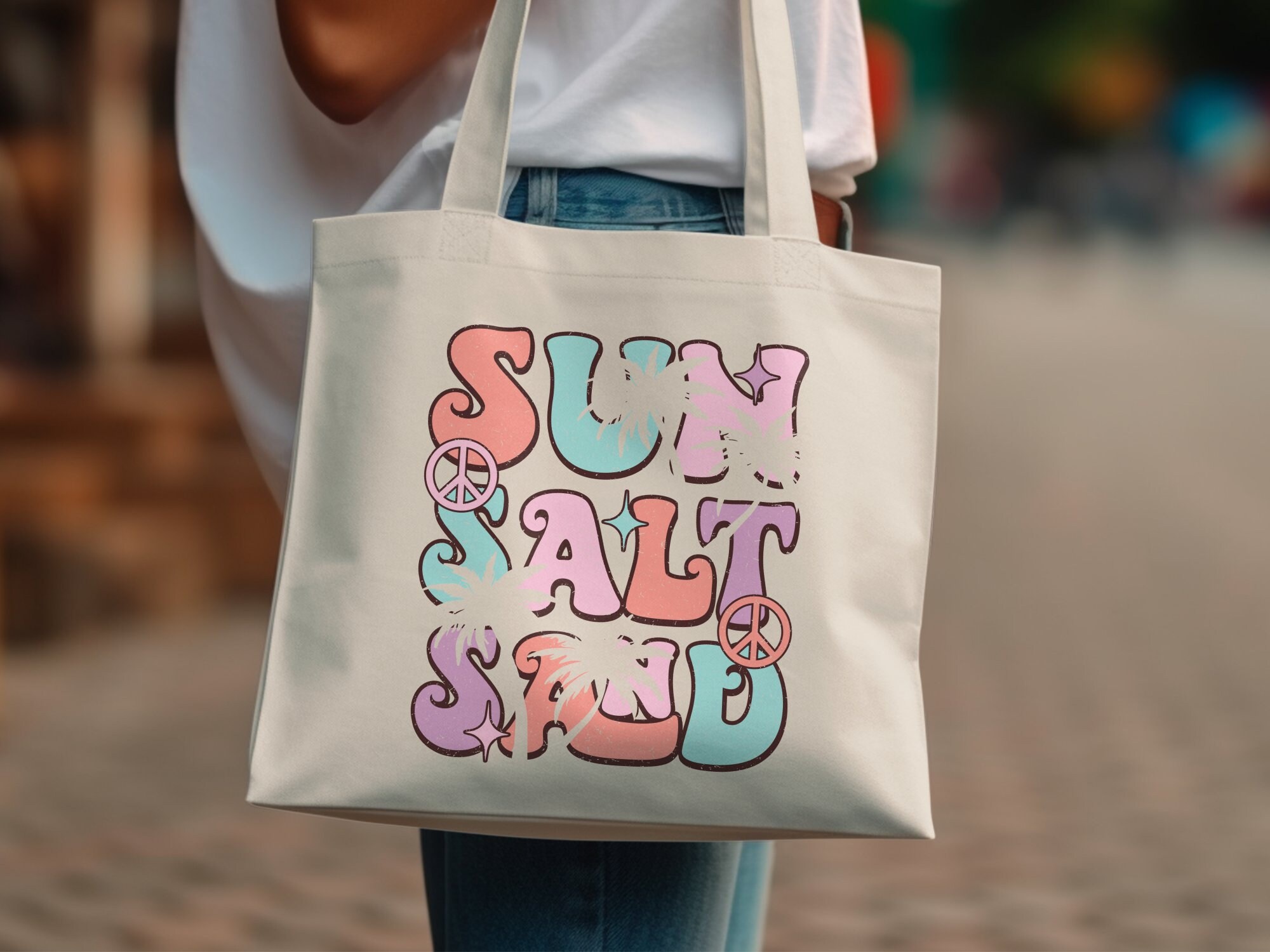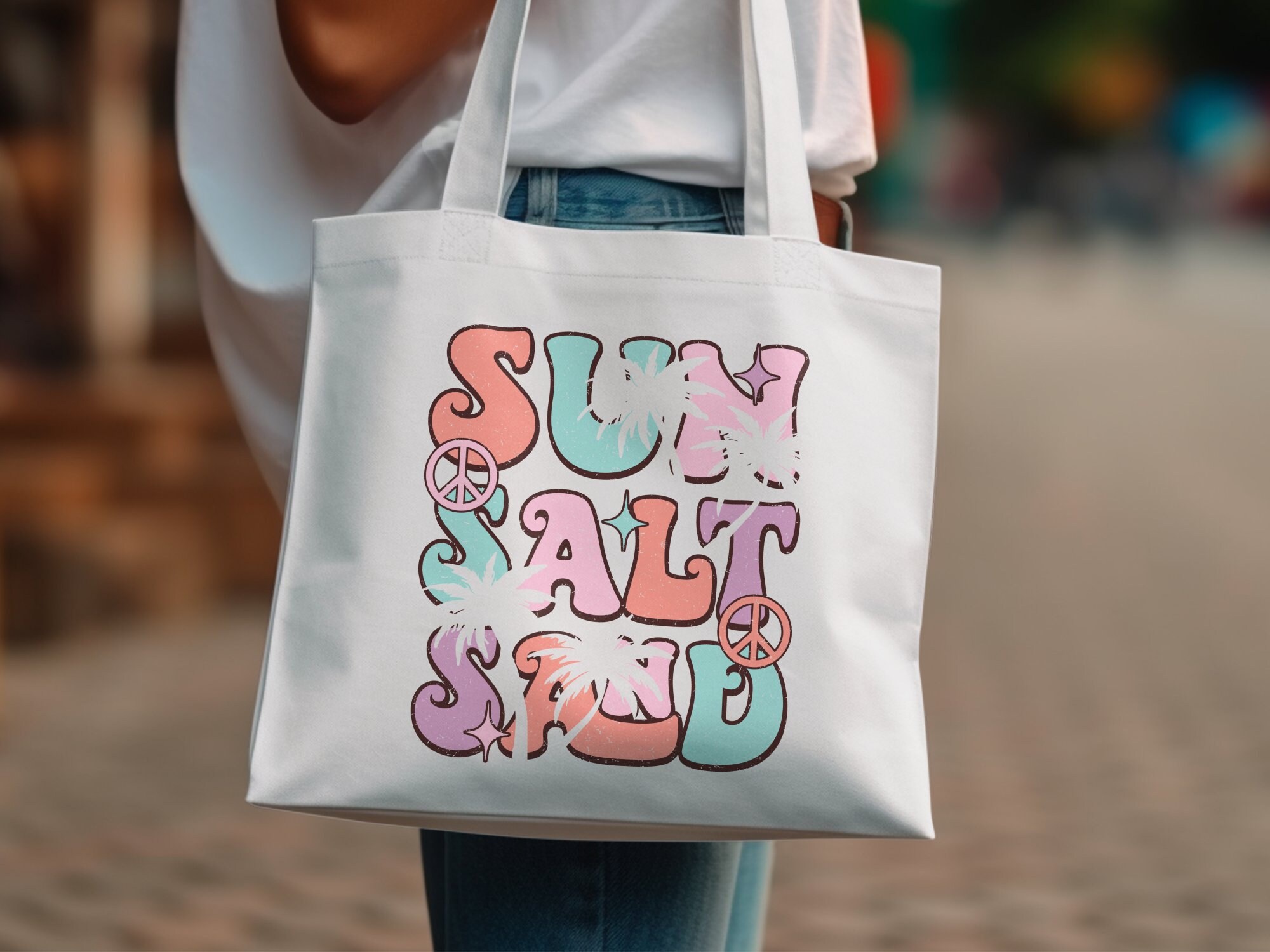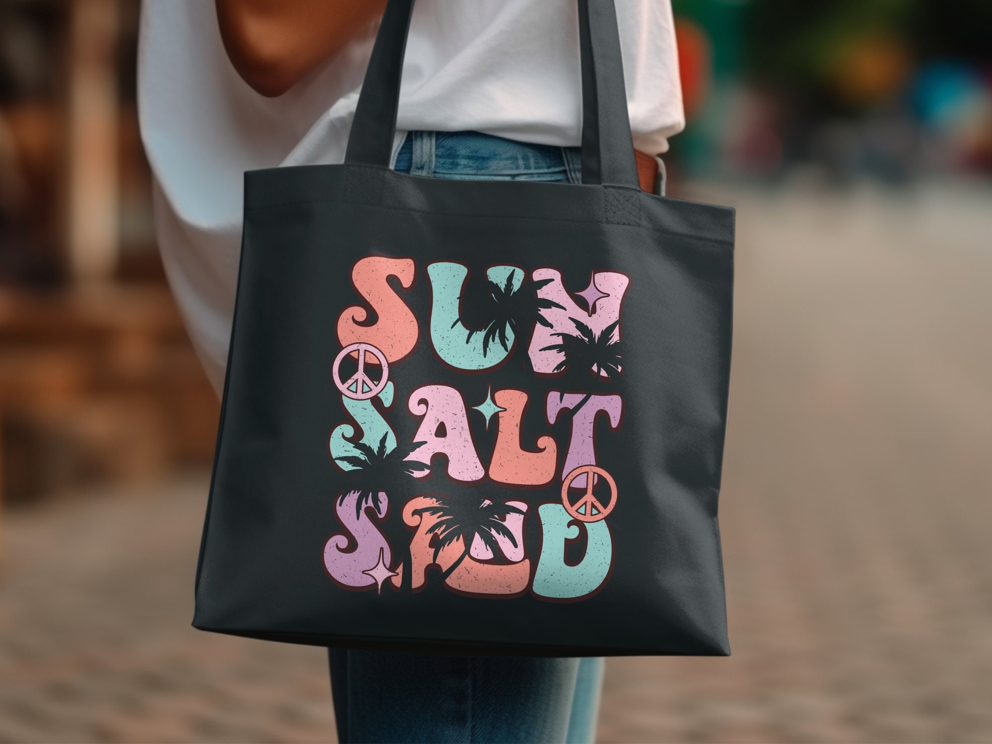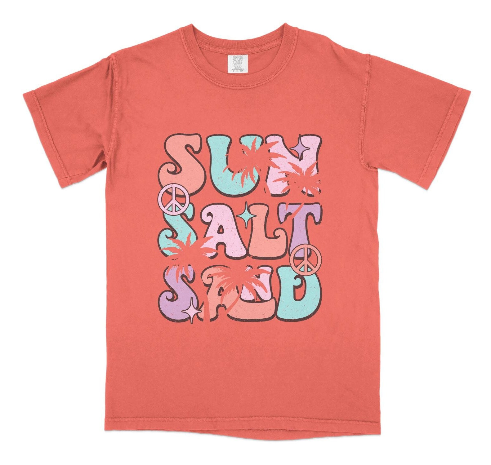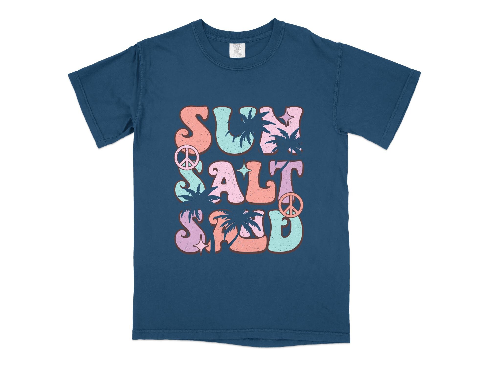 Rock this retro-styled t-shirt featuring a colorful "Surf Salt" graphic with a vintage sunset and beach theme. Perfect for letting your summer vibes shine, this tee is ideal for casual outings, beach trips, and surf sessions. Made with quality material for comfort and durability. This is also available in a canvas tote.