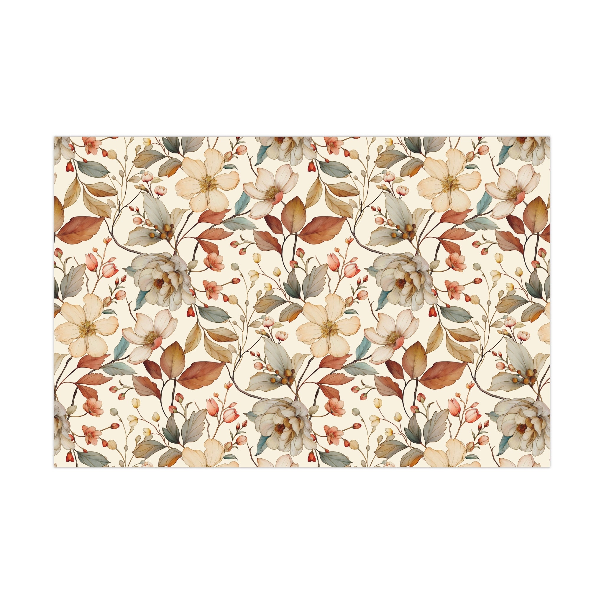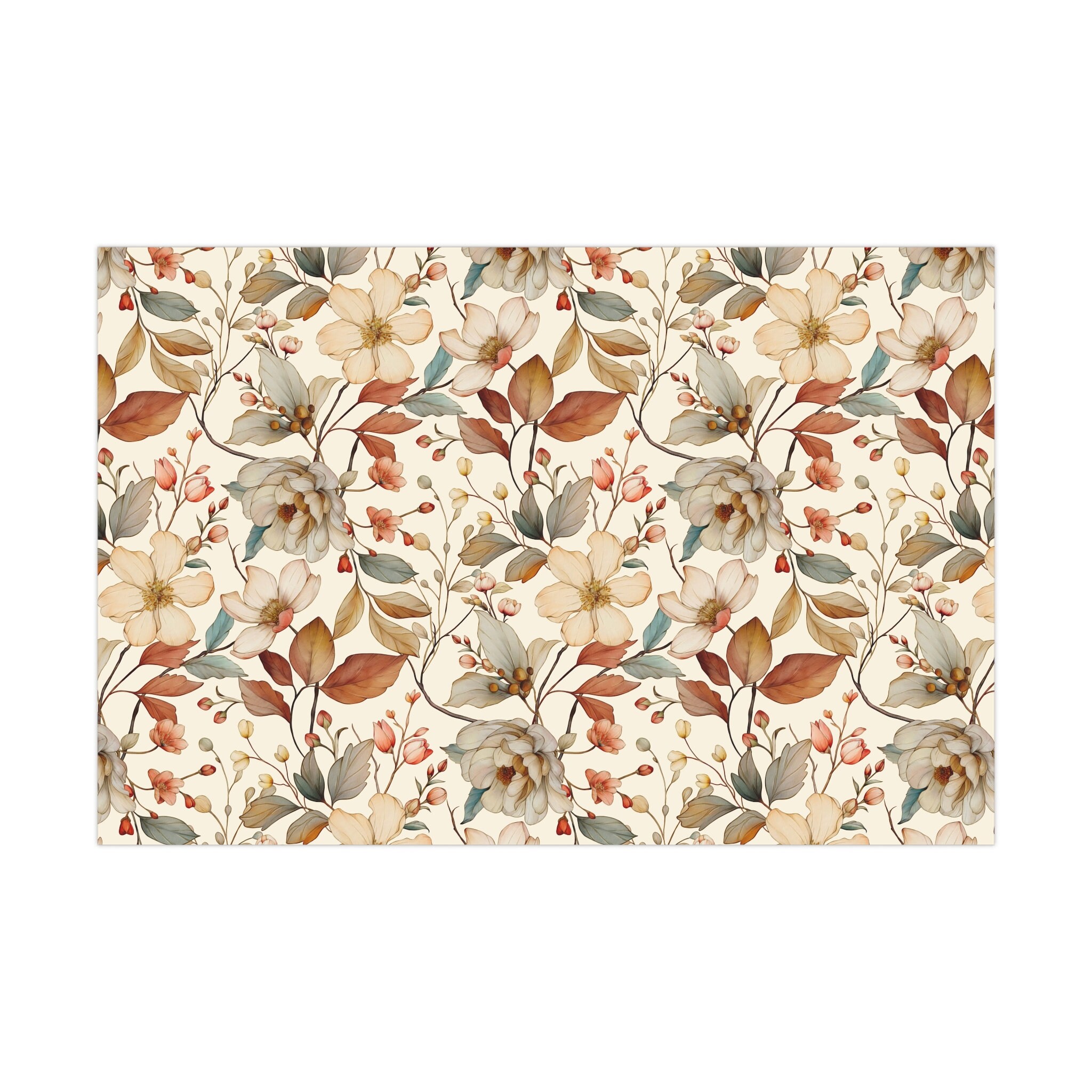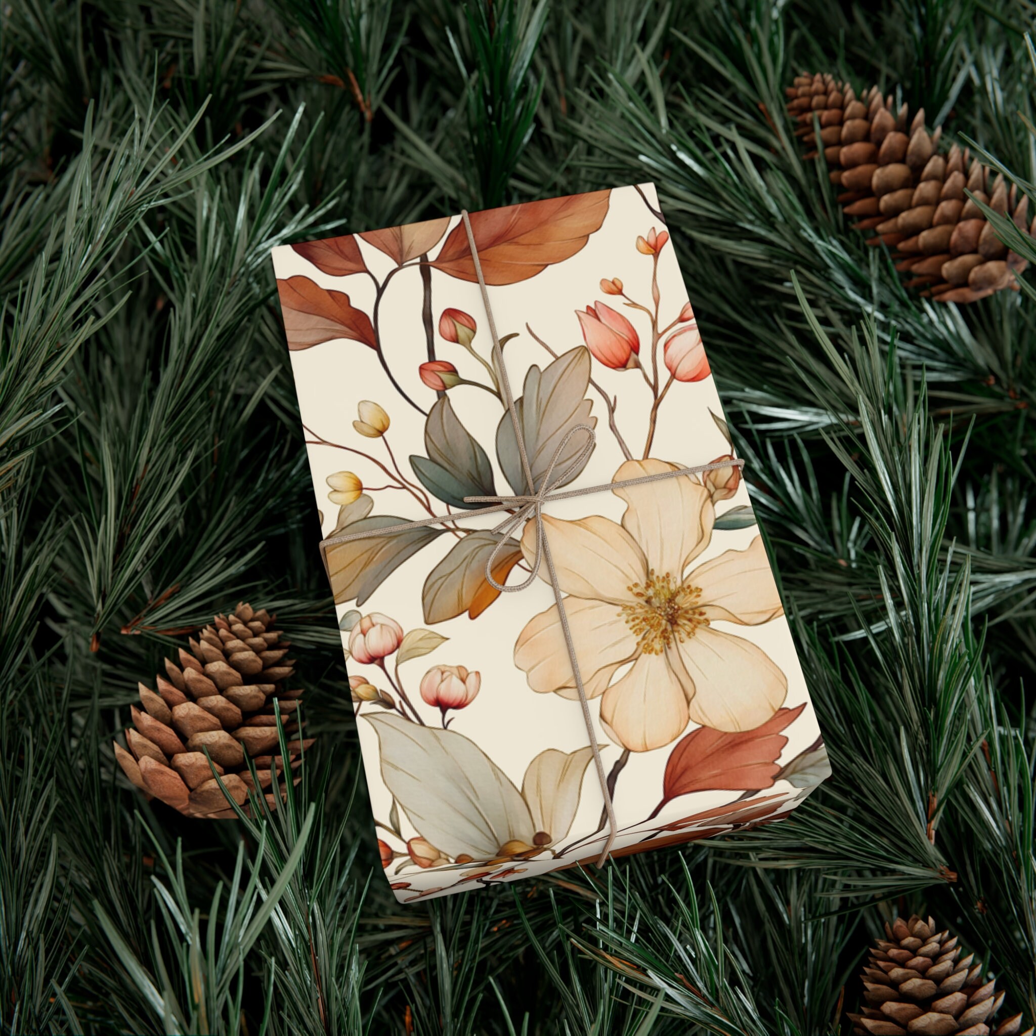 Beautiful Custom Wrapping Paper featuring floral and watercolor illustration and patterns of beautiful wildflowers, leaves and greenery. These cottagecore style flower designs in pink, sage, peach, cream, gold, and aqua.