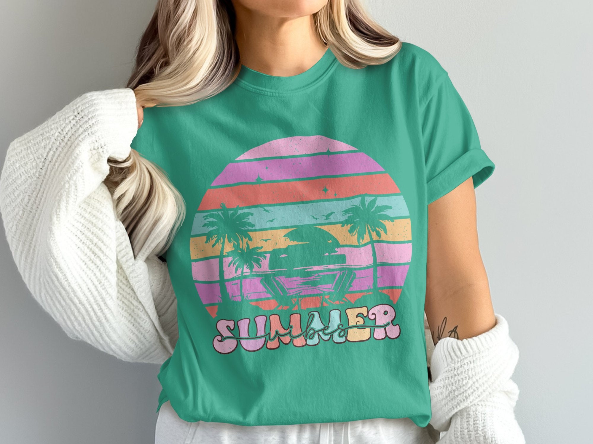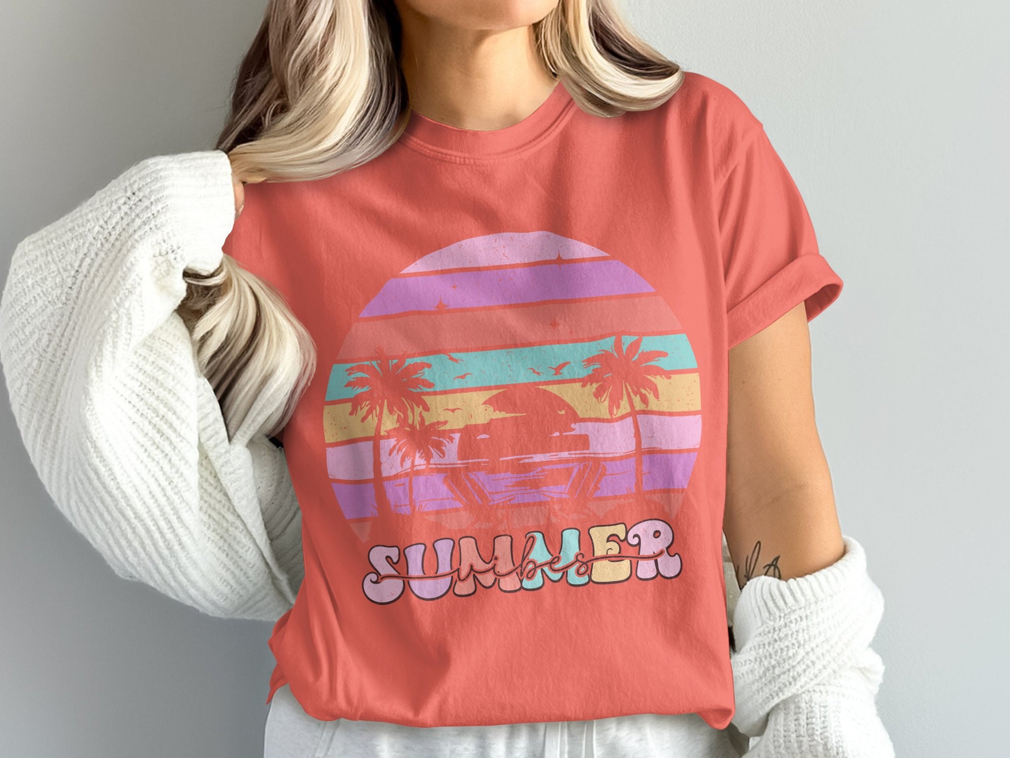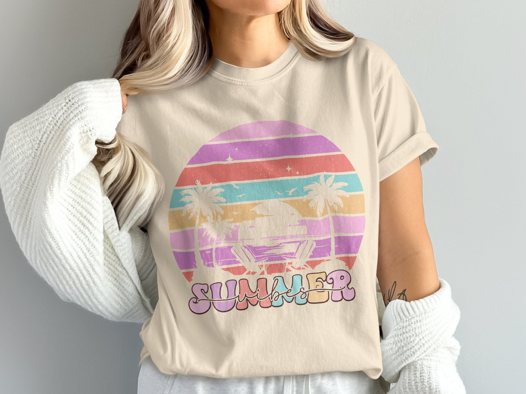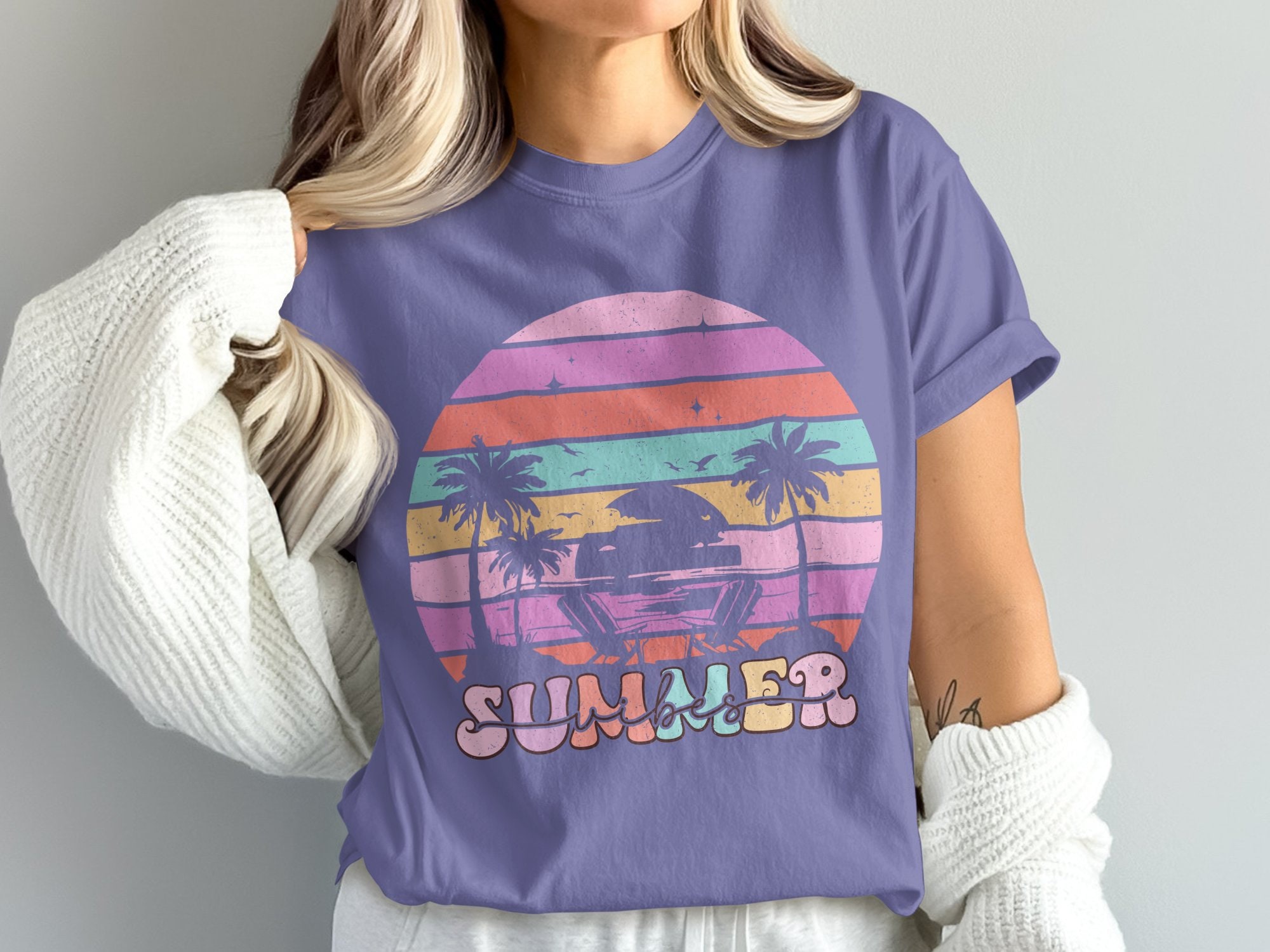 Retro Summer Sunset T-Shirt: Beach Palm Tree Graphic, Comfort Colors Tee