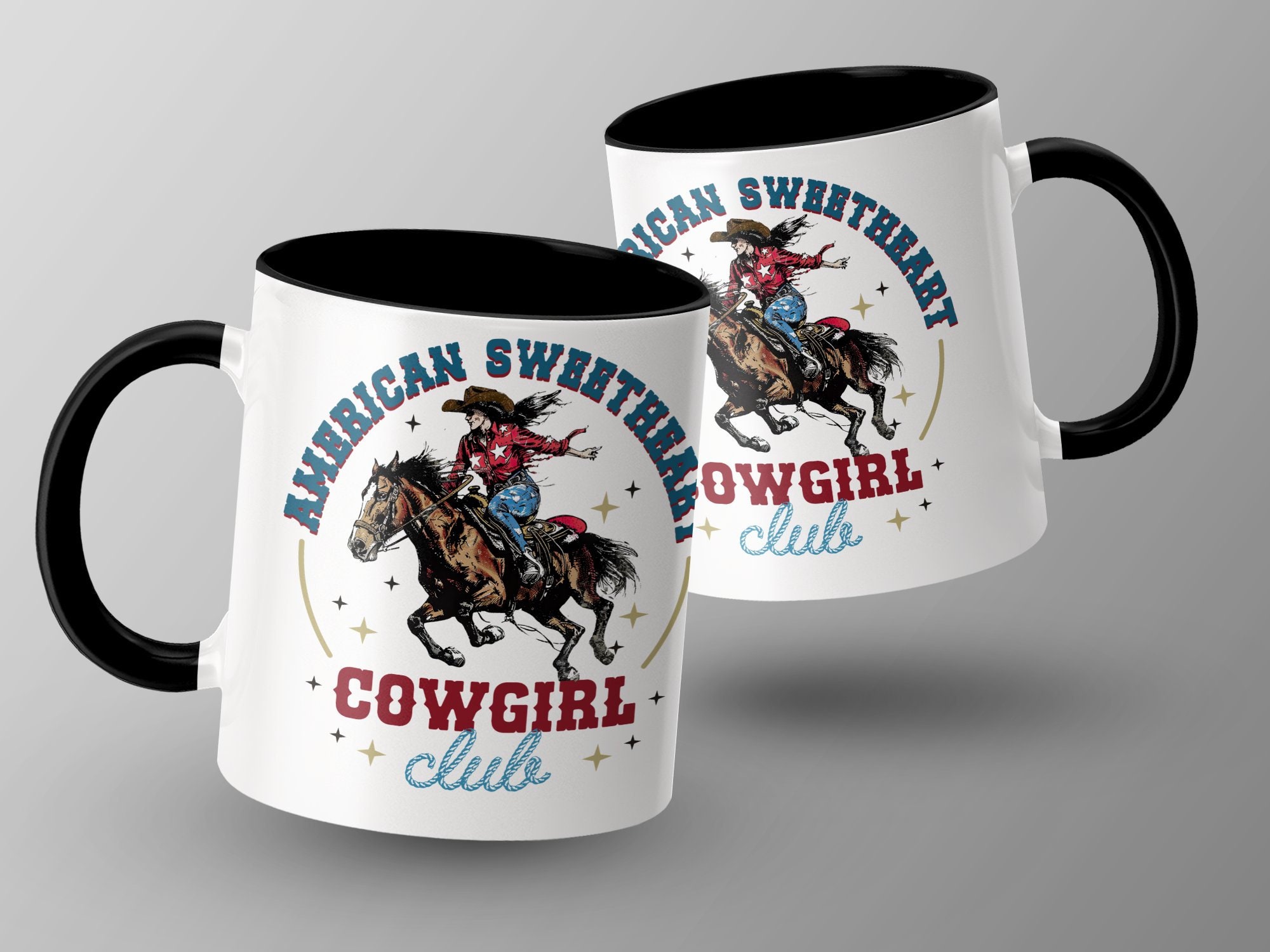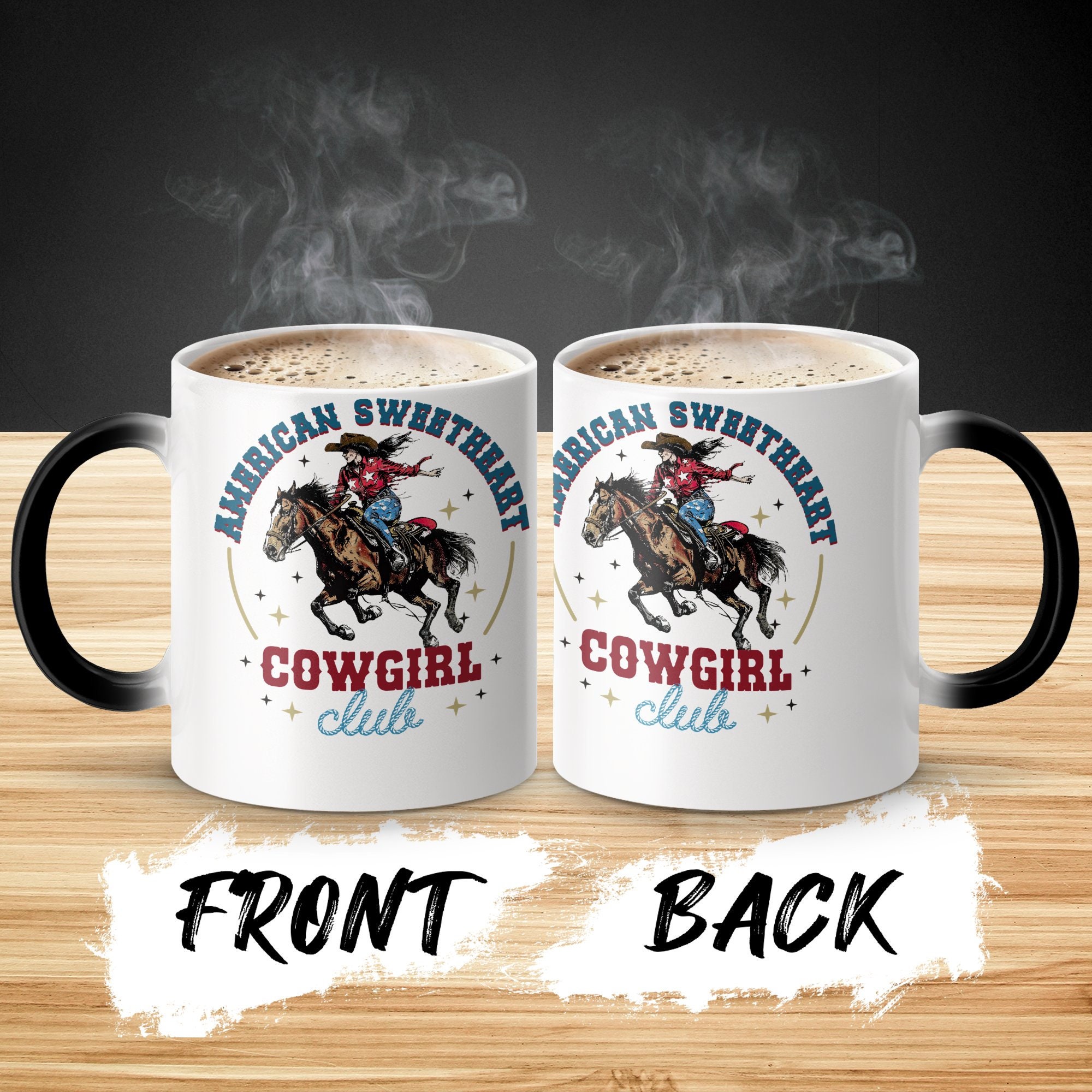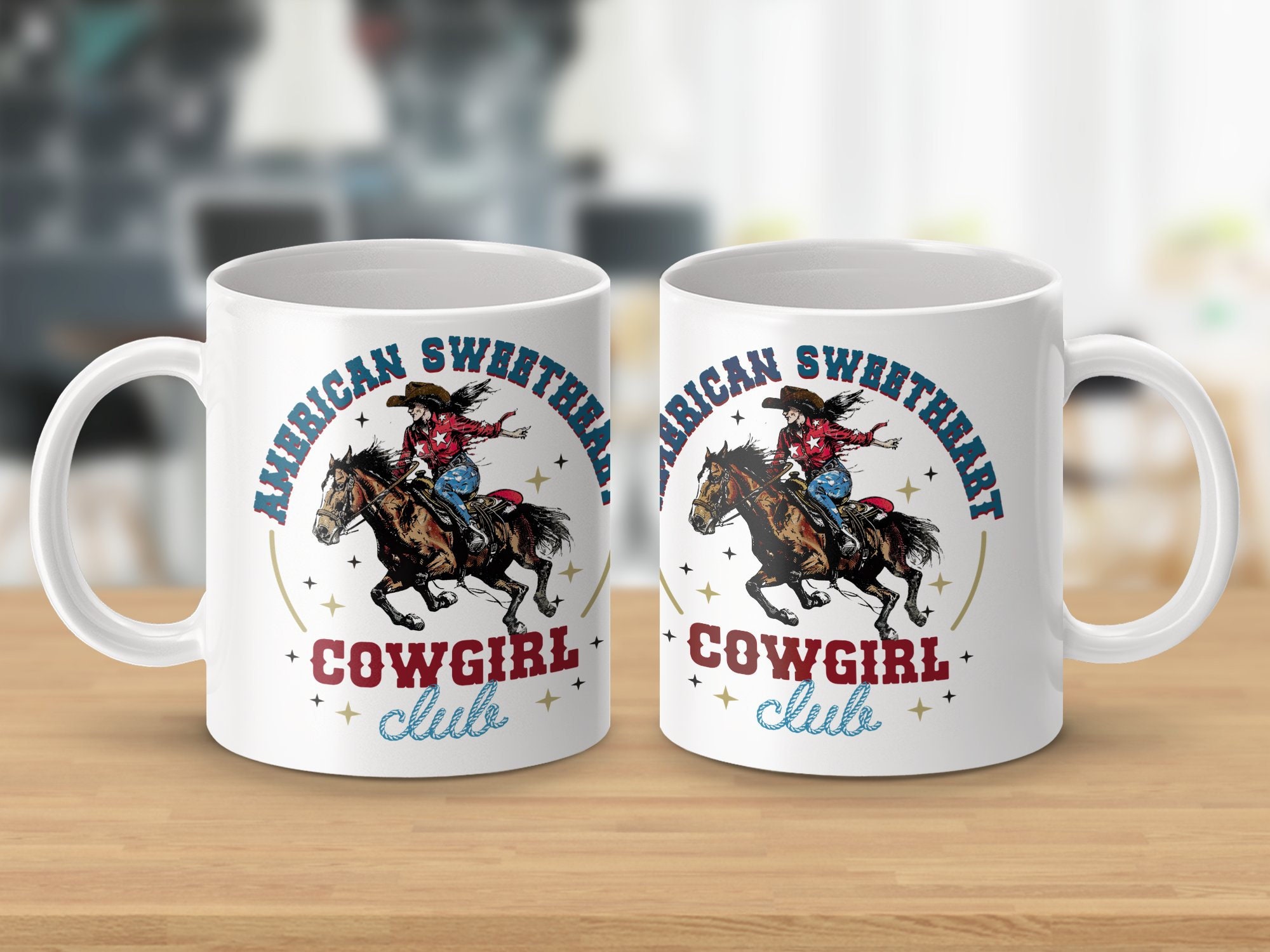 Add a touch of wild west flair to your morning routine with this American Sweetheart Cowgirl Club mug. Perfect for anyone who loves the cowboy lifestyle or has a passion for horse riding, this high-quality ceramic mug features vibrant artwork of a cowgirl galloping on her horse, embraced by a star-spangled banner and the bold text "Cowgirl Club". Durable and dishwasher safe, it’s ideal for daily use or as a special gift.