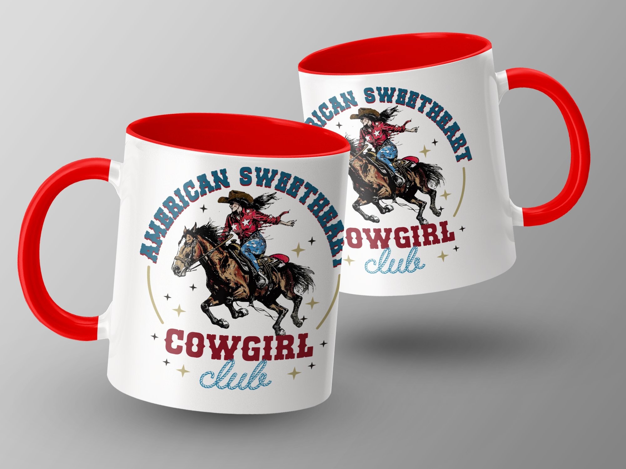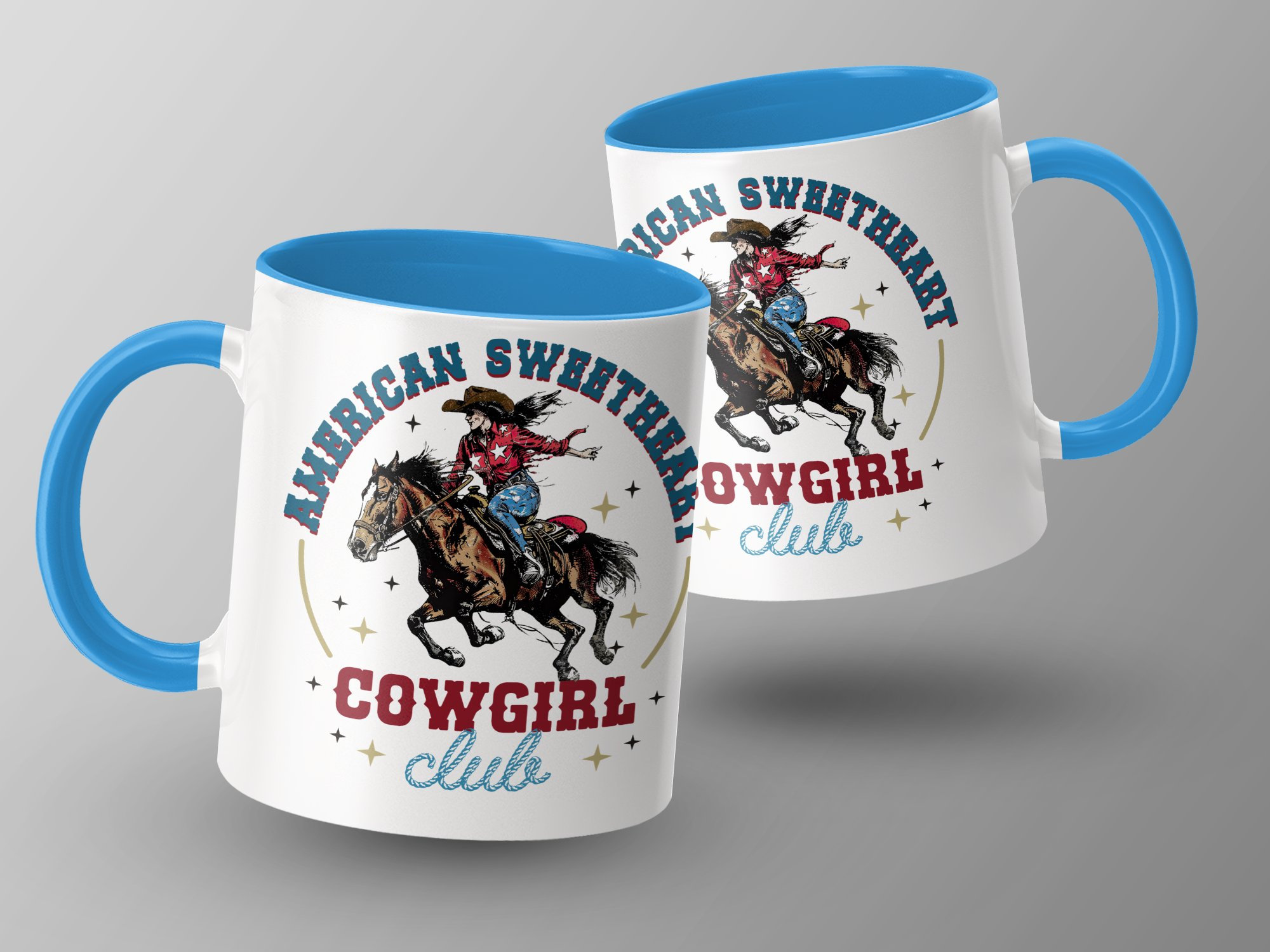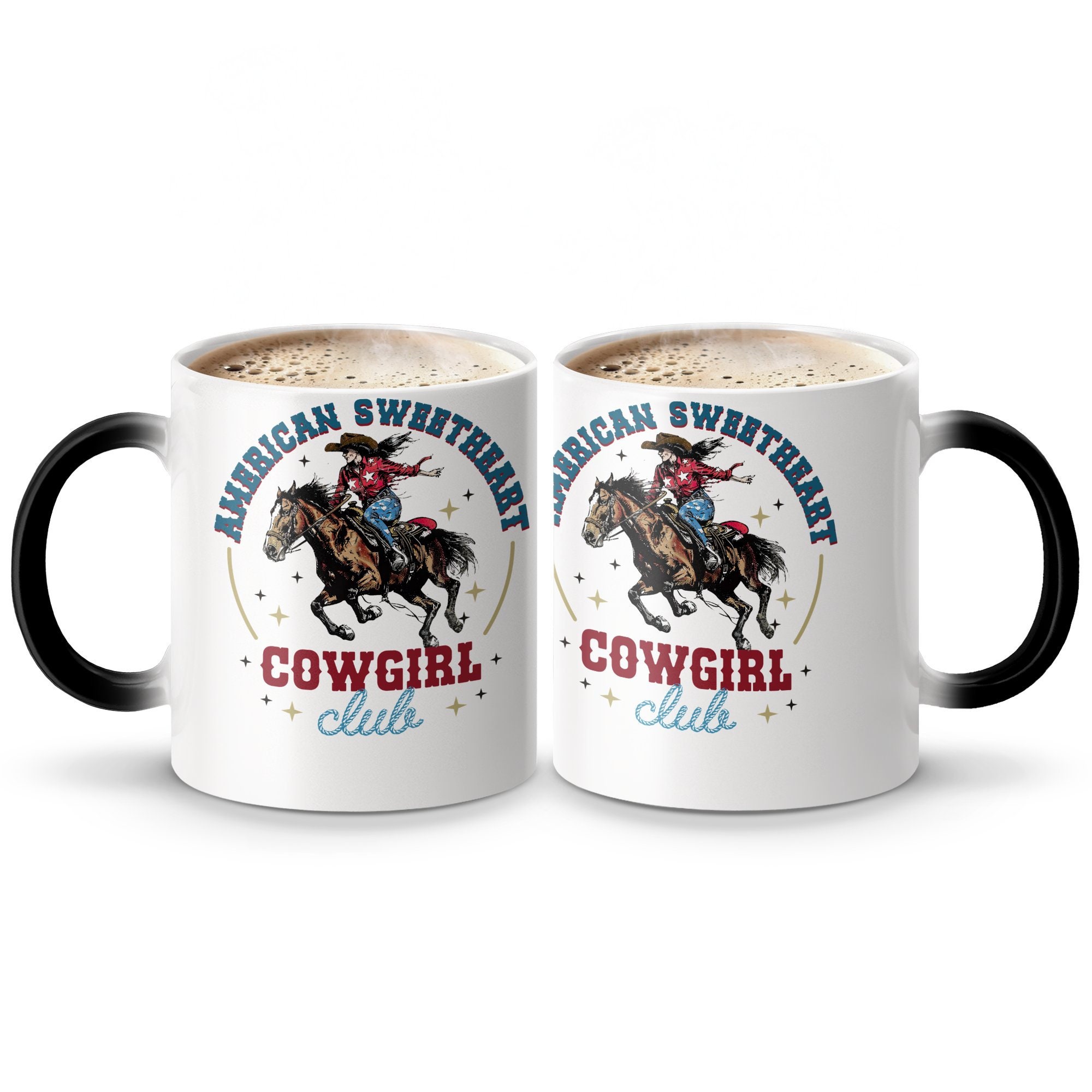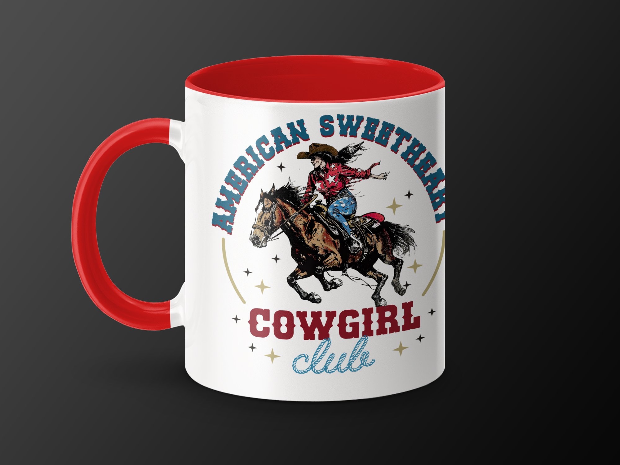 Add a touch of wild west flair to your morning routine with this American Sweetheart Cowgirl Club mug. Perfect for anyone who loves the cowboy lifestyle or has a passion for horse riding, this high-quality ceramic mug features vibrant artwork of a cowgirl galloping on her horse, embraced by a star-spangled banner and the bold text "Cowgirl Club". Durable and dishwasher safe, it’s ideal for daily use or as a special gift.
