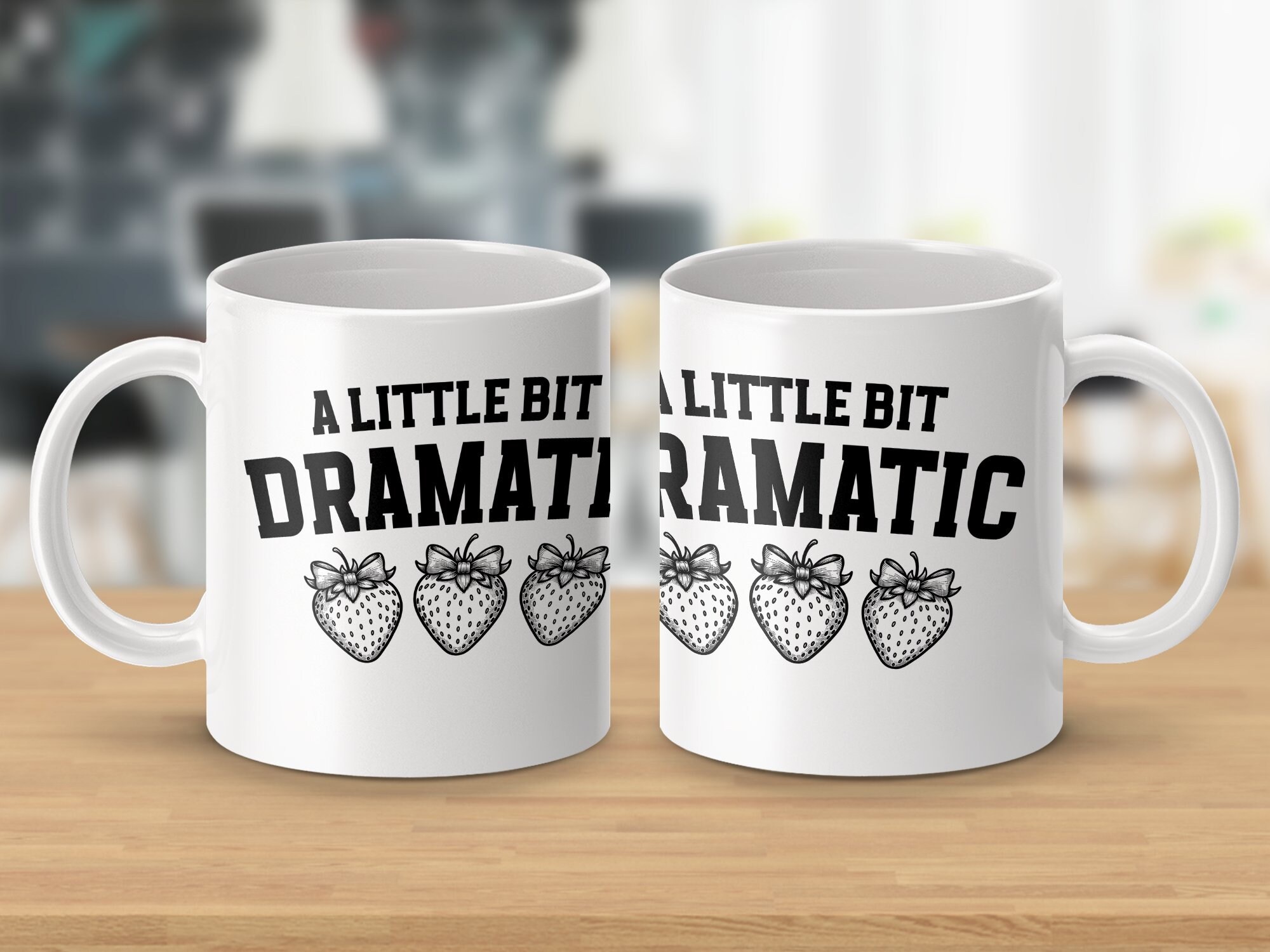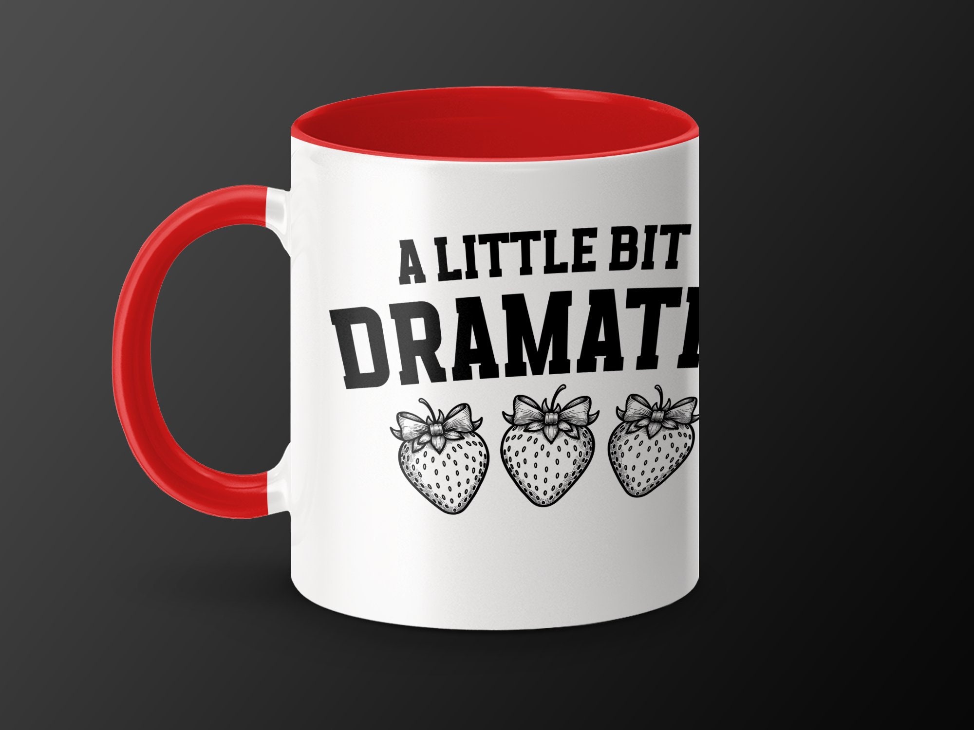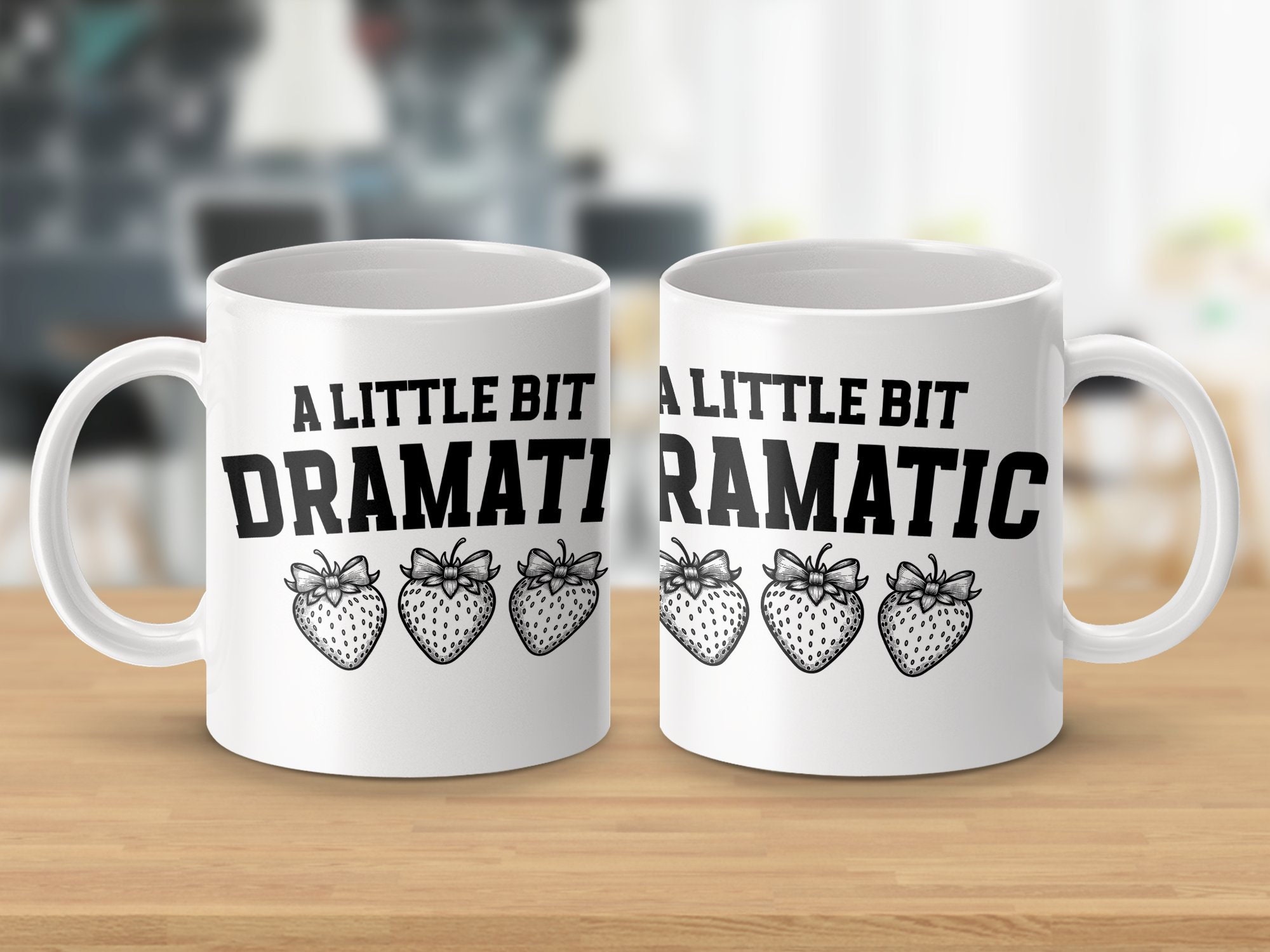 Add a touch of playful drama to your morning coffee or tea ritual with this charming mug, featuring the phrase "A Little Bit Dramatic" paired with three beautifully illustrated strawberries. Each strawberry is detailed with a cute bow, making it a perfect gift for anyone who loves fun and quirky kitchenware. Ideal for sipping your favorite hot beverage, this mug also serves as a great desk accessory.
