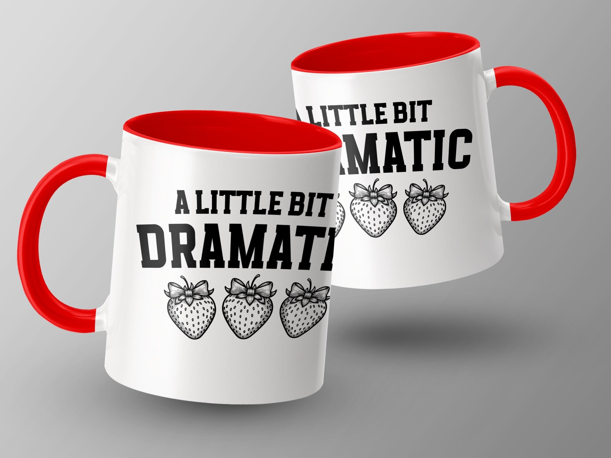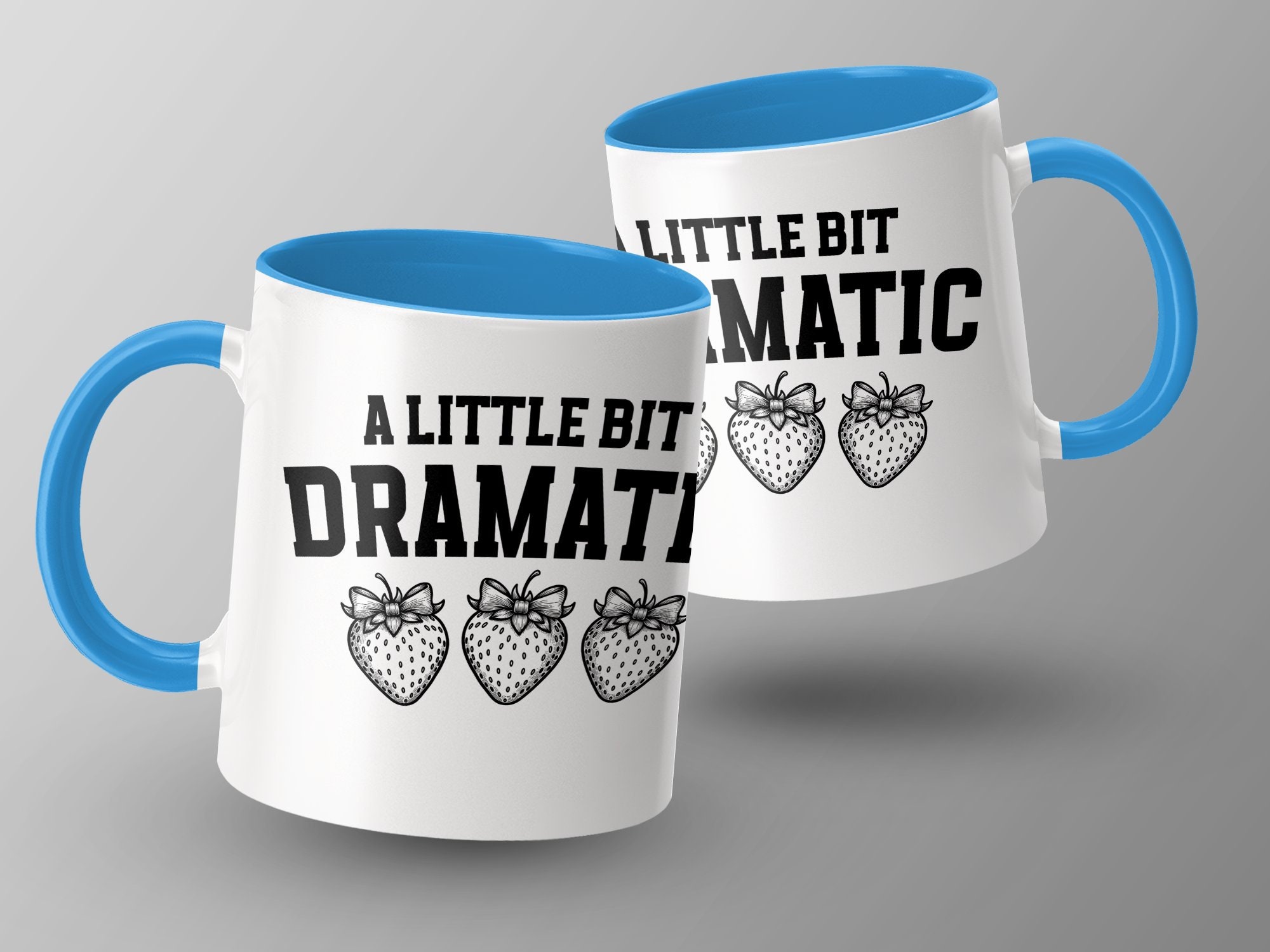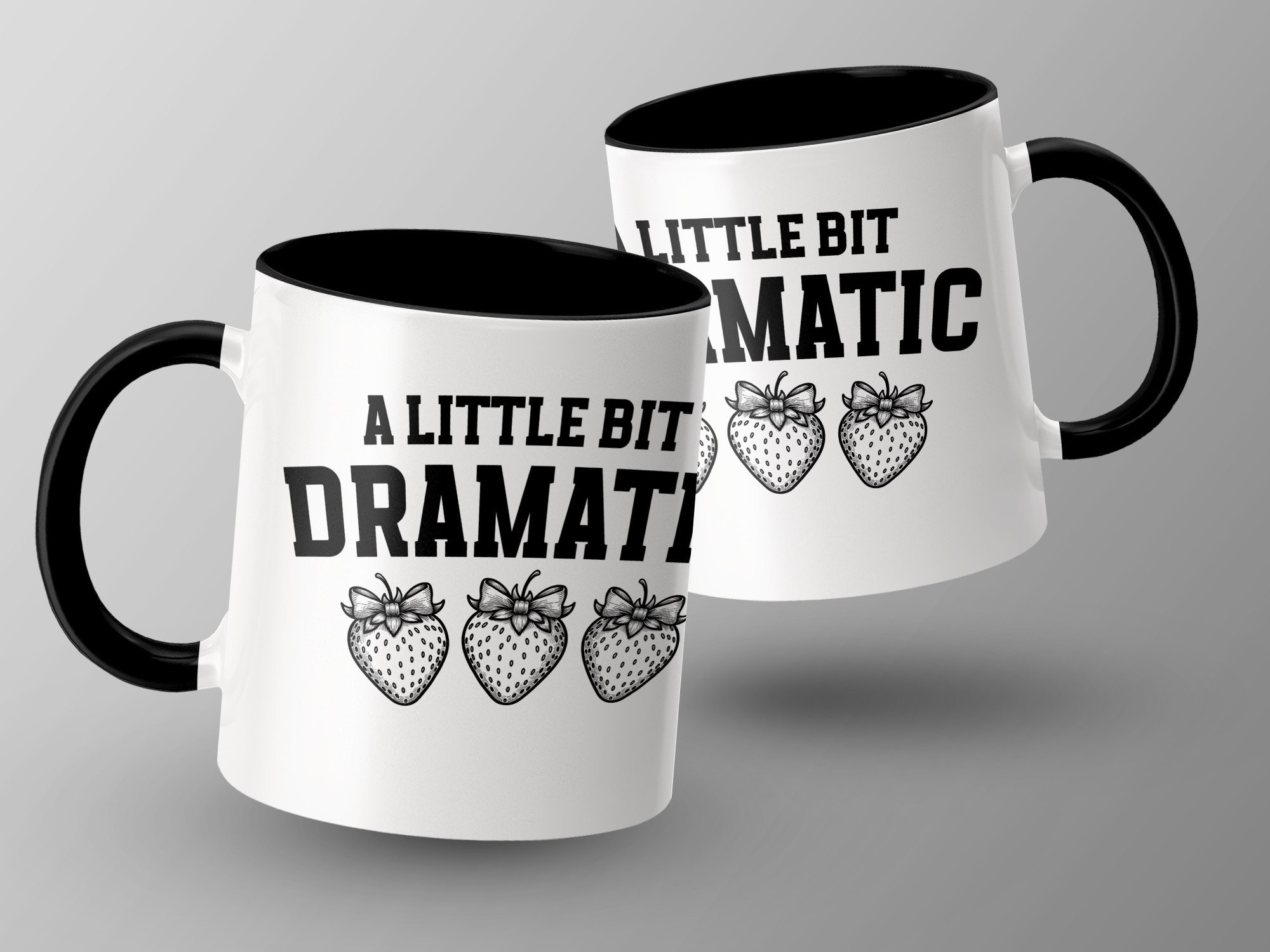 Add a touch of playful drama to your morning coffee or tea ritual with this charming mug, featuring the phrase "A Little Bit Dramatic" paired with three beautifully illustrated strawberries. Each strawberry is detailed with a cute bow, making it a perfect gift for anyone who loves fun and quirky kitchenware. Ideal for sipping your favorite hot beverage, this mug also serves as a great desk accessory.