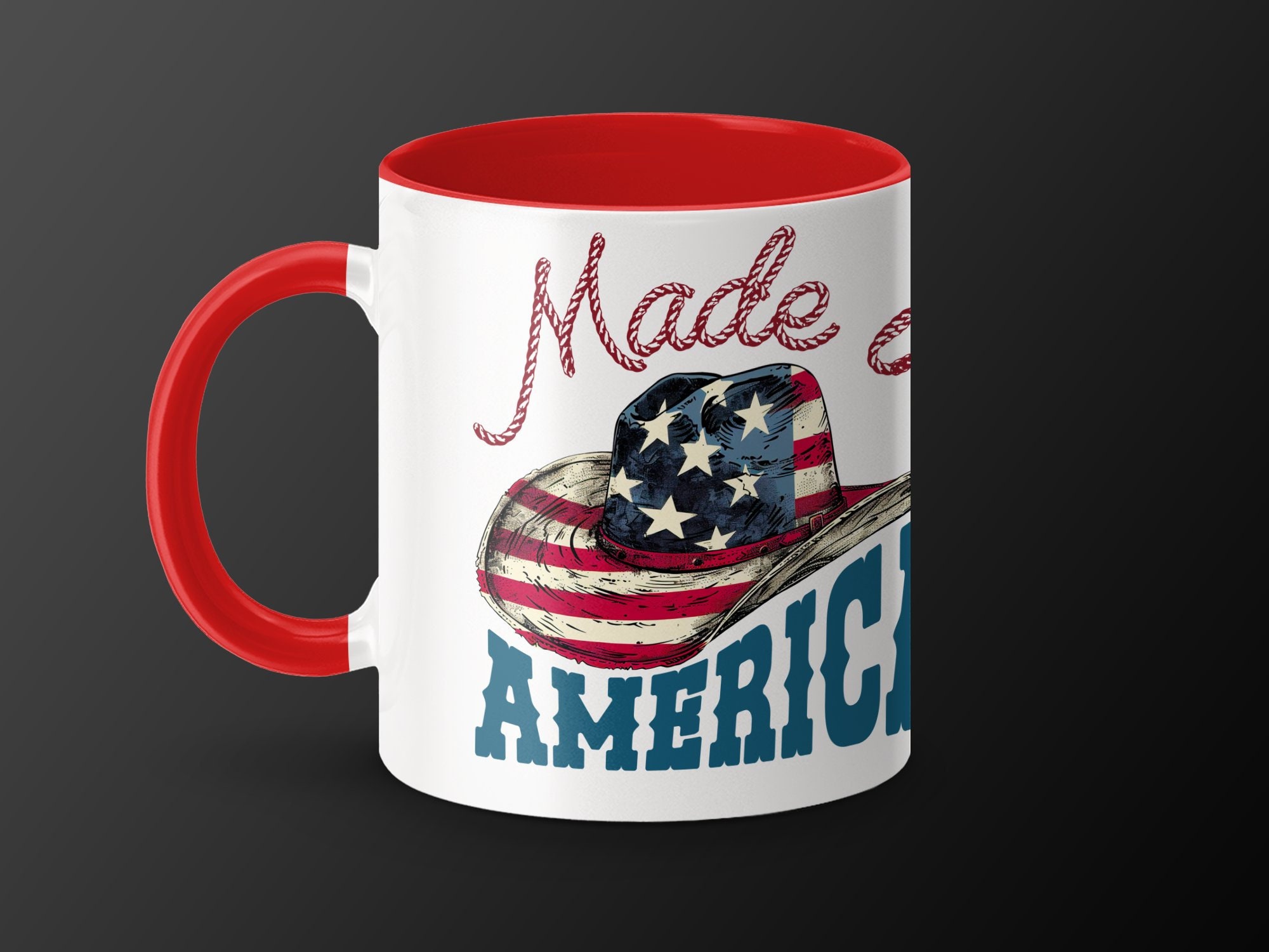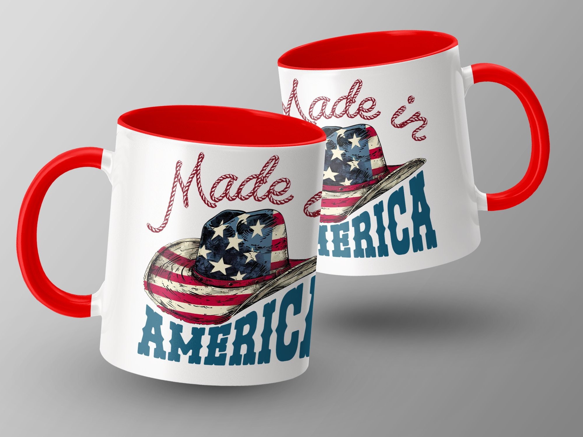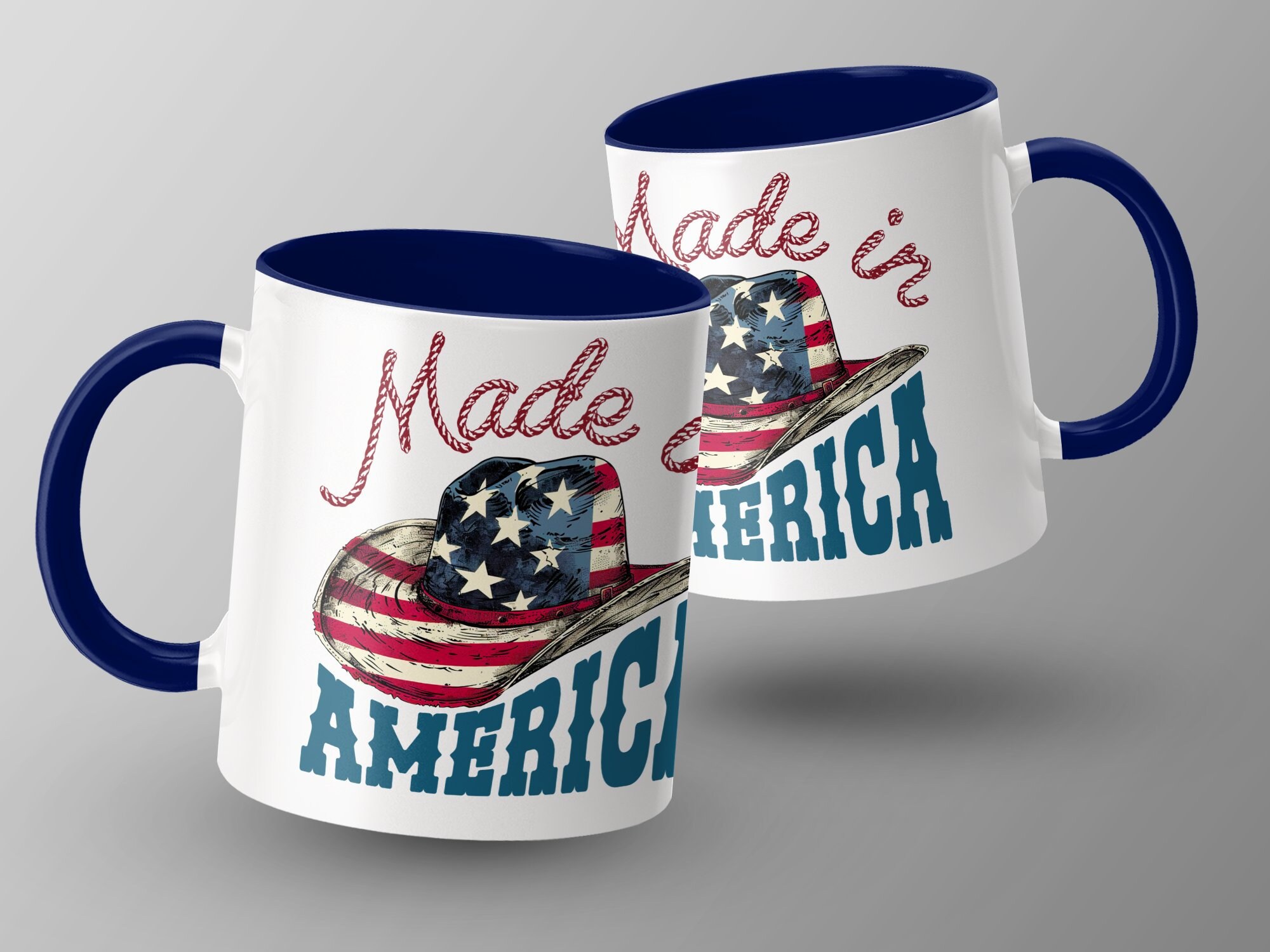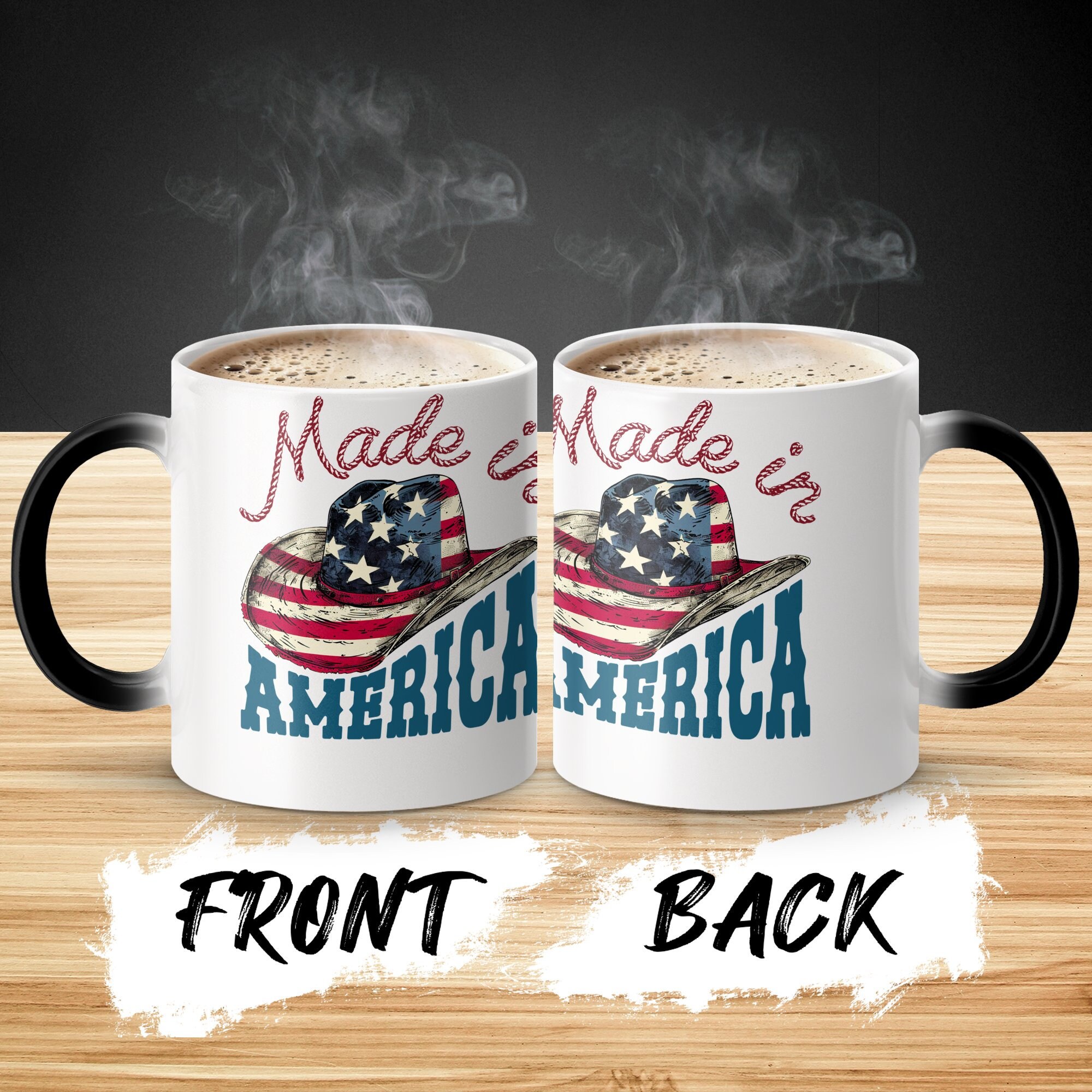Start your day with a sip of patriotism with this beautifully designed coffee mug featuring a cowboy hat adorned with the American flag. The phrase "Made in America" proudly emphasizes national pride, making this mug a perfect gift for any patriot. Ideal for enjoying coffee or tea, this robust ceramic mug adds a touch of Americana to any morning routine. Its durable construction ensures it can be a part of daily life, celebrating American spirit one cup at a time.