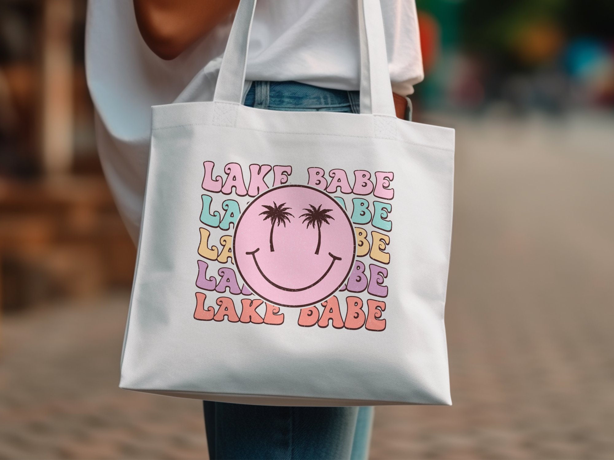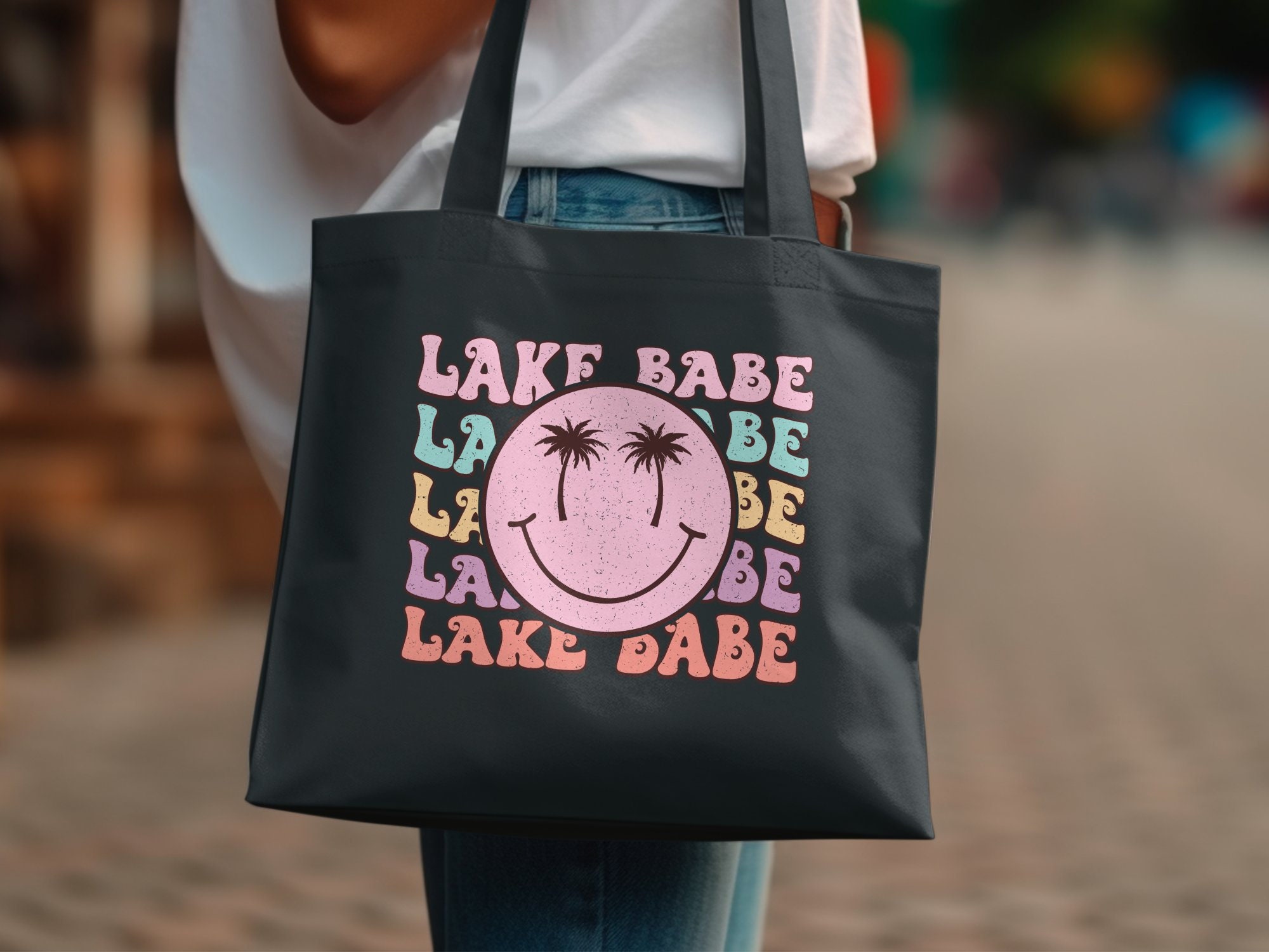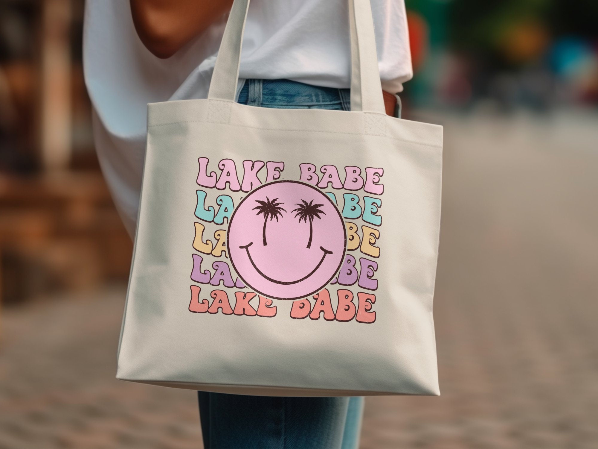 Retro Lake Babe Tote with Palm Tree Graphic, Trendy Summer Bag, Lake Babe Tote, Family Tote Bag, Summer Boat Day Bag, Stylish Lake Babe Tote