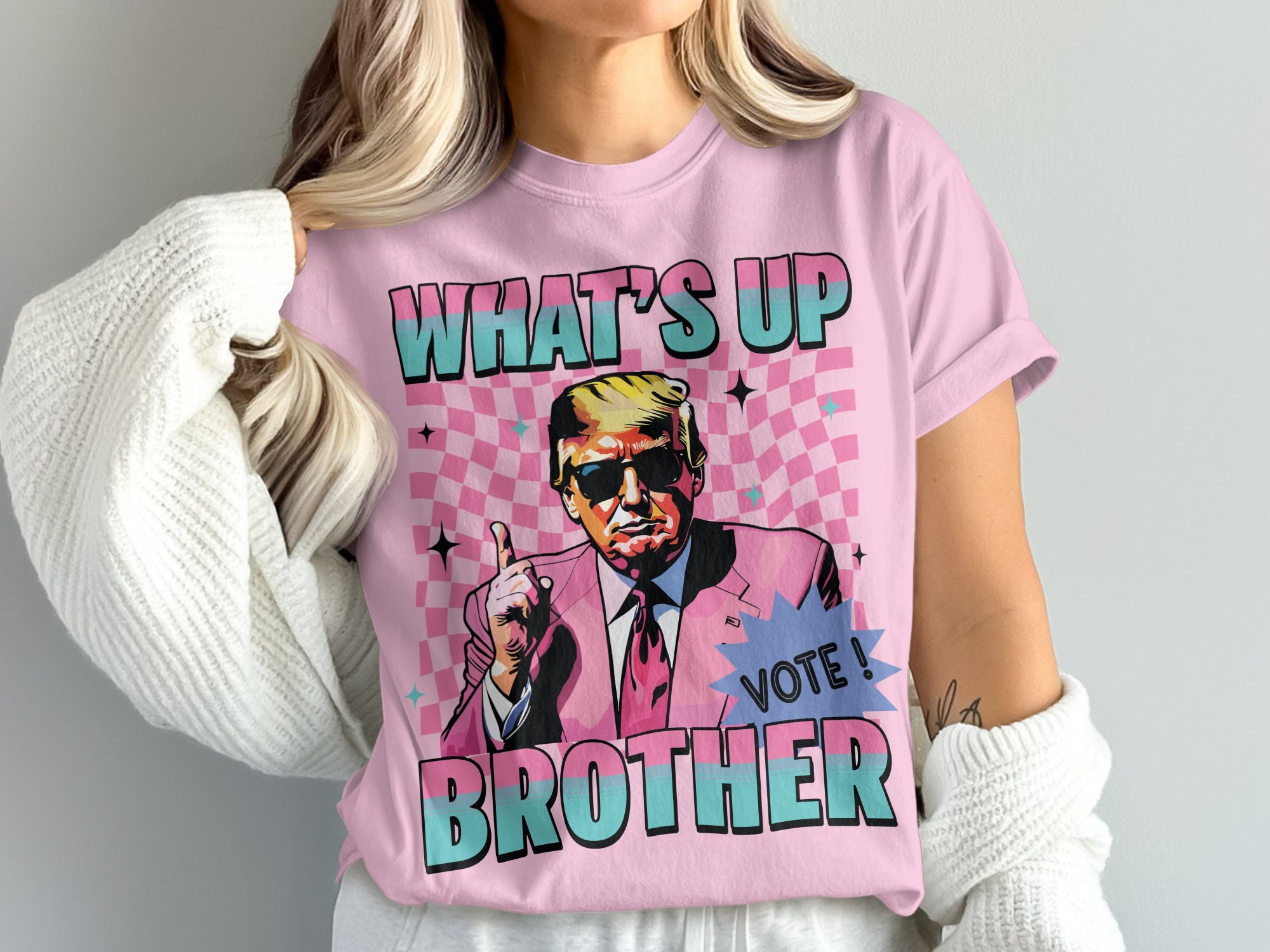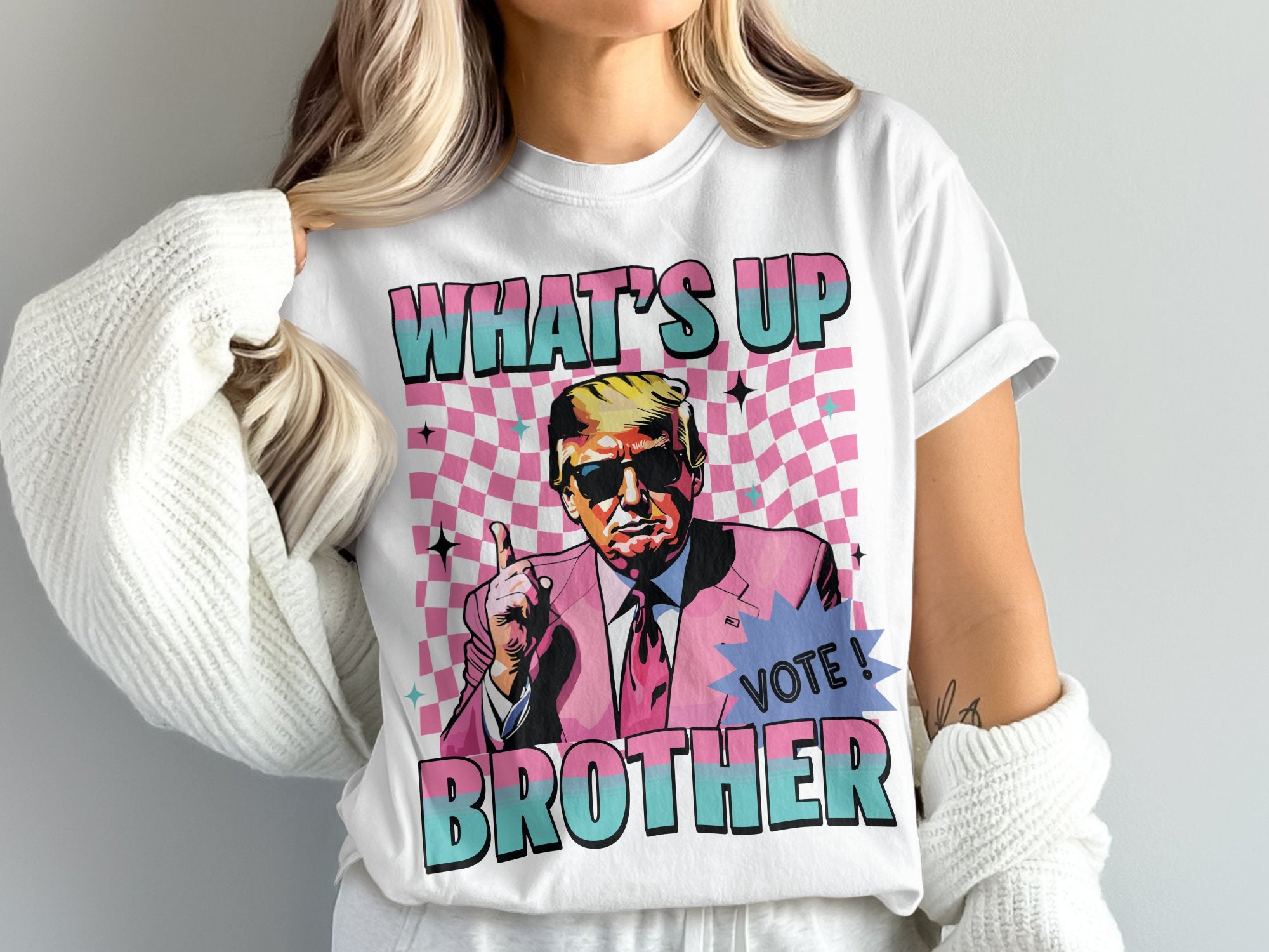 Trump What's Up Brother Tee, Funny Trump Pink Suit Comfort Colors Shirt, Retro Vintage Funny Trump Shirt, Funny Trump Pink Suit Retro Tee