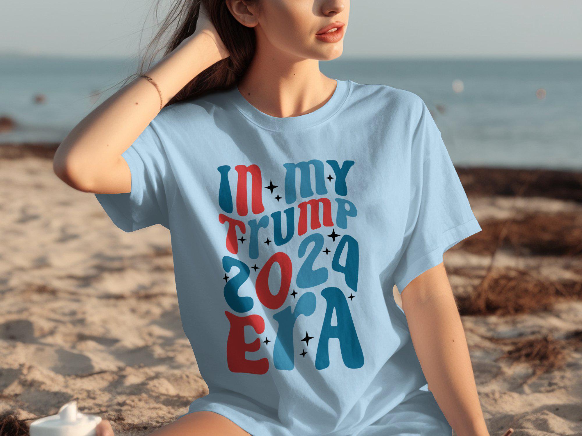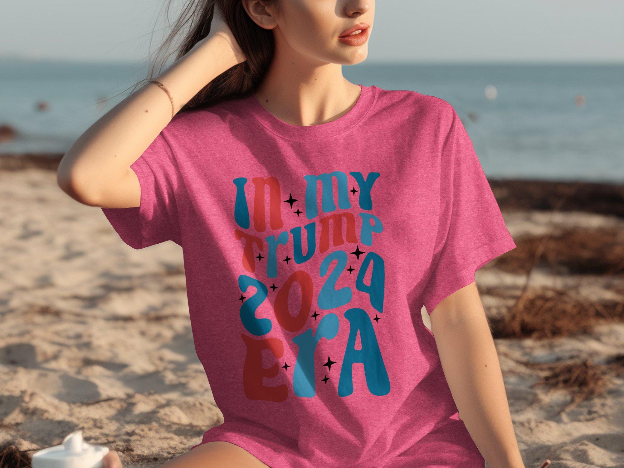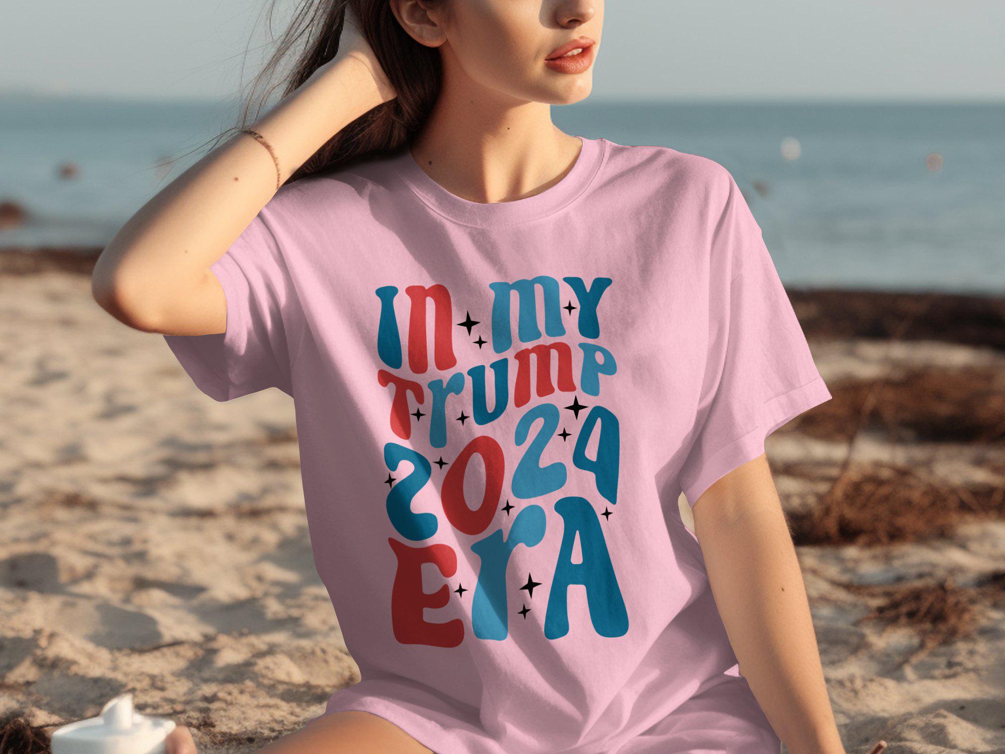 Show your support for Trump with this trendy 2024 T-shirt. Featuring a retro design with bold colors, this "In My Trump Era" tee is perfect for rallies, casual outings, or as a conversation starter. Ideal for patriots and Trump supporters, this shirt makes a great gift for friends and family who share the same political views. Made for comfort and style, this T-shirt is a must-have addition to your collection.