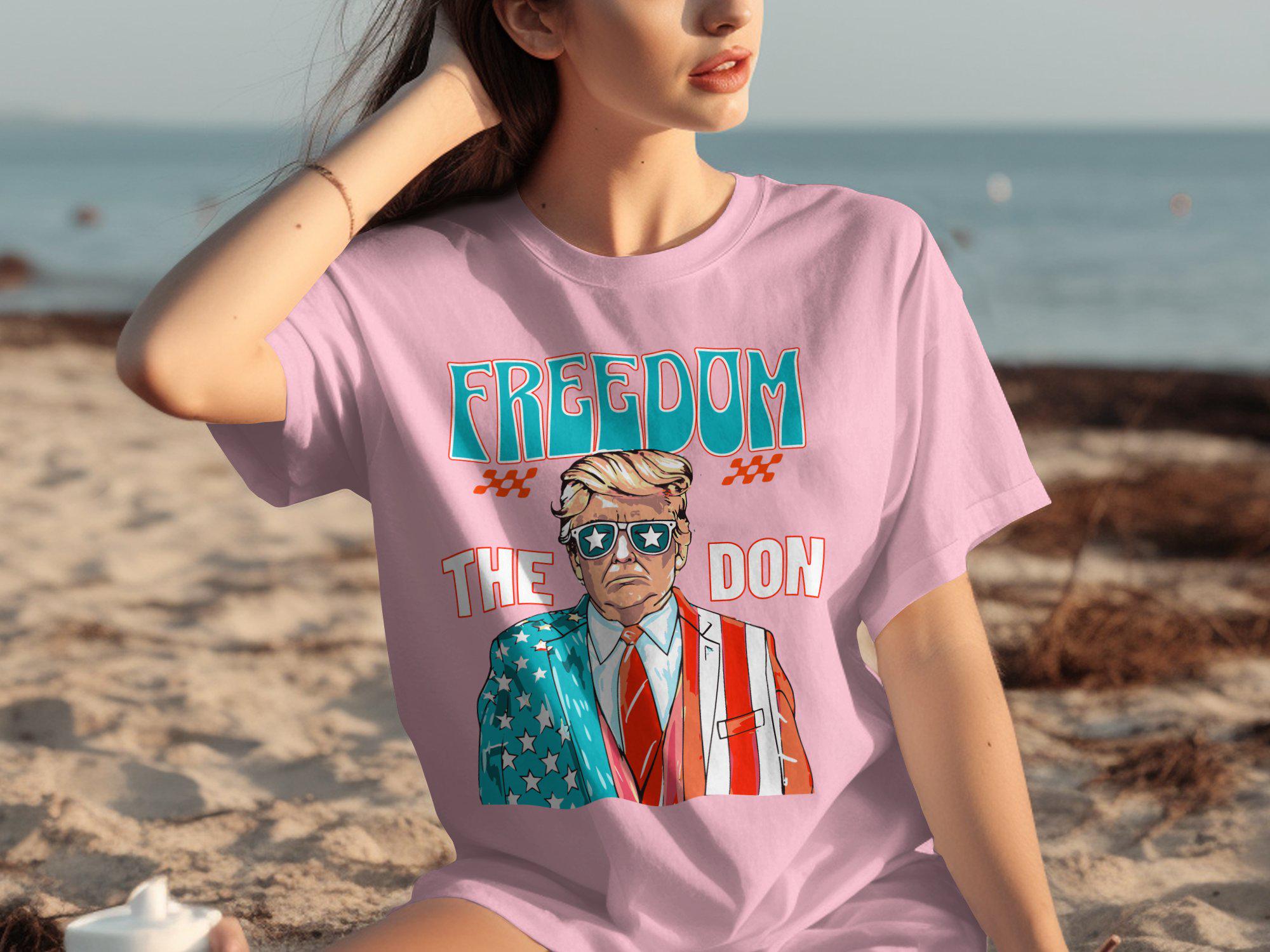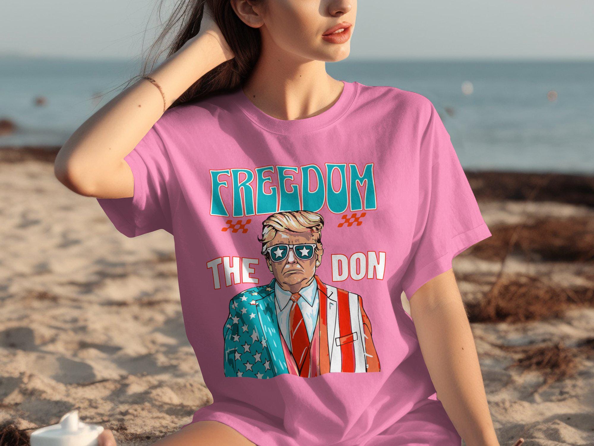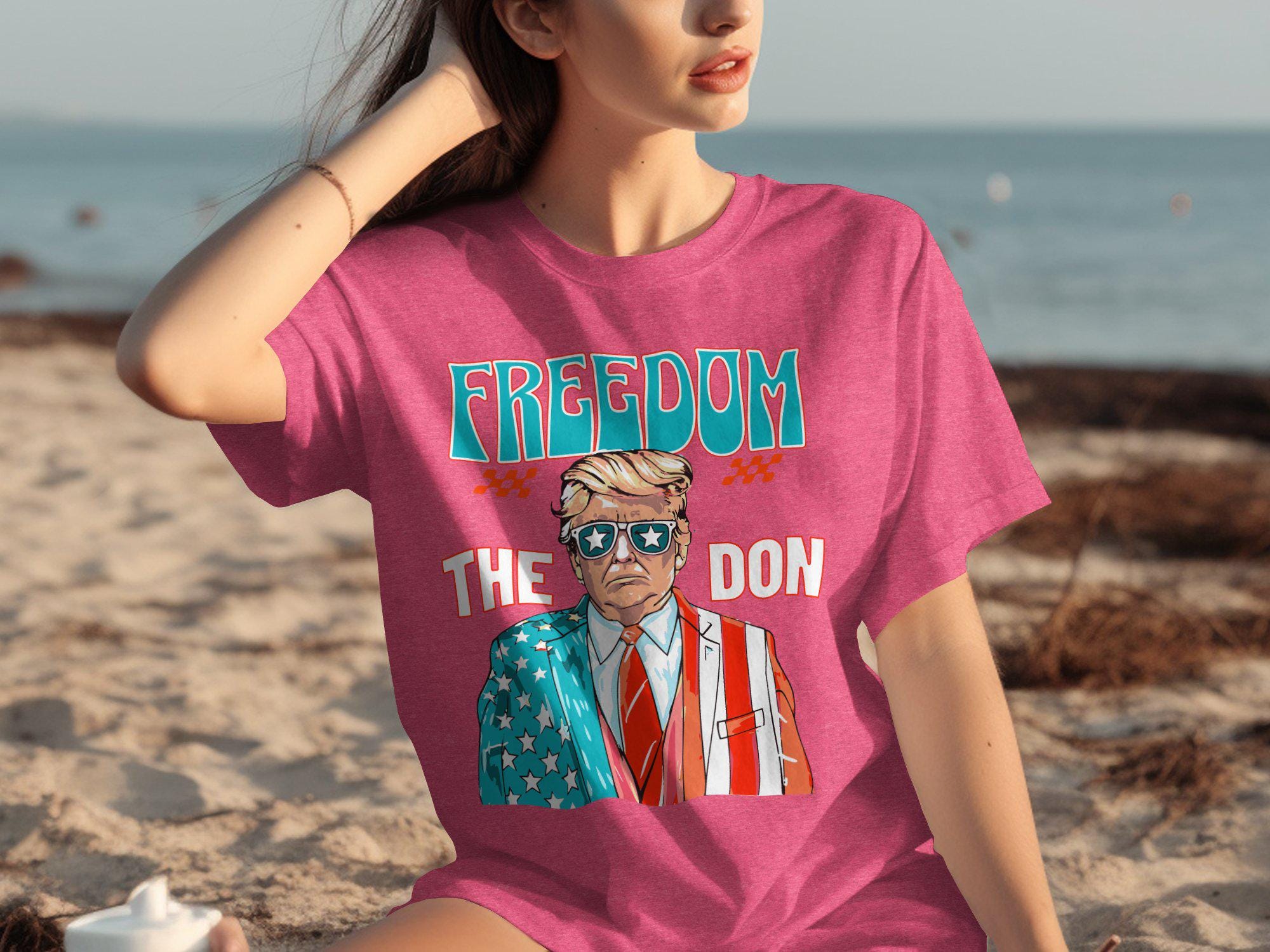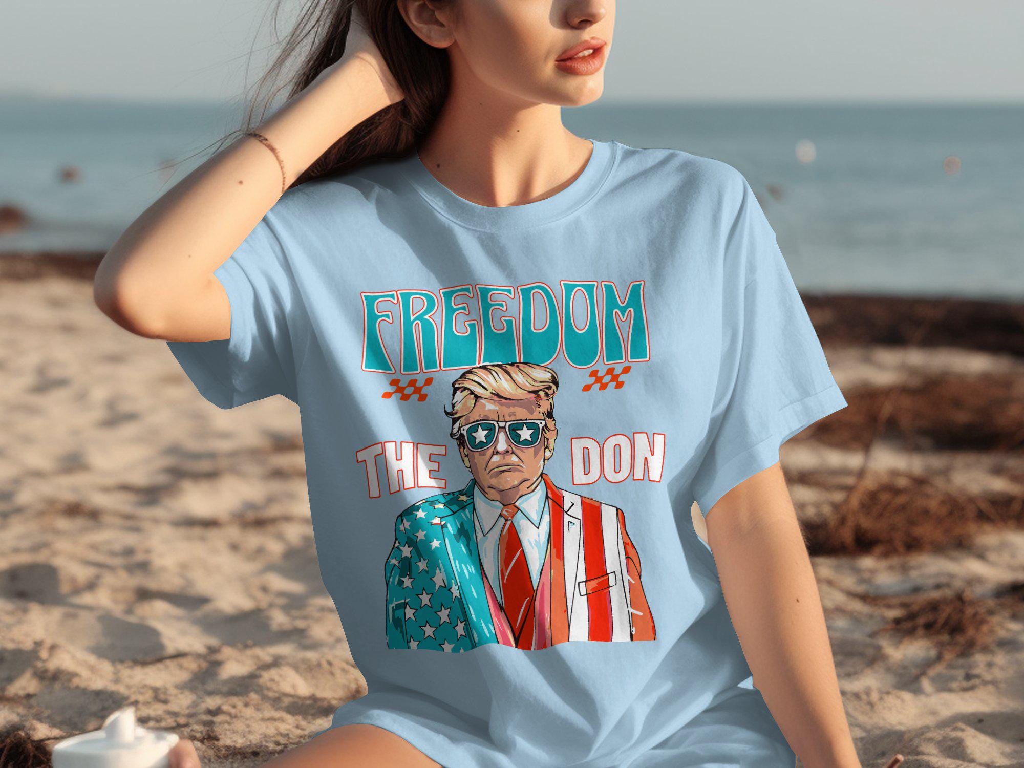 Celebrate your patriotism and support for Trump's 2024 campaign with this bold and stylish "Freedom The Don" shirt. Perfect for rallies, casual wear, or as a statement piece, this shirt features a vibrant design with Trump in patriotic colors. Stand out and express your political views with confidence!