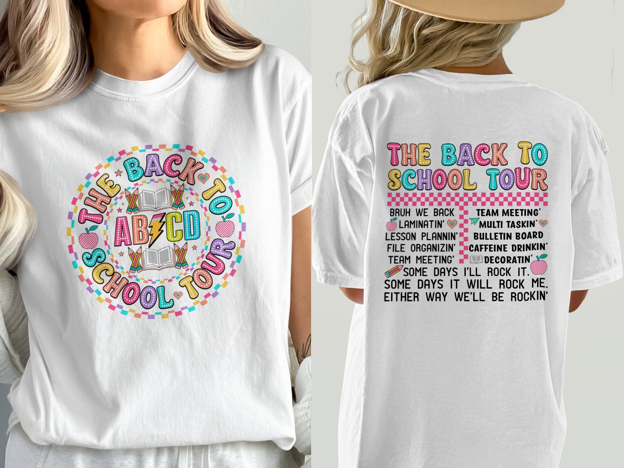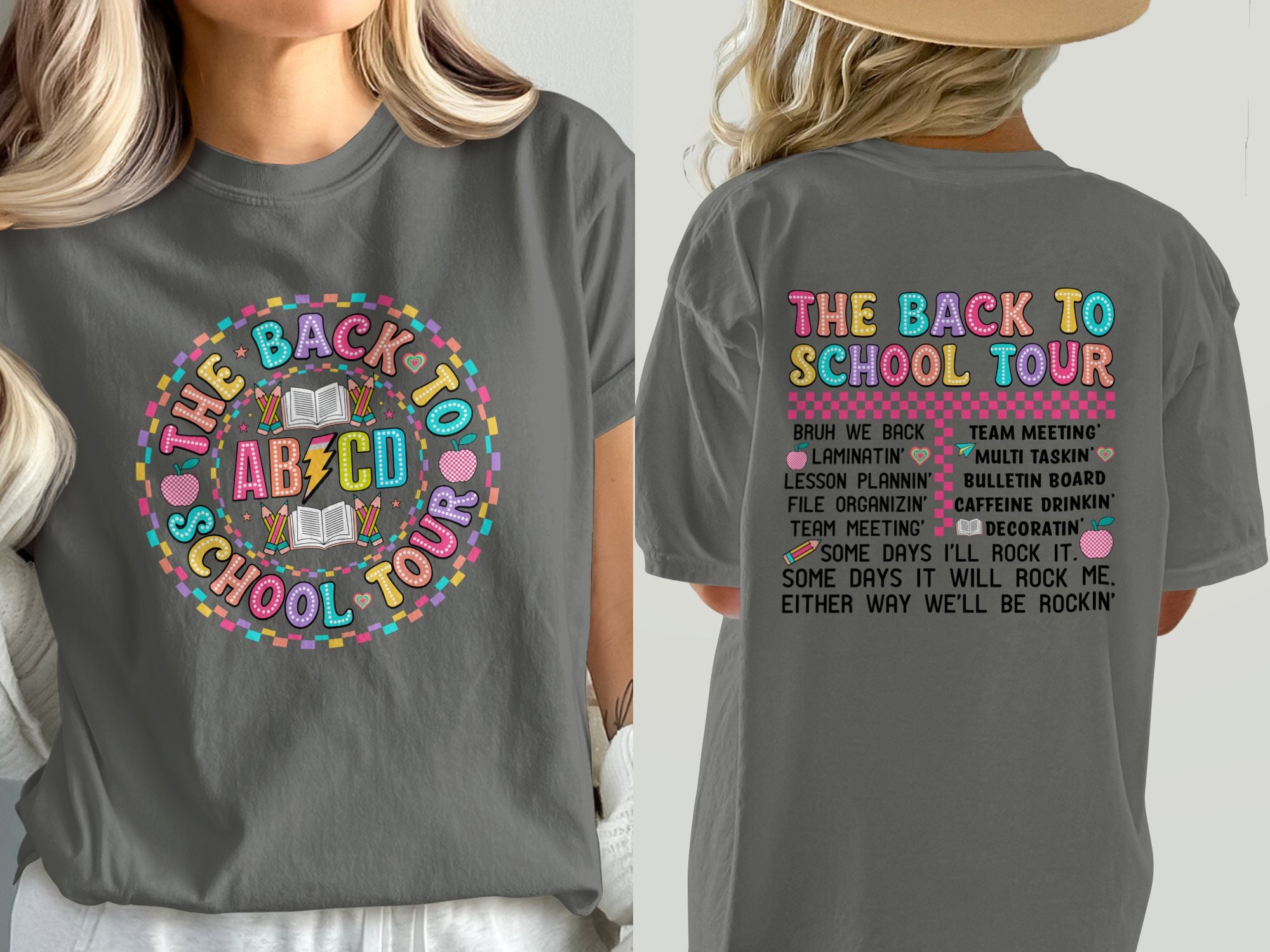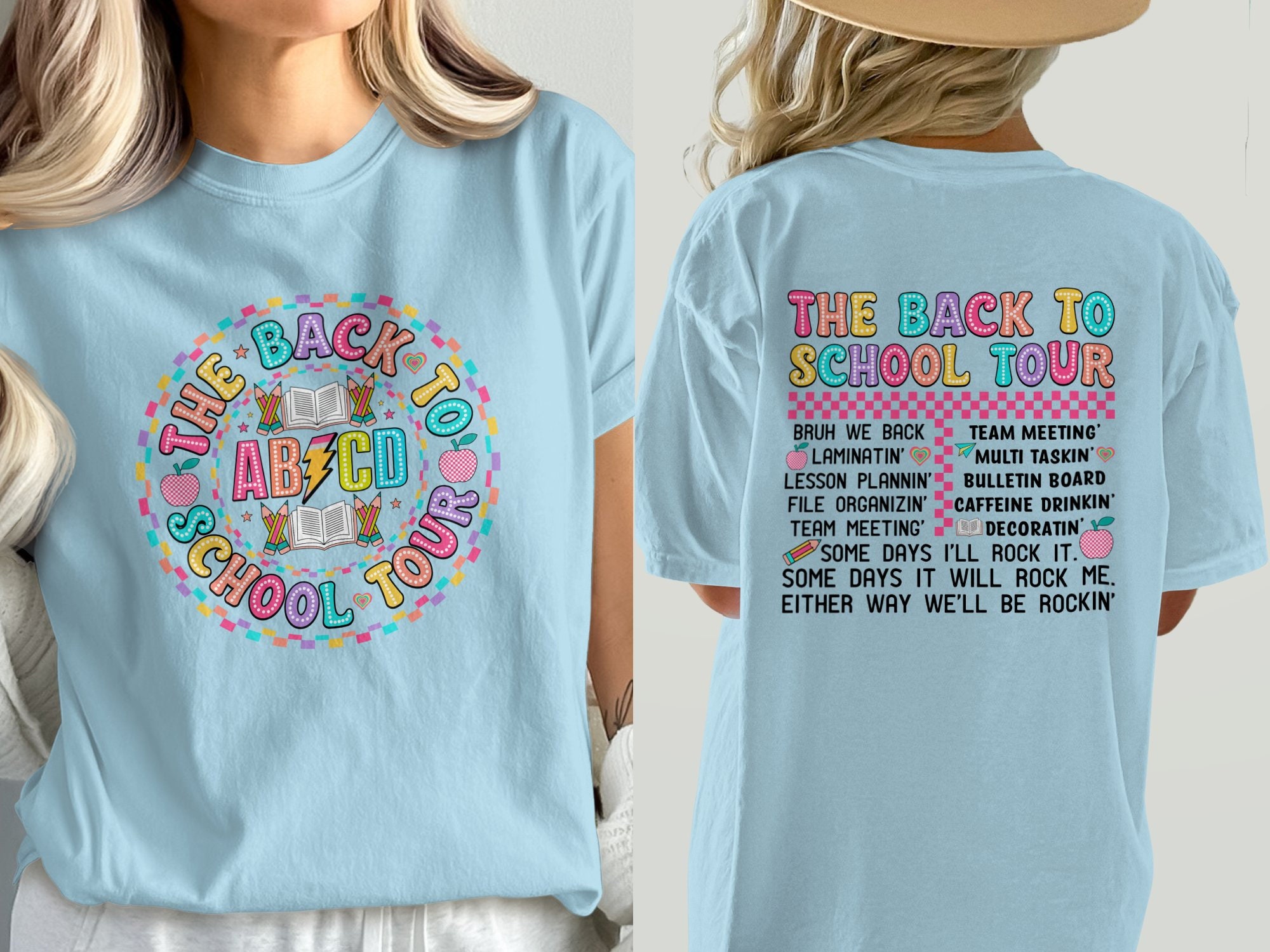 Get ready for school with this vibrant "Back to School Tour" T-Shirt! Perfect for teachers, students, and anyone excited about learning, this fun and colorful graphic tee features playful phrases that celebrate teamwork and creativity. Made with high-quality materials, it’s comfortable and stylish for any school event or casual outing. Whether you’re laminating, lesson planning, or preparing for a team meeting, this shirt brings a spark of joy to your daily routine. Available in various sizes and colors, it's an ideal gift for back-to-school season or for your favorite educator!