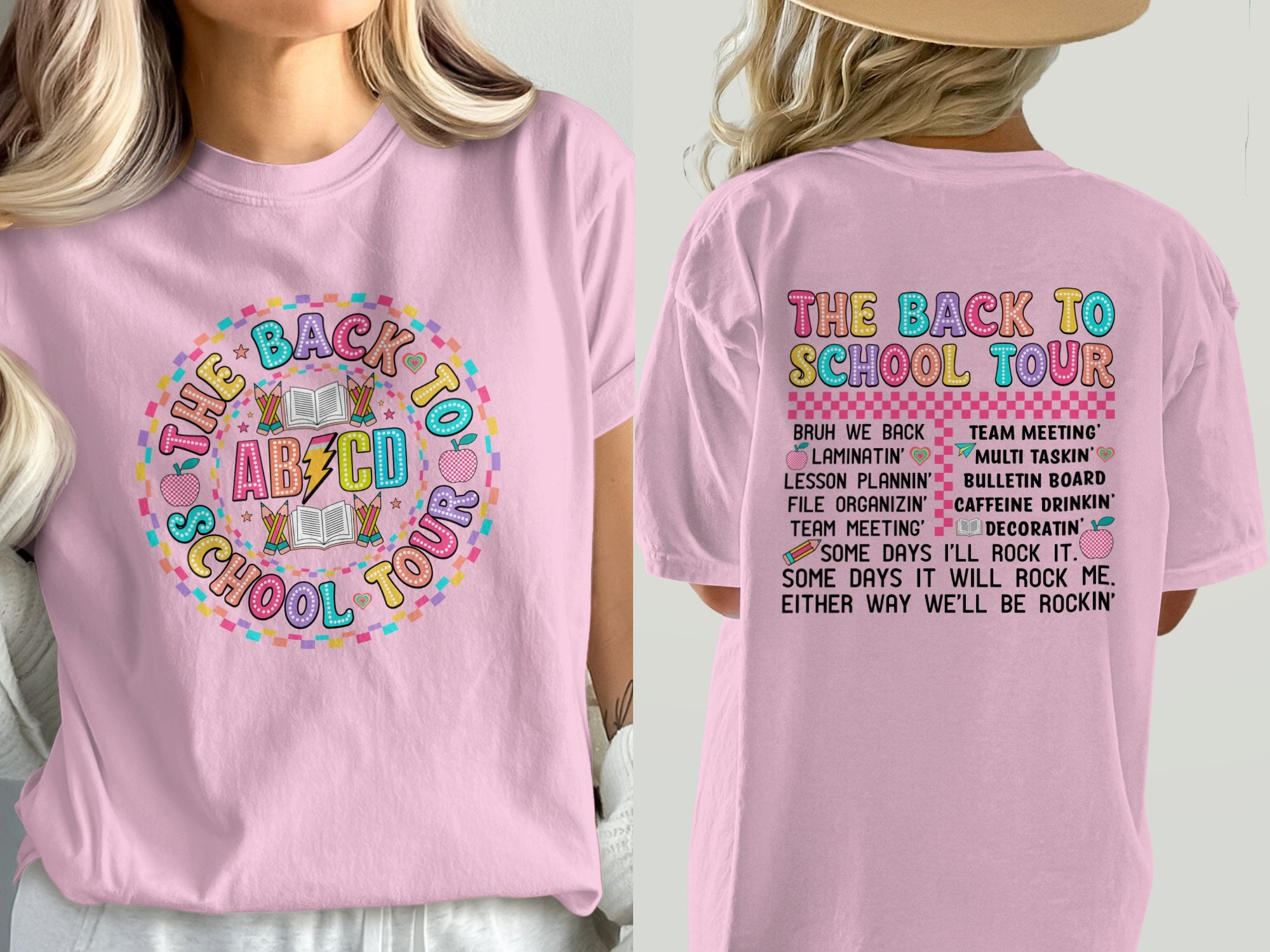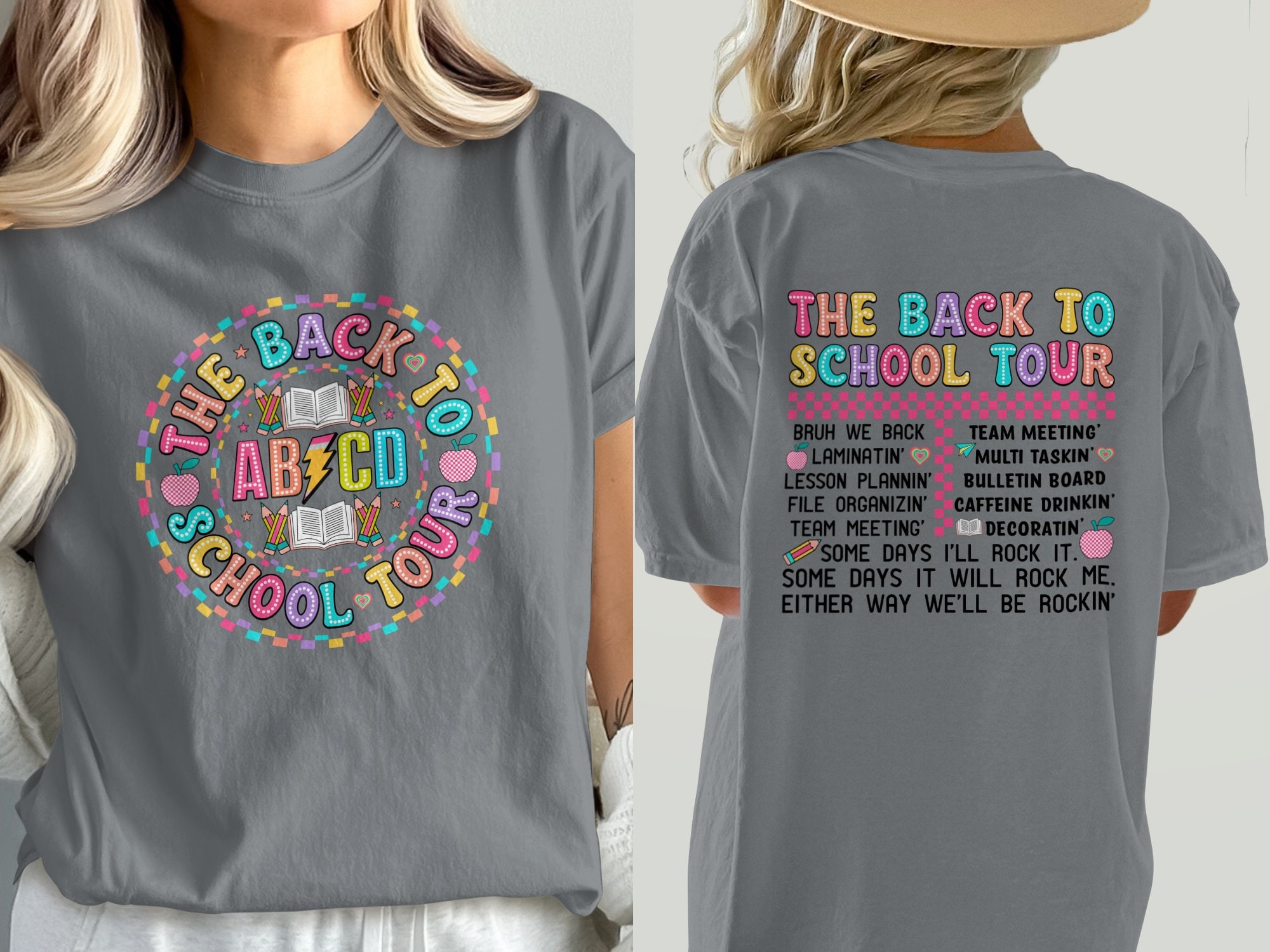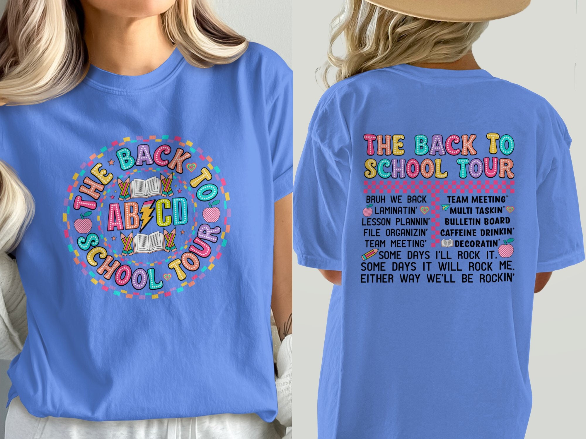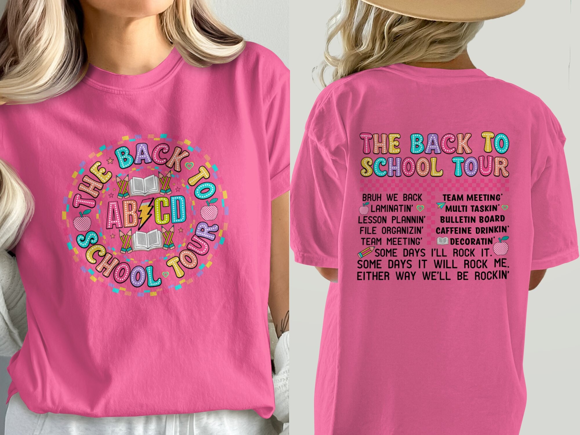 Get ready for school with this vibrant "Back to School Tour" T-Shirt! Perfect for teachers, students, and anyone excited about learning, this fun and colorful graphic tee features playful phrases that celebrate teamwork and creativity. Made with high-quality materials, it’s comfortable and stylish for any school event or casual outing. Whether you’re laminating, lesson planning, or preparing for a team meeting, this shirt brings a spark of joy to your daily routine. Available in various sizes and colors, it's an ideal gift for back-to-school season or for your favorite educator!