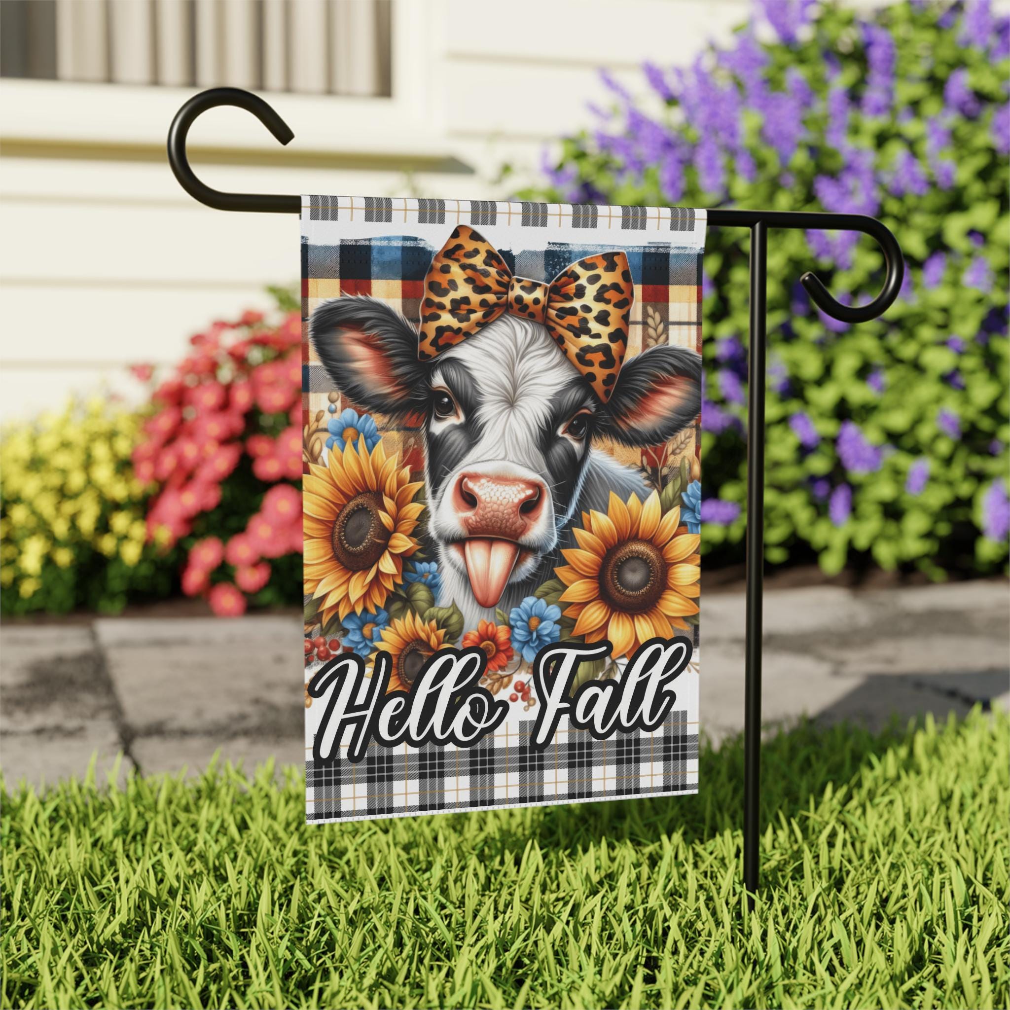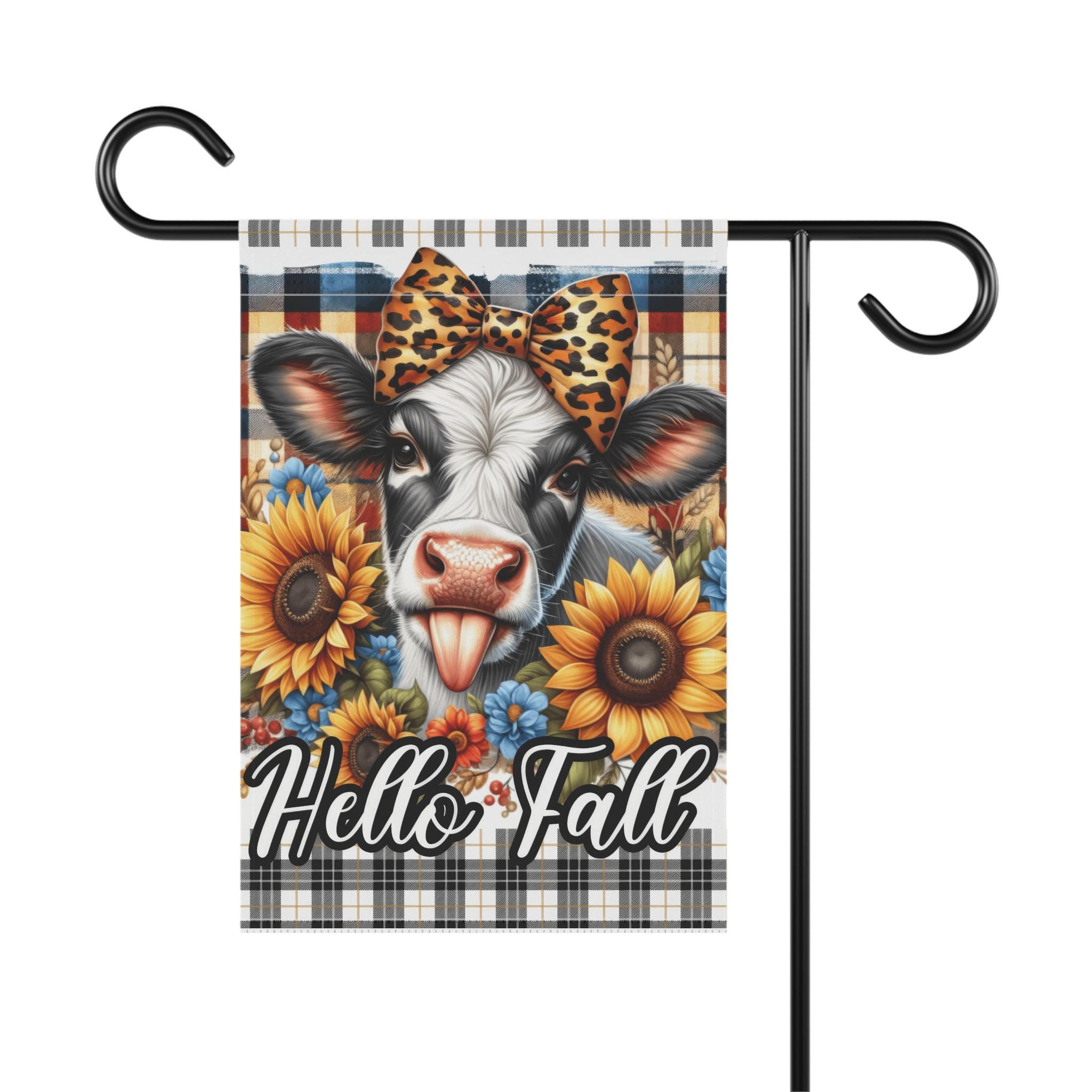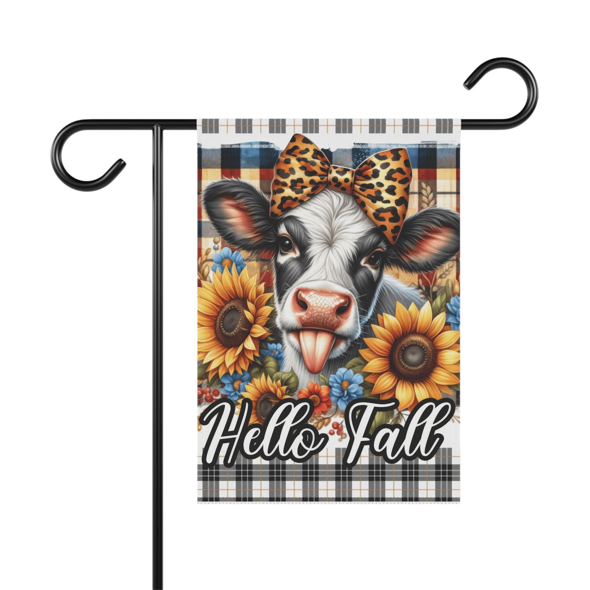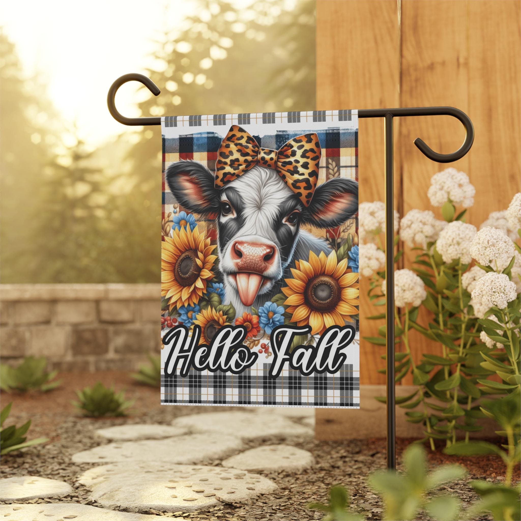 Adorable Fall Cow & Sunflowers Garden Flag , Autumn Farmhouse Outdoor Decor, Fall Cow Garden & House Banner, Rustic Fall Decor Gift