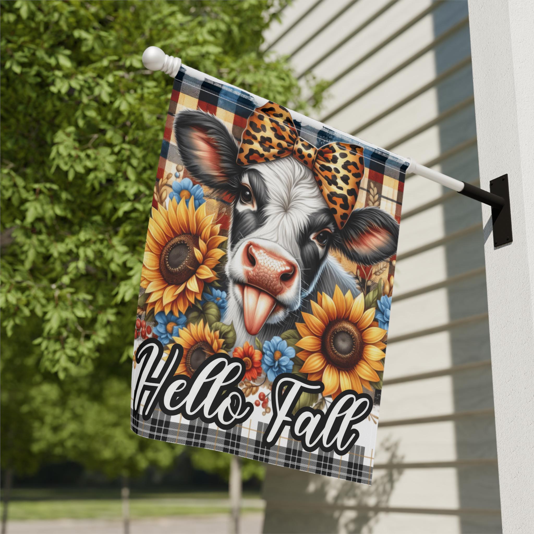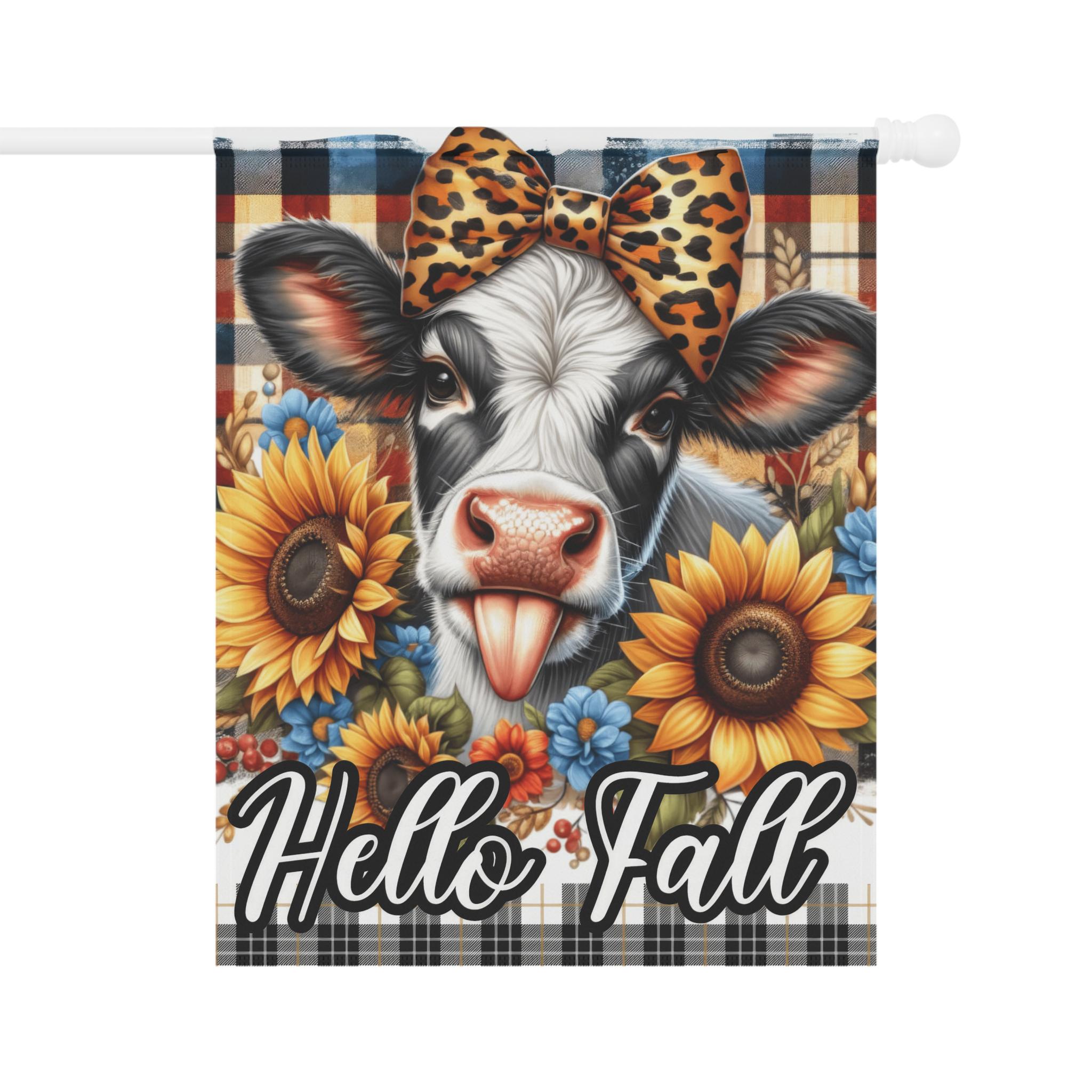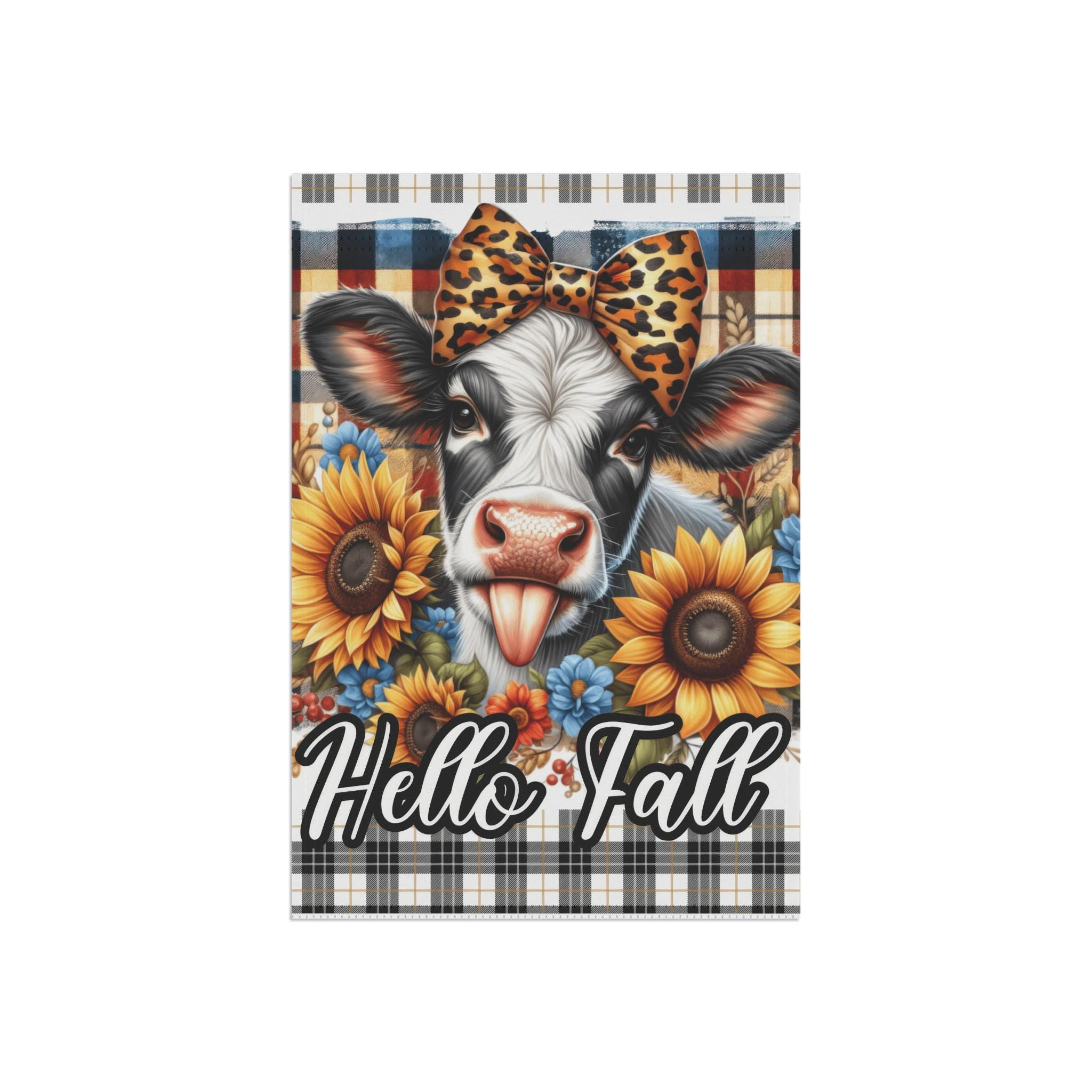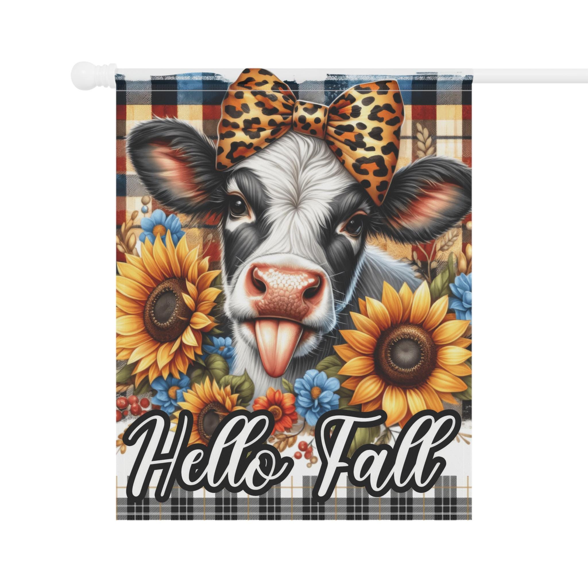 Adorable Fall Cow & Sunflowers Garden Flag , Autumn Farmhouse Outdoor Decor, Fall Cow Garden & House Banner, Rustic Fall Decor Gift