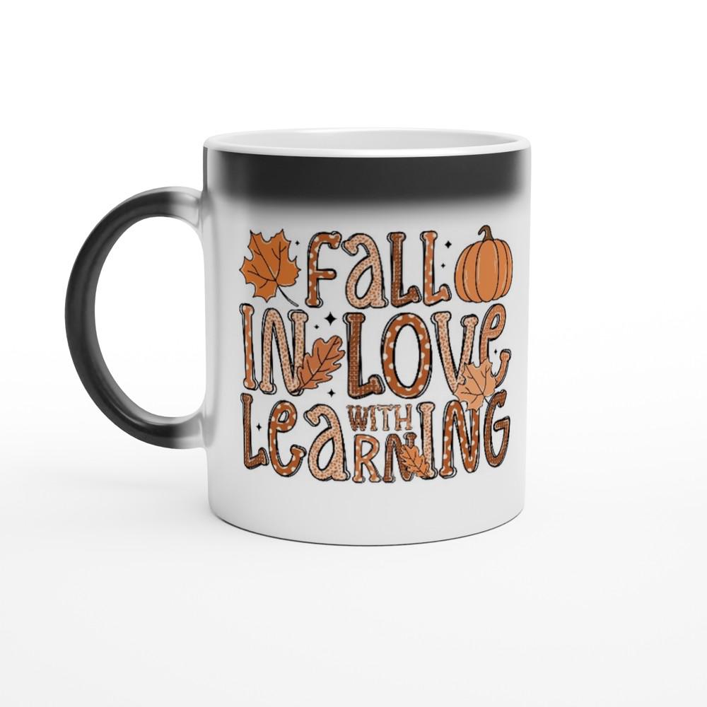 This mug has a black glossy finish when it's empty. When a hot beverage is added, the mug reveals your beautiful artwork.