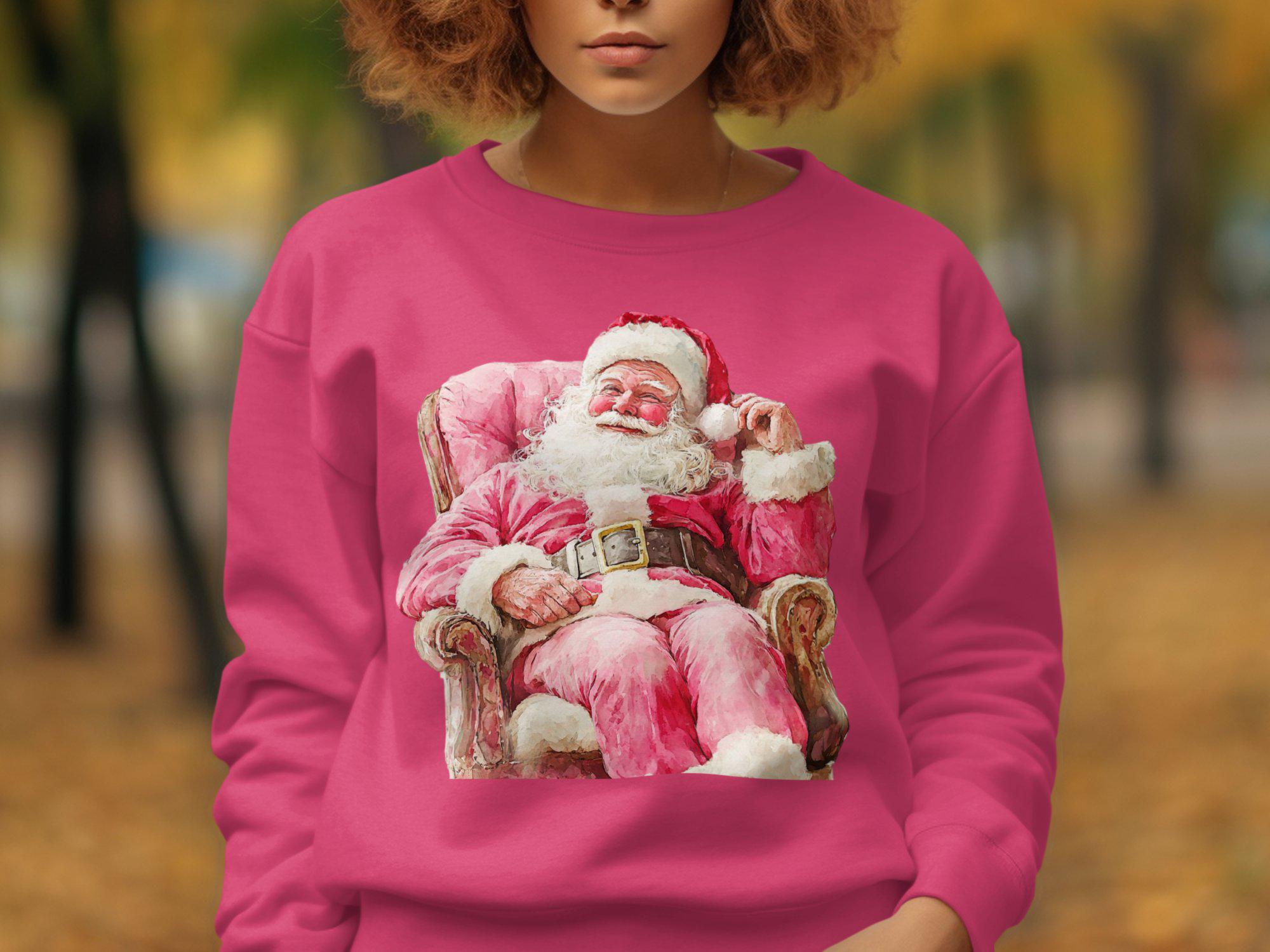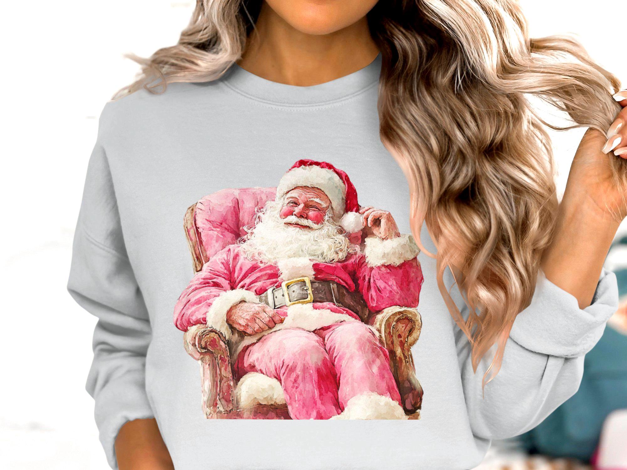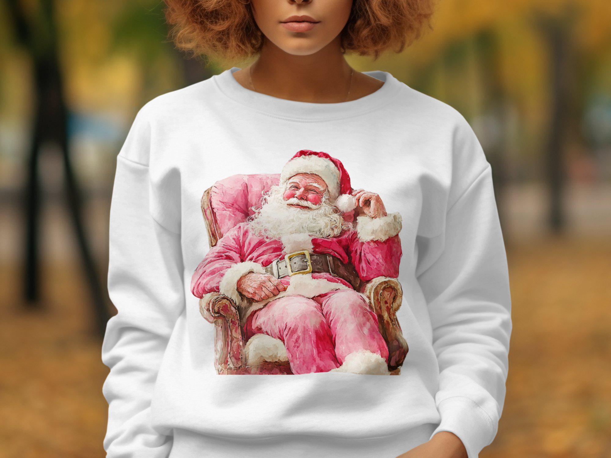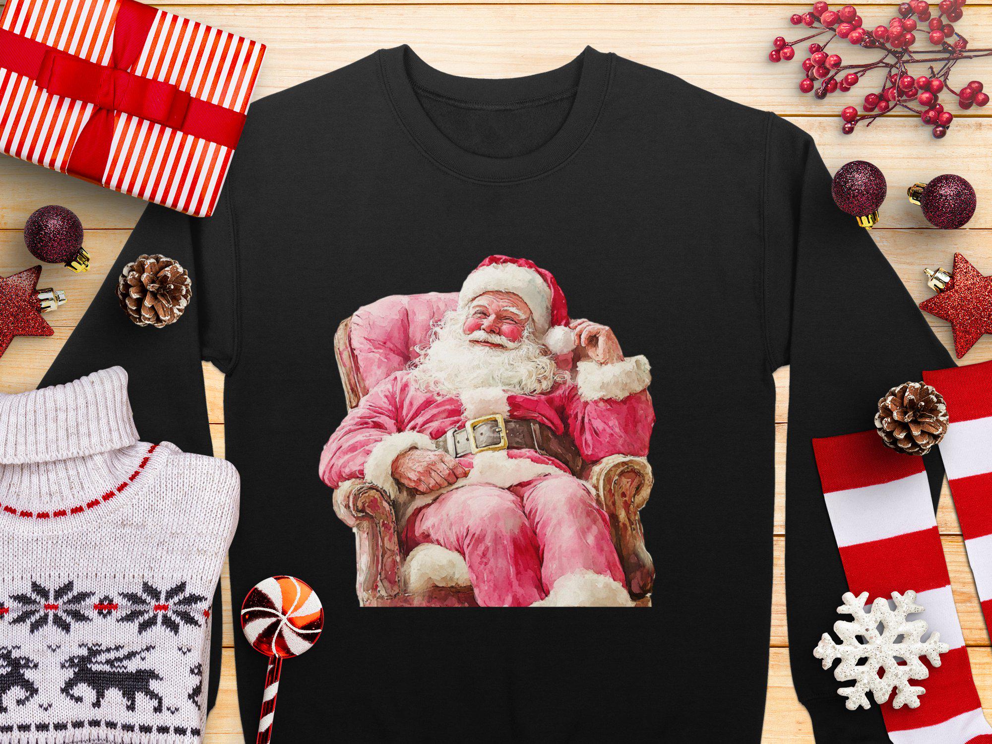 Celebrate the holiday season with this charming Santa Claus Christmas Sweatshirt. Featuring a festive design of Santa sitting on a cozy chair, this sweatshirt is perfect for spreading holiday cheer. Whether you're attending a Christmas party or just enjoying the winter festivities, this cozy piece of clothing will keep you warm and stylish. Ideal for anyone who loves the magic of Christmas, this sweatshirt is a must-have addition to your holiday wardrobe. Get ready to embrace the season with this delightful Santa-themed apparel.