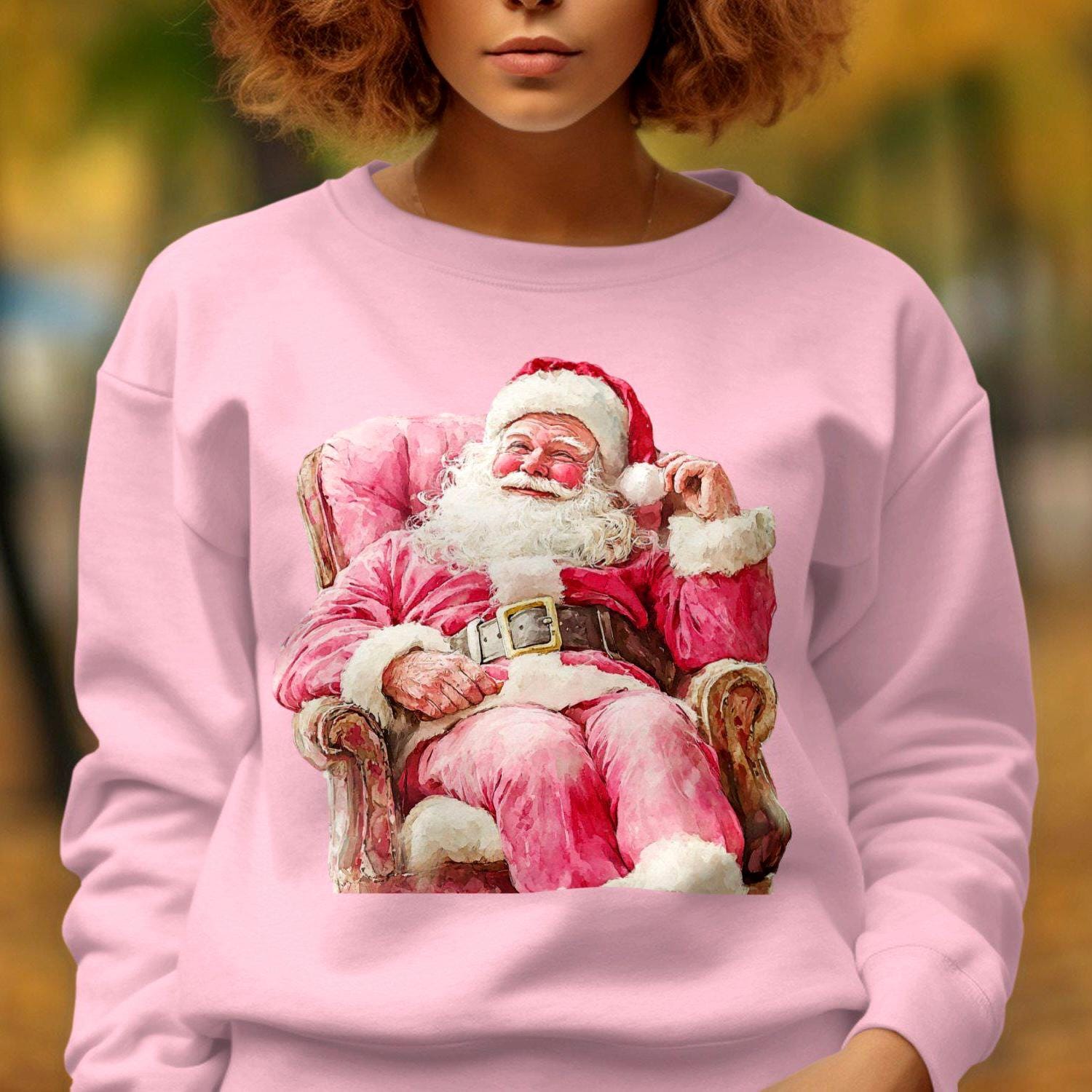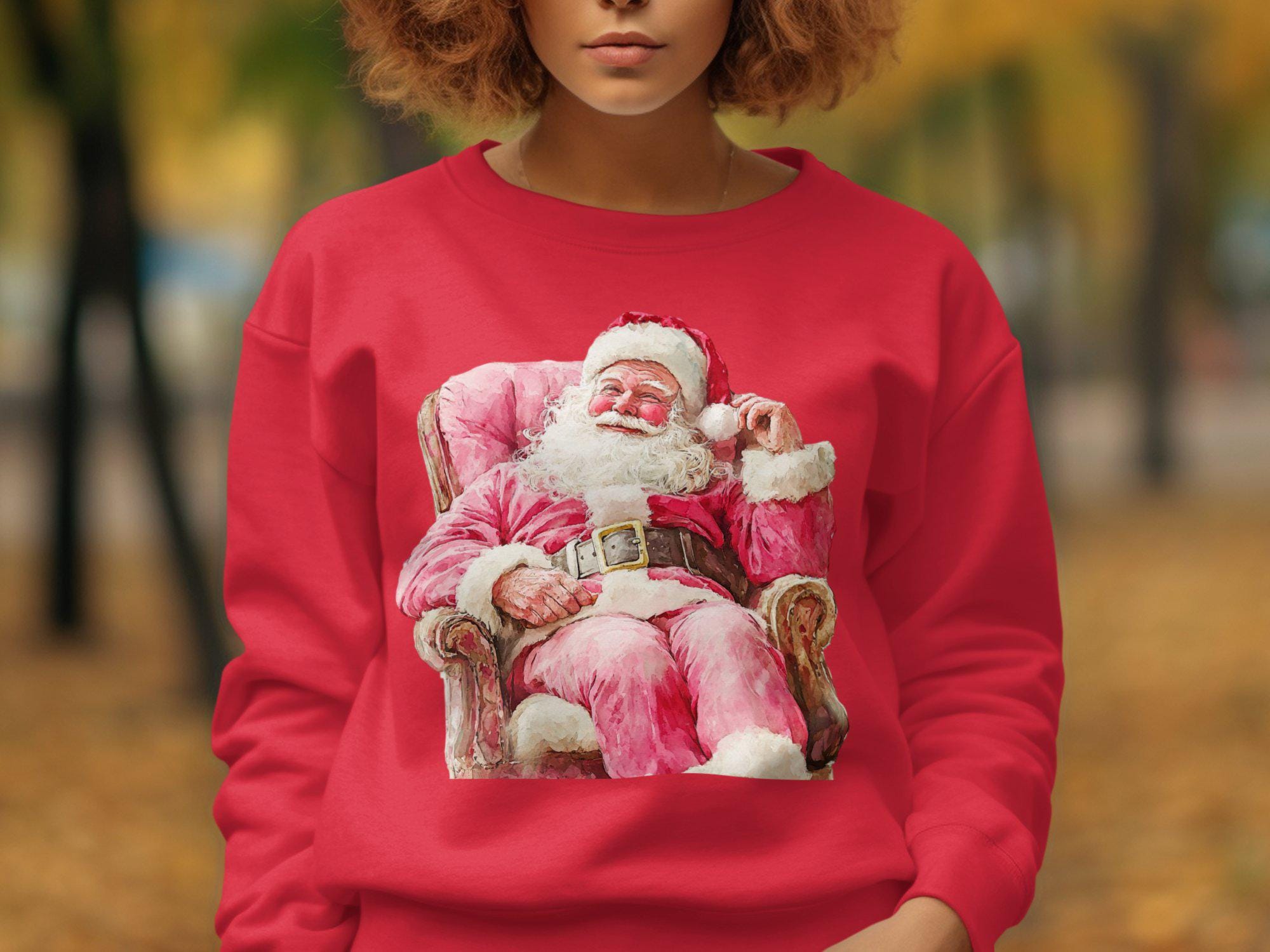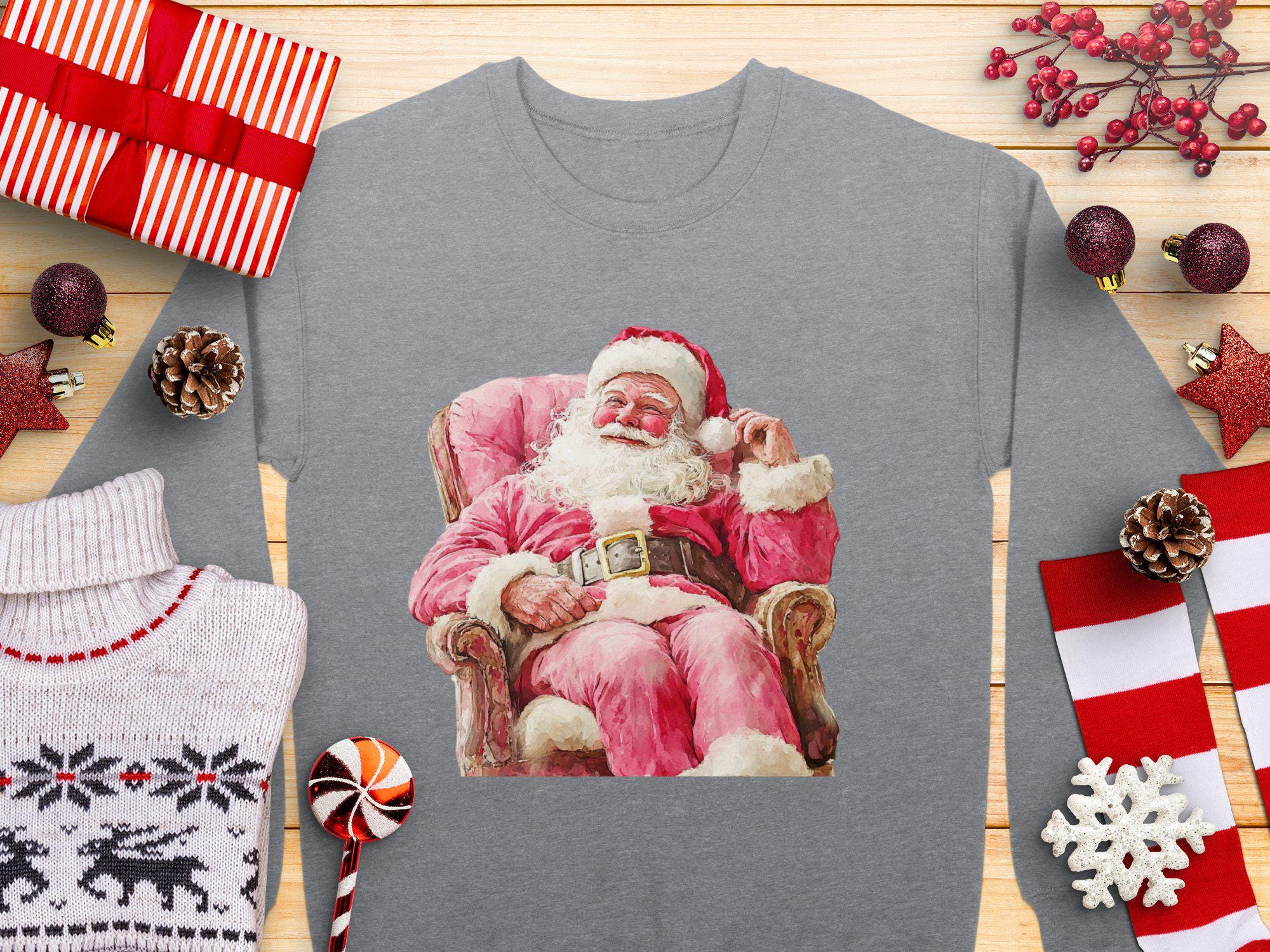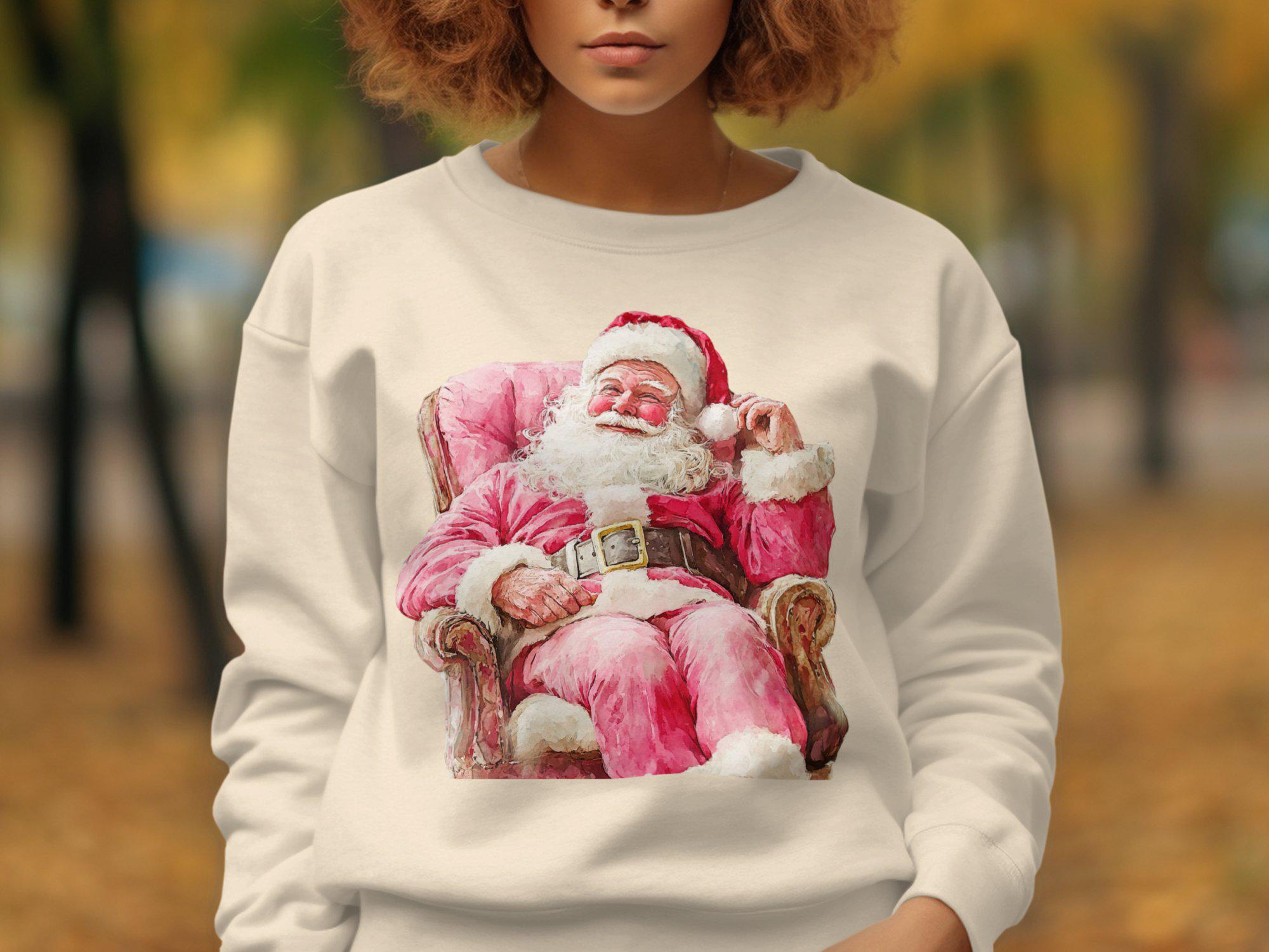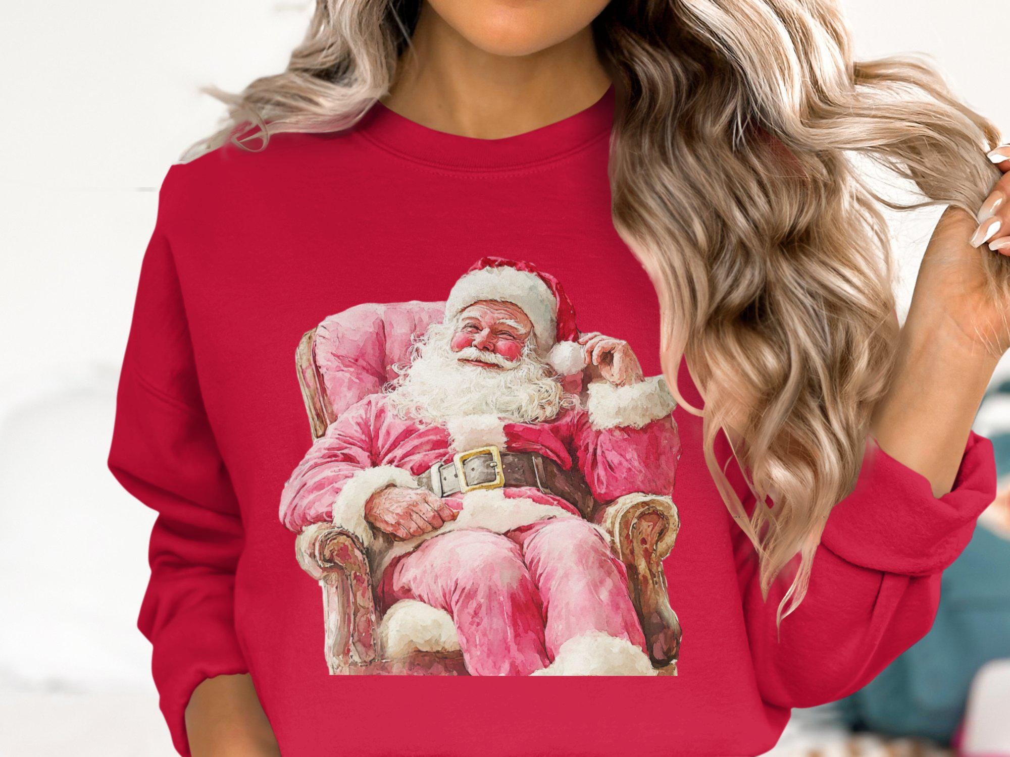 Celebrate the holiday season with this charming Santa Claus Christmas Sweatshirt. Featuring a festive design of Santa sitting on a cozy chair, this sweatshirt is perfect for spreading holiday cheer. Whether you're attending a Christmas party or just enjoying the winter festivities, this cozy piece of clothing will keep you warm and stylish. Ideal for anyone who loves the magic of Christmas, this sweatshirt is a must-have addition to your holiday wardrobe. Get ready to embrace the season with this delightful Santa-themed apparel.
