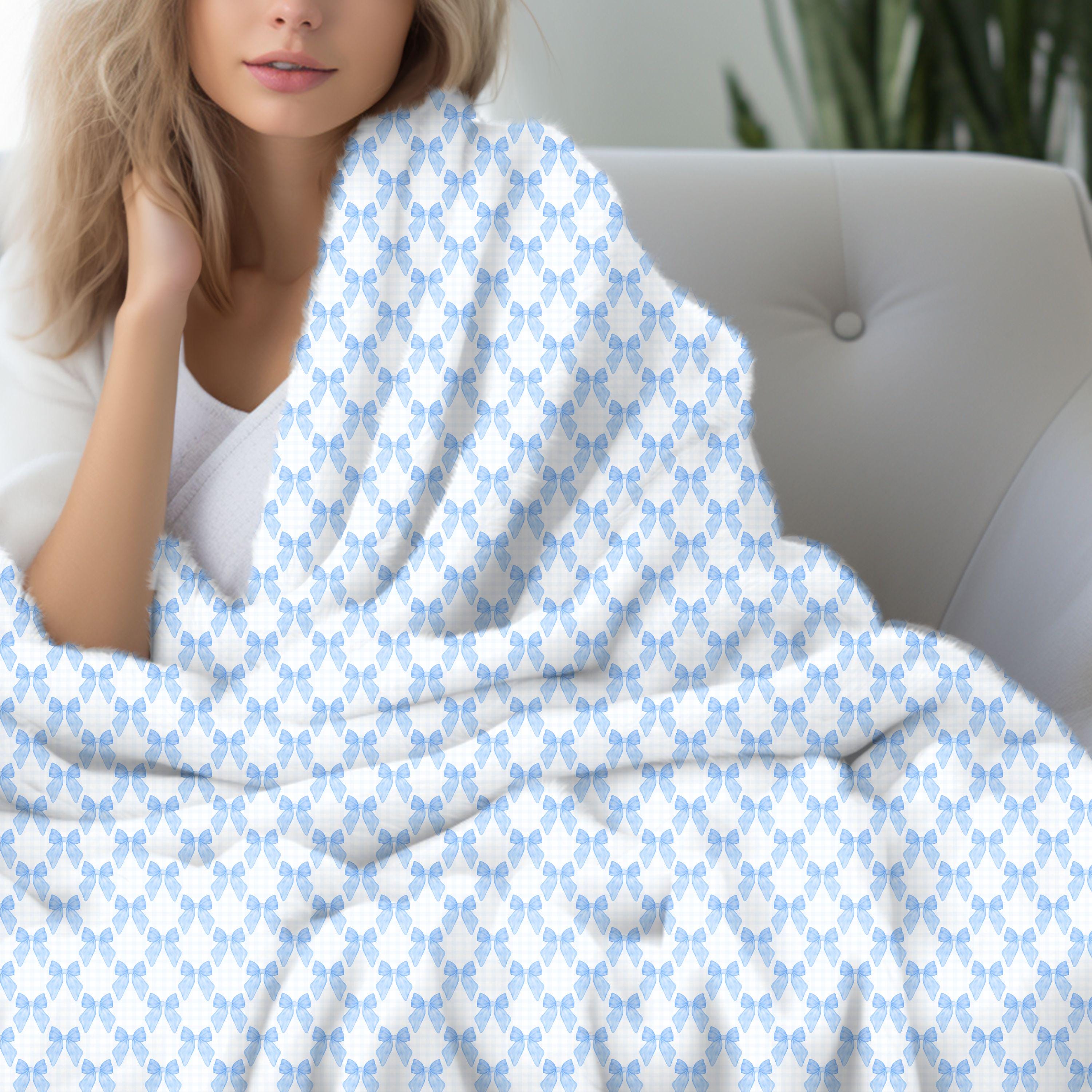 Coquette Blue Bow Blanket, Coquette Nursery Decor, Coquette Blanket for New Mom & Baby