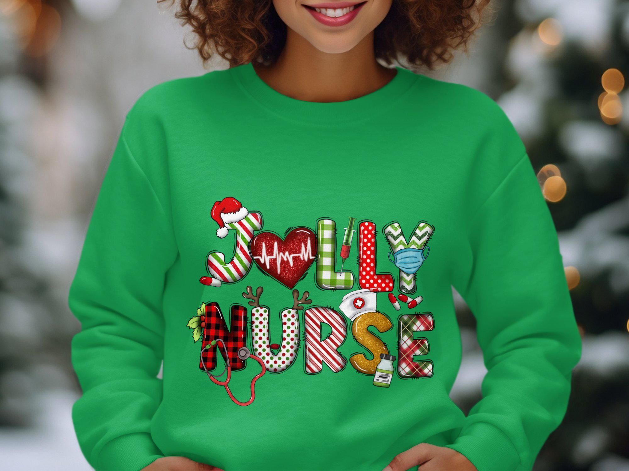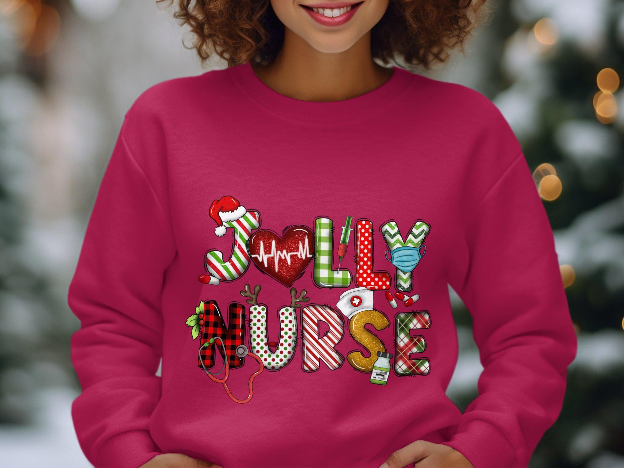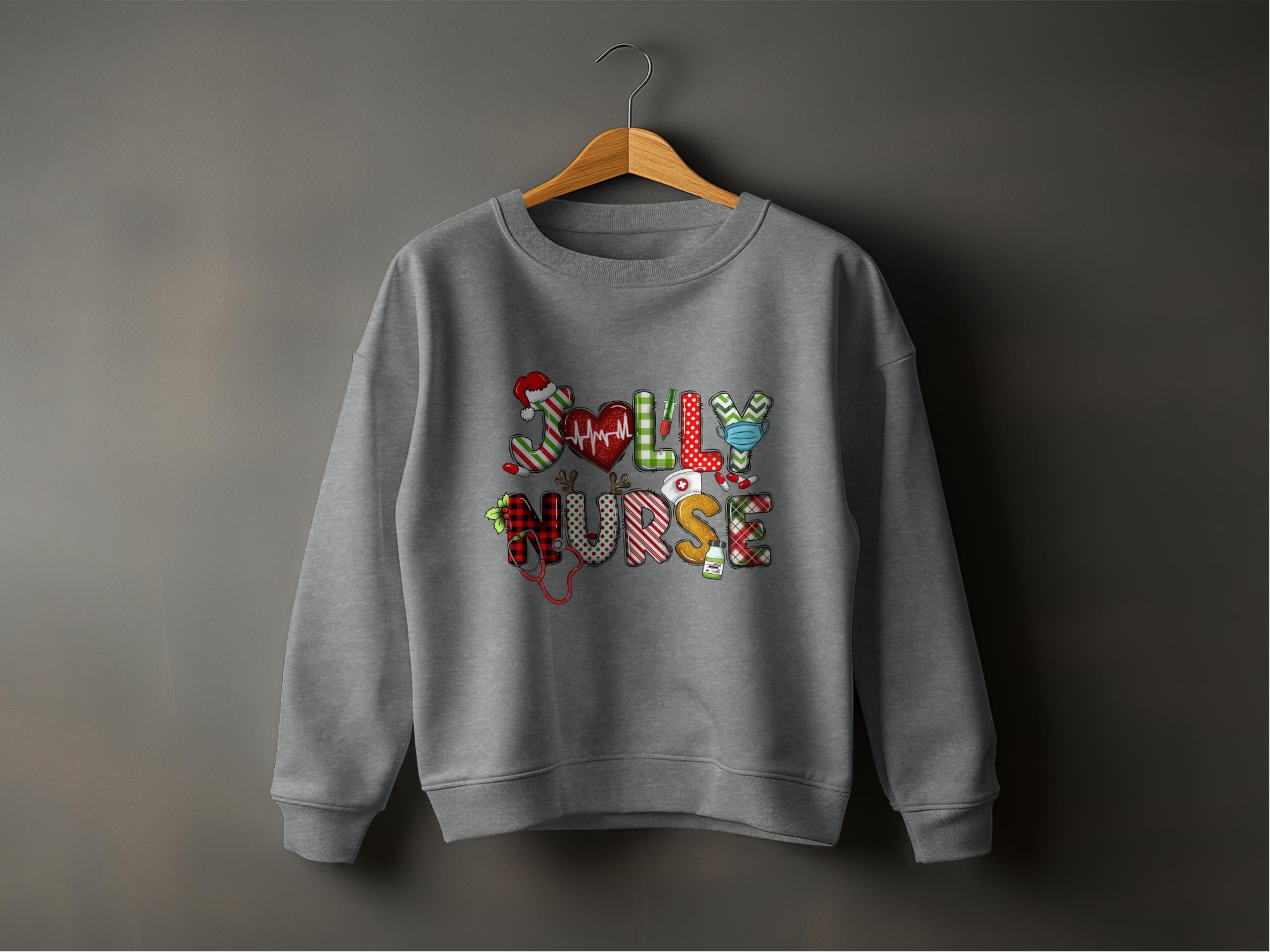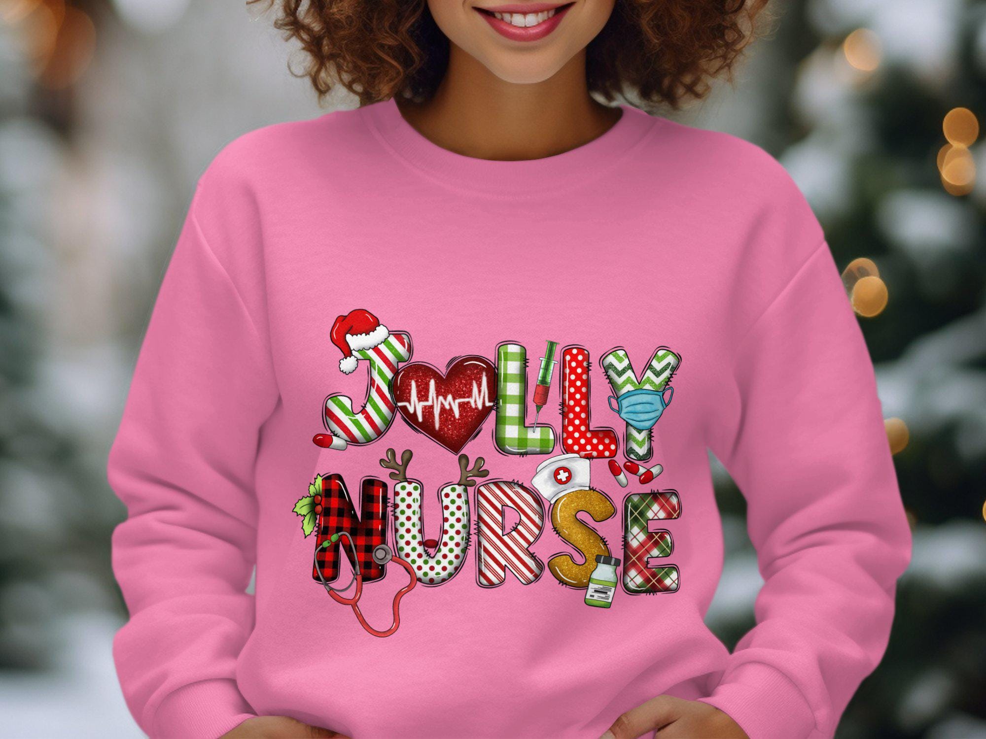 Celebrate the holidays with our Jolly Nurse Christmas Sweatshirt. This cozy and fun holiday sweatshirt makes a perfect gift for healthcare workers. Show your festive spirit and appreciation for nurses with this unique design. Ideal for adding some holiday cheer to your wardrobe or as a thoughtful gift for the nurses in your life. Perfect for winter wear and spreading festive joy.