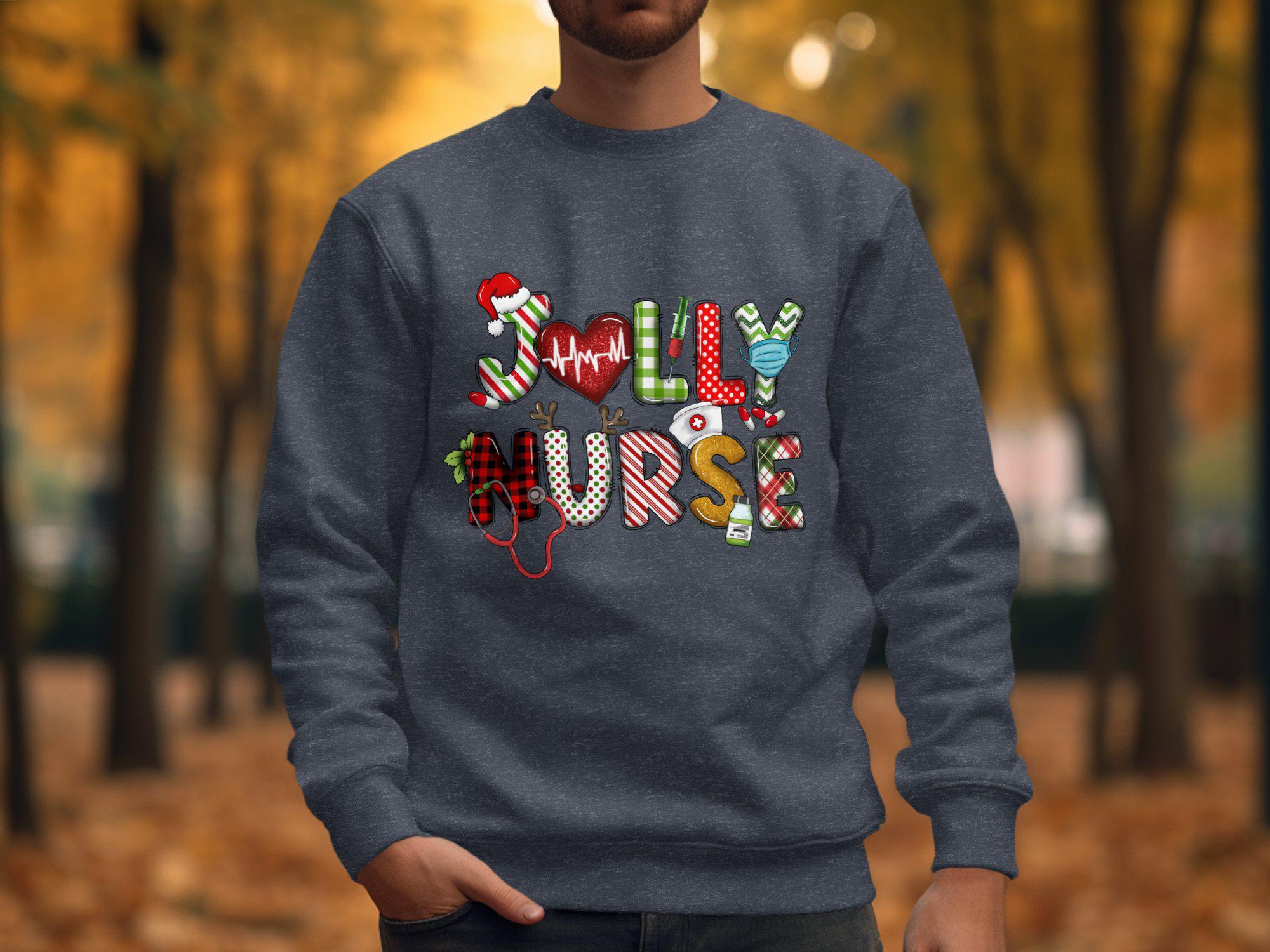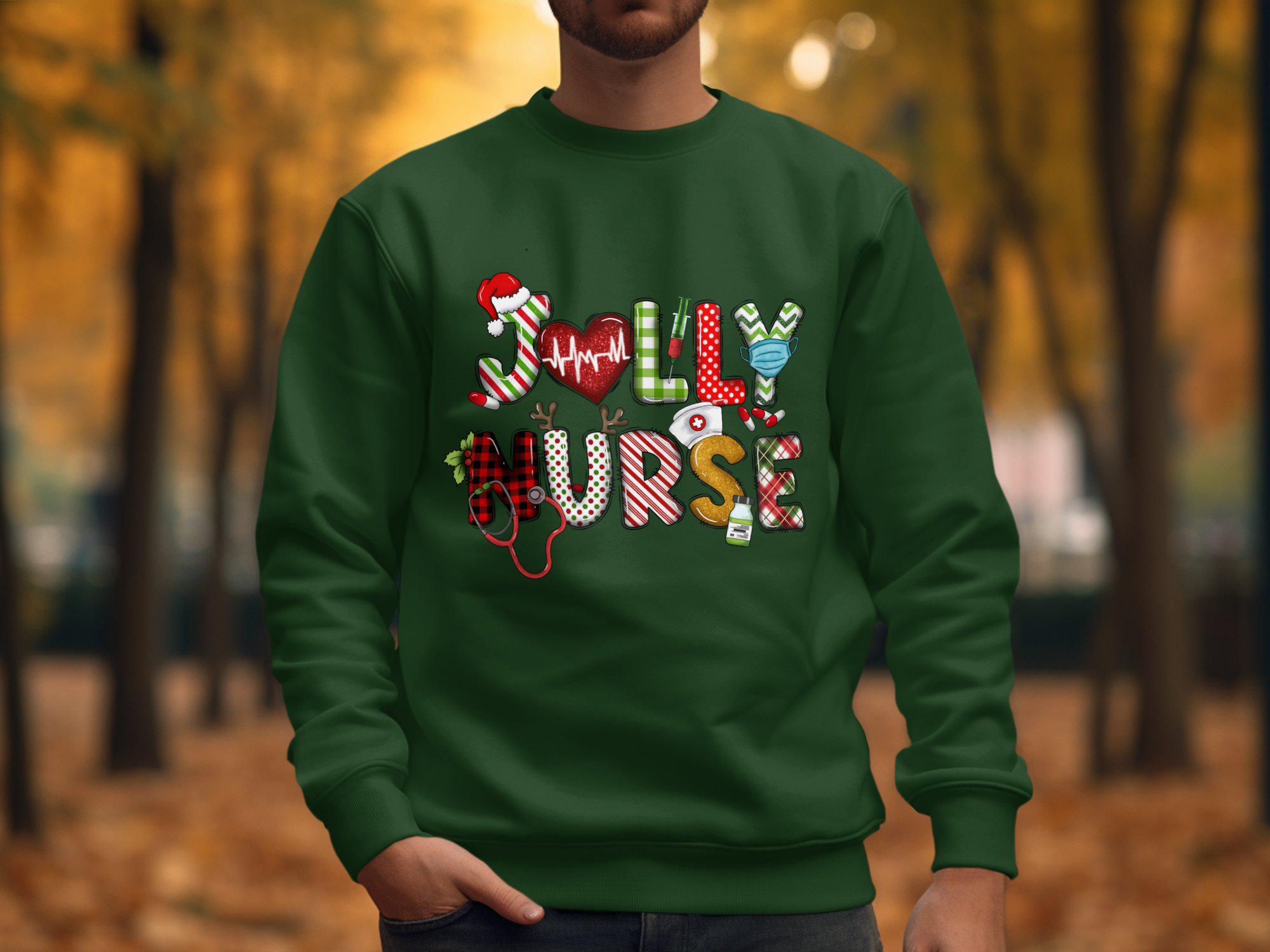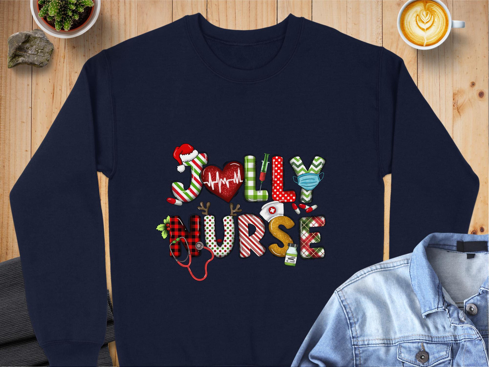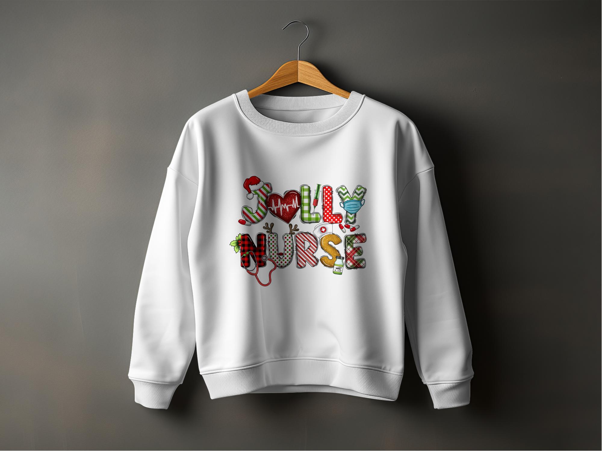 Celebrate the holidays with our Jolly Nurse Christmas Sweatshirt. This cozy and fun holiday sweatshirt makes a perfect gift for healthcare workers. Show your festive spirit and appreciation for nurses with this unique design. Ideal for adding some holiday cheer to your wardrobe or as a thoughtful gift for the nurses in your life. Perfect for winter wear and spreading festive joy.