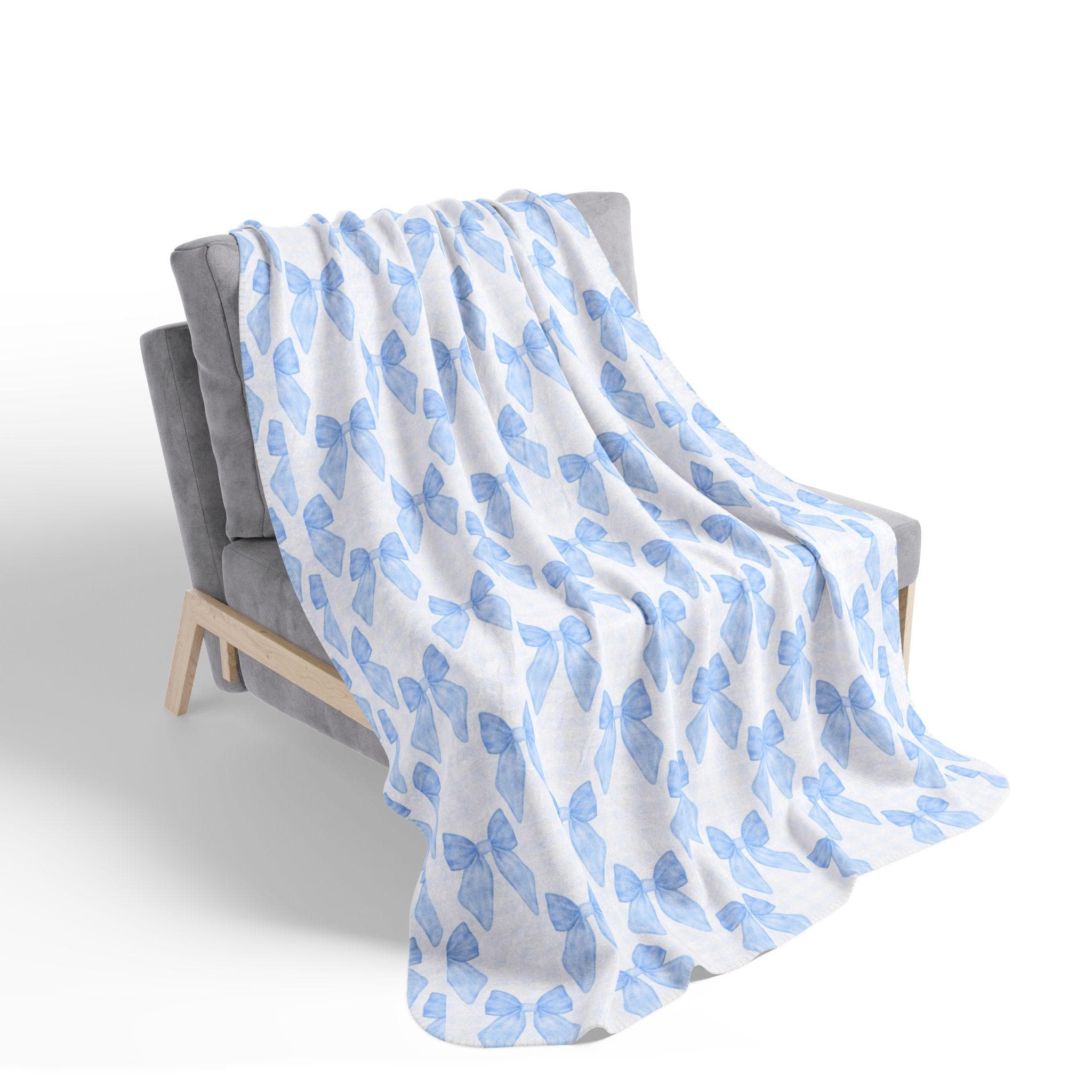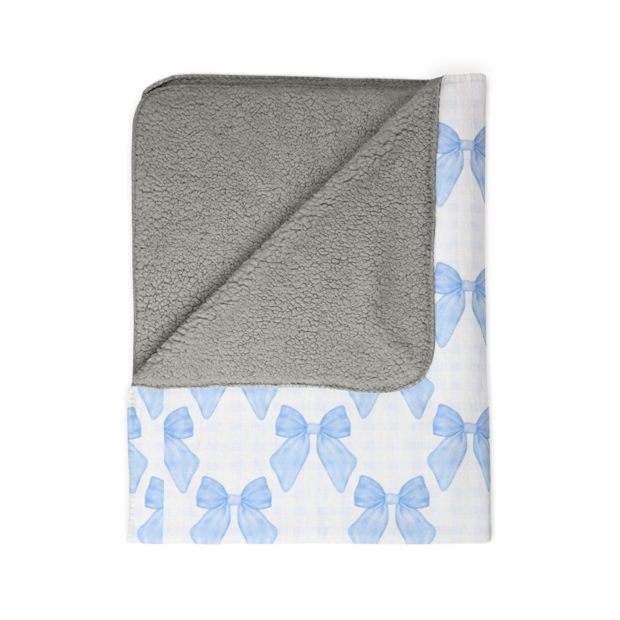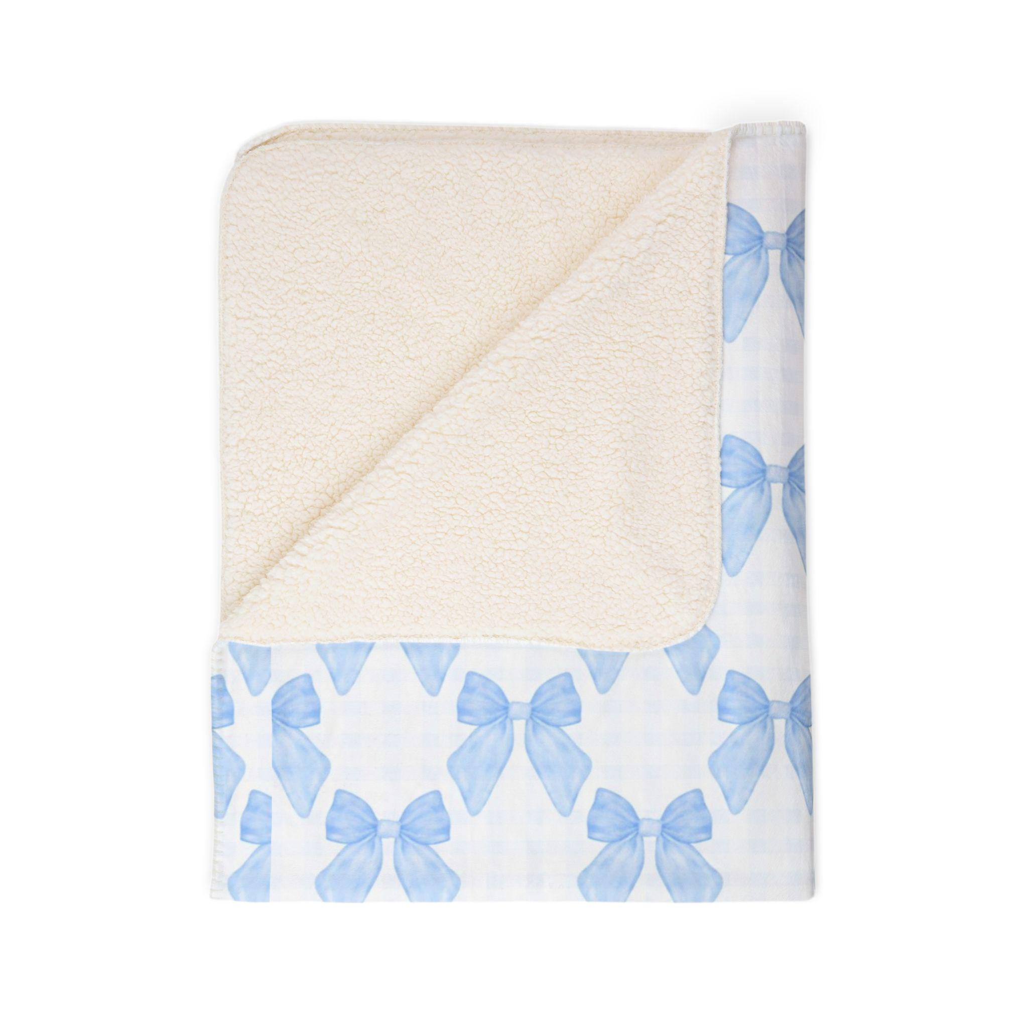 Crafted from 100% polyester, this soft and thick sherpa blanket is made for cozy moments. The hemmed edges enhance durability, while the playful gingham pattern with cute blue bows adds a pop of elegance. It’s a perfect gift for any occasion, from Valentine's Day to baby showers, and an ideal piece to elevate dorm room decor or cozy up your living space.