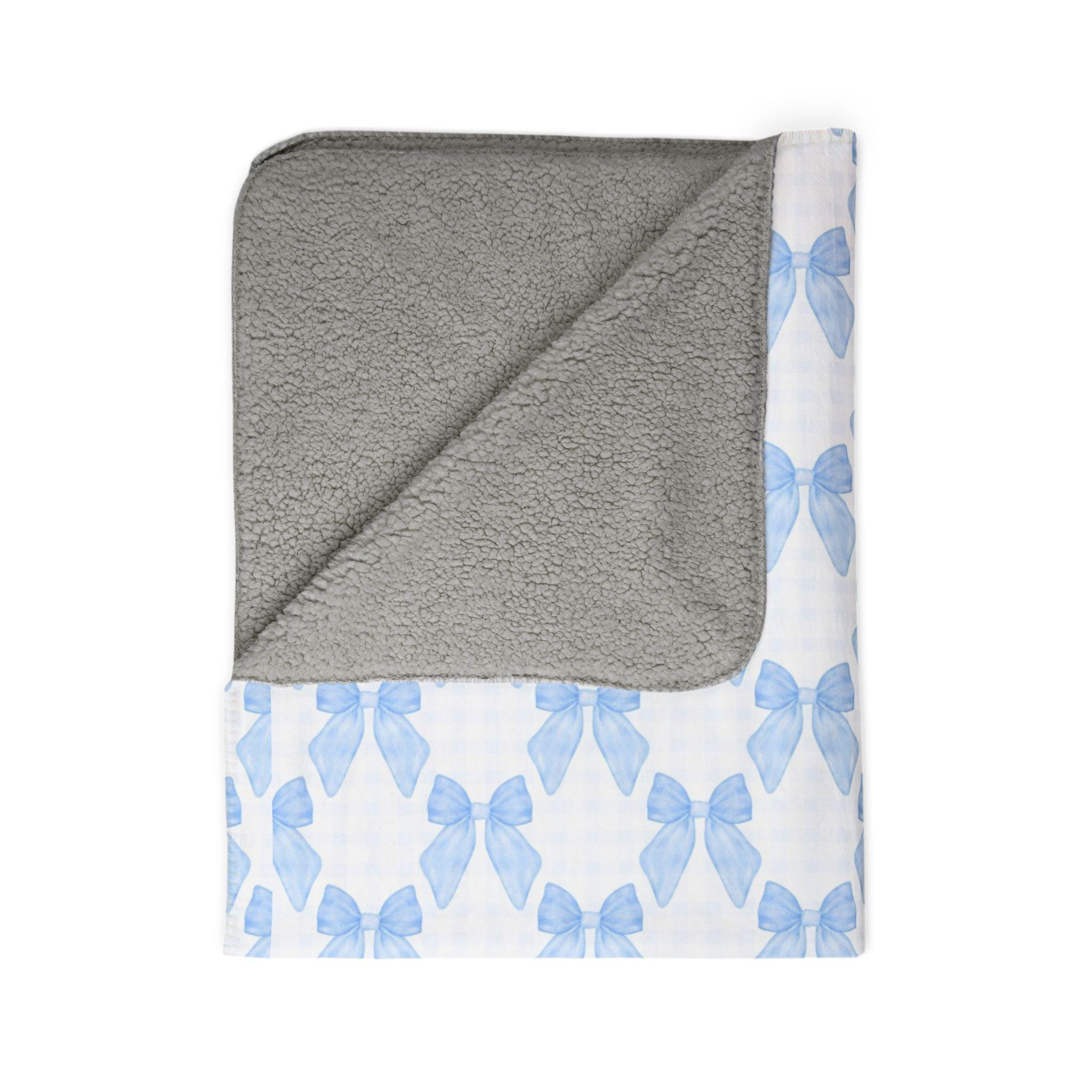 Custom Coquette Blue Bow and Gingham Plaid Blanket - Girly Girl Aesthetic Cozy Throw, Baby Shower Gift, Coquette Aesthetic Decor