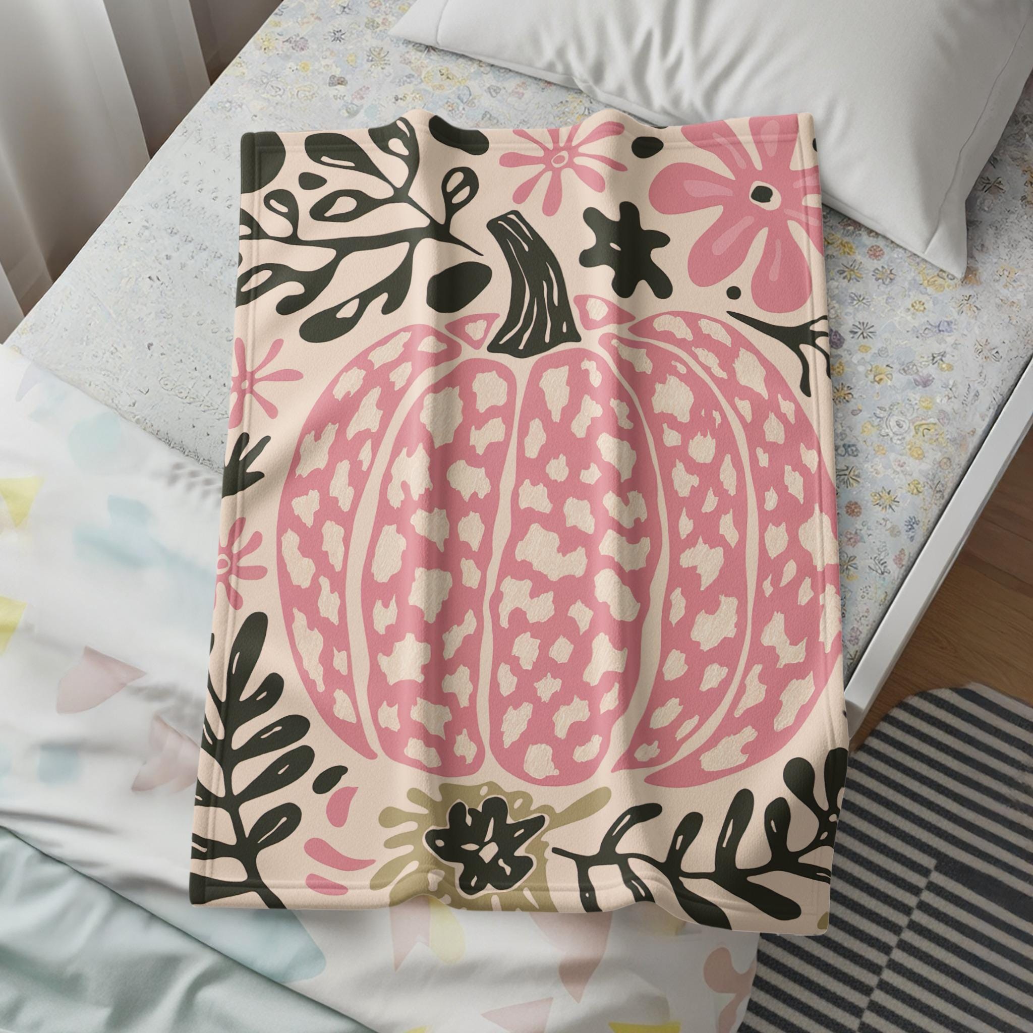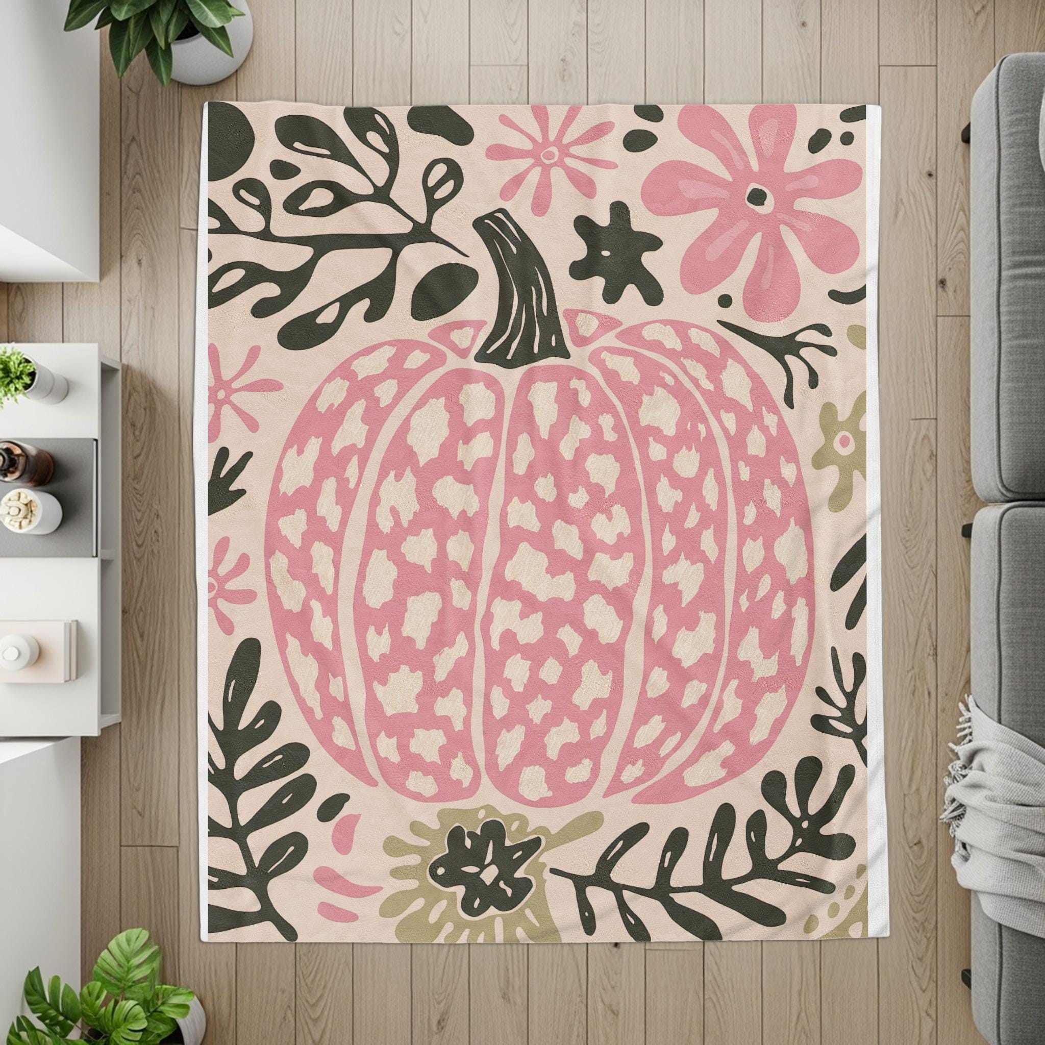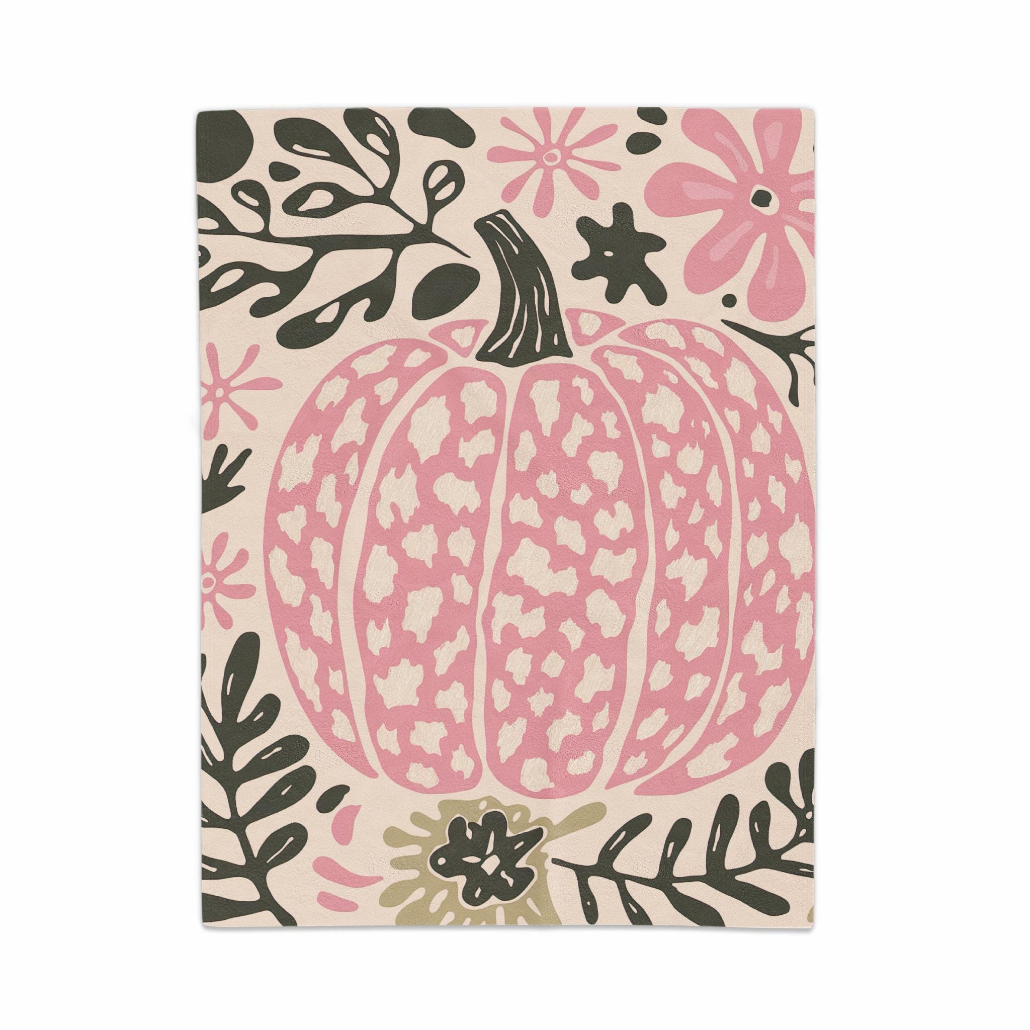 This elegant velveteen plush blanket features a charming pink pumpkin floral design, perfect for adding a touch of autumn to any room. The cozy and soft material makes it ideal for snuggling up on chilly days or as a stylish touch to your home decor. Whether you use it as a throw blanket on your couch or as an extra layer on your bed, this versatile piece will keep you warm and enhance your fall decor.