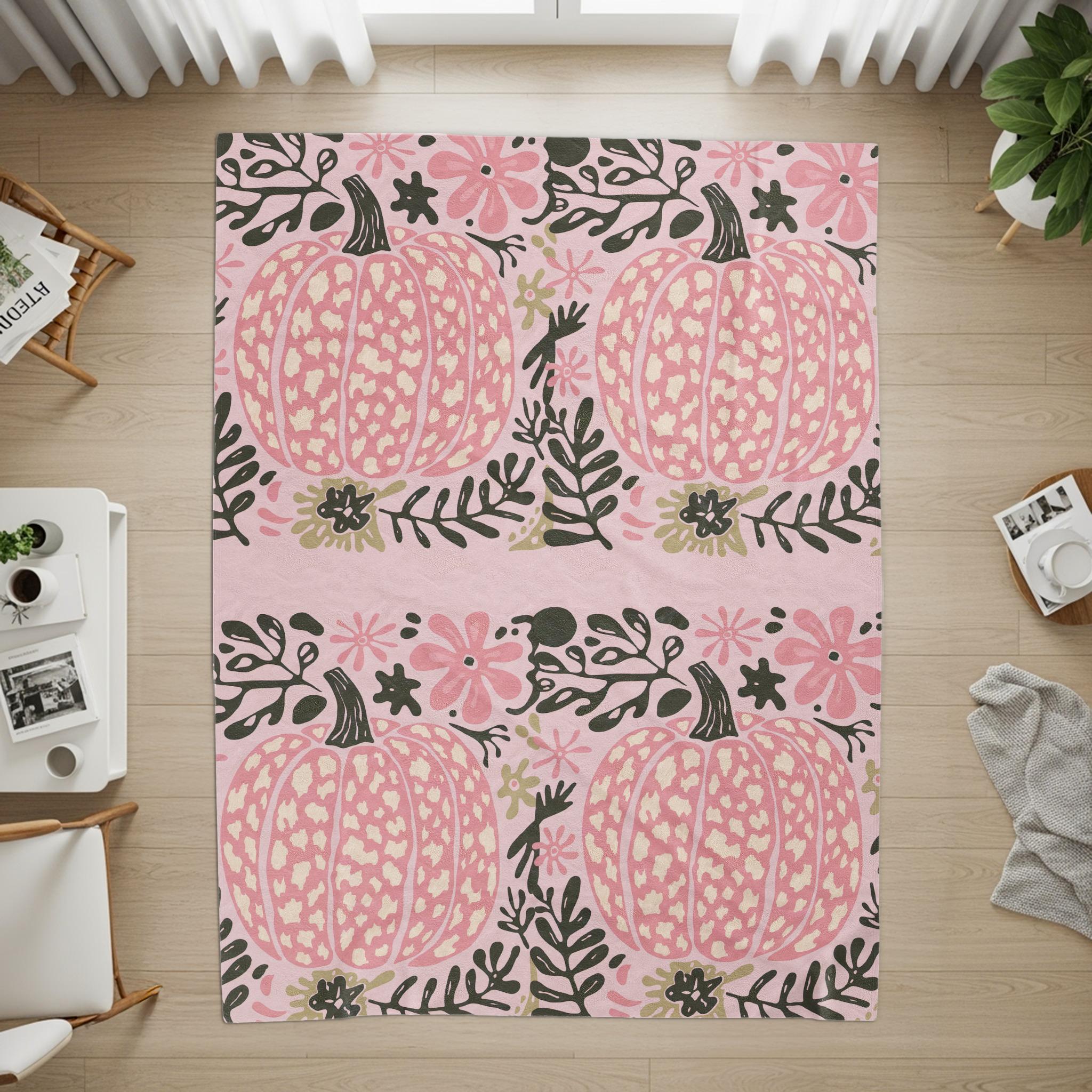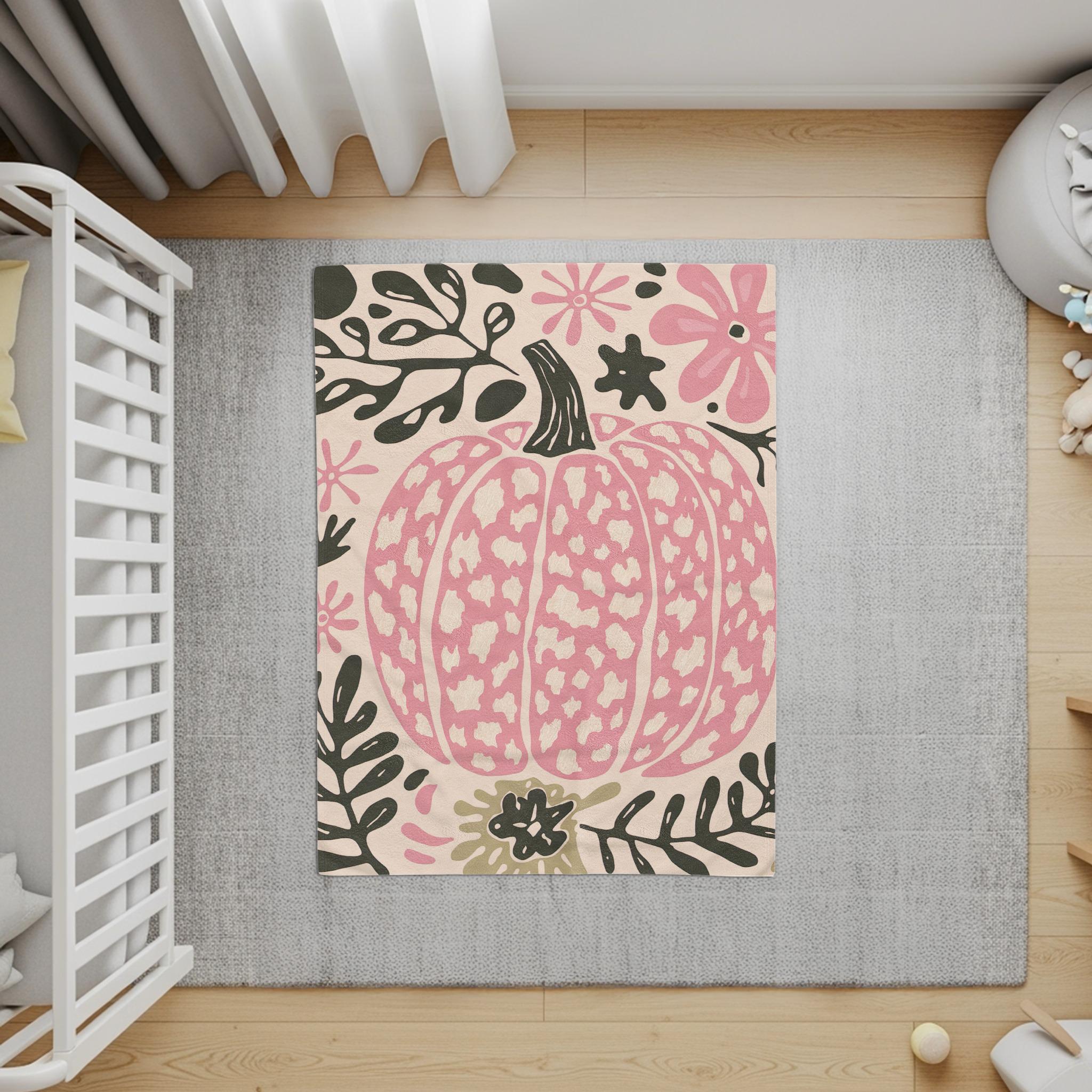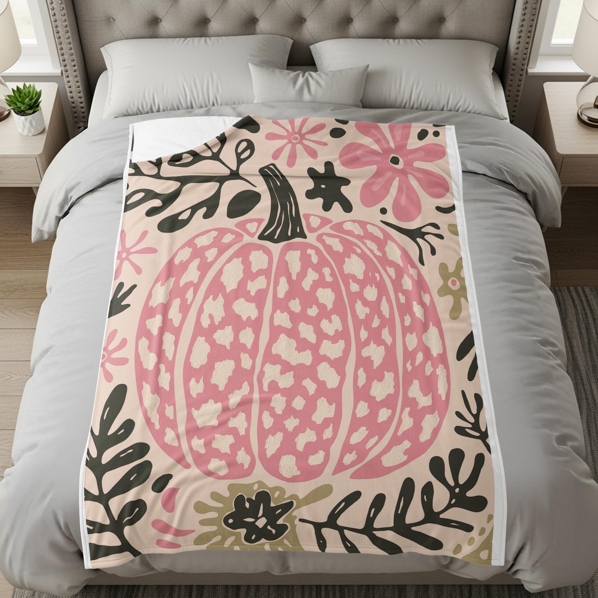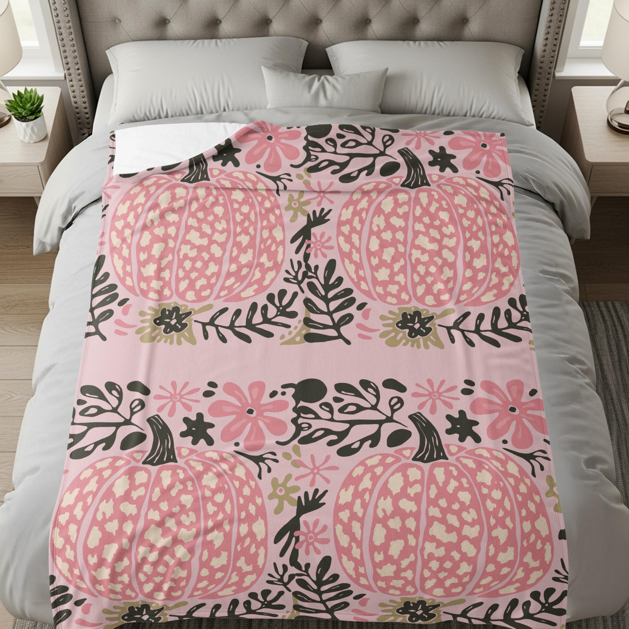 This elegant velveteen plush blanket features a charming pink pumpkin floral design, perfect for adding a touch of autumn to any room. The cozy and soft material makes it ideal for snuggling up on chilly days or as a stylish touch to your home decor. Whether you use it as a throw blanket on your couch or as an extra layer on your bed, this versatile piece will keep you warm and enhance your fall decor.