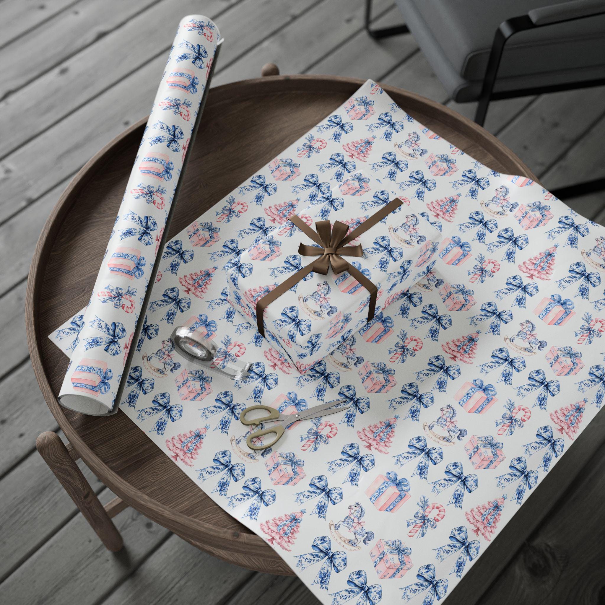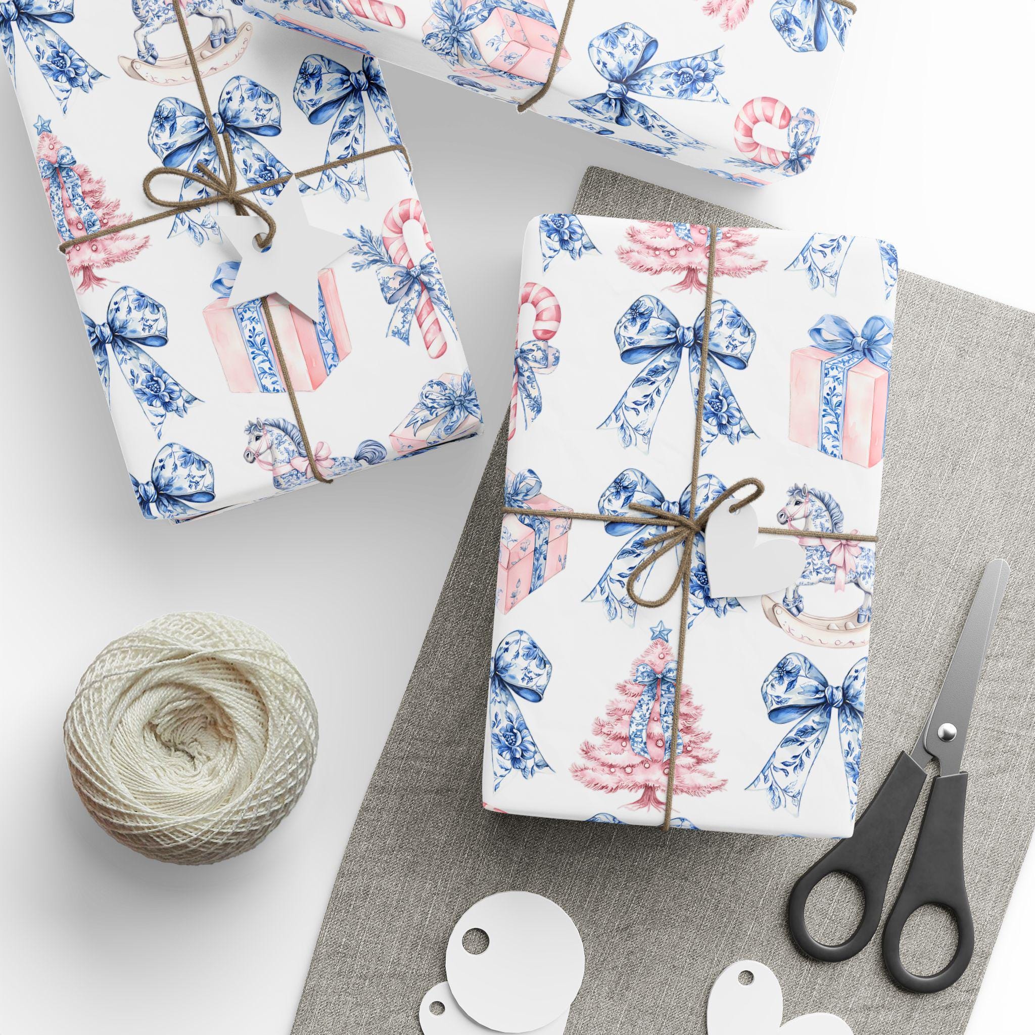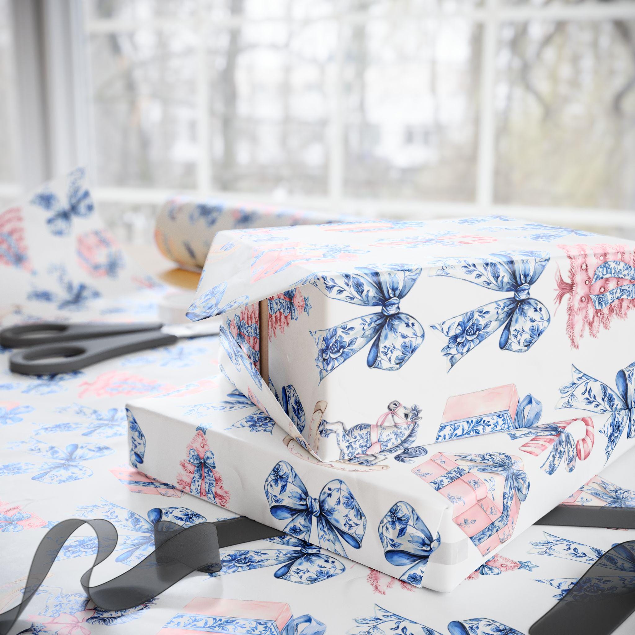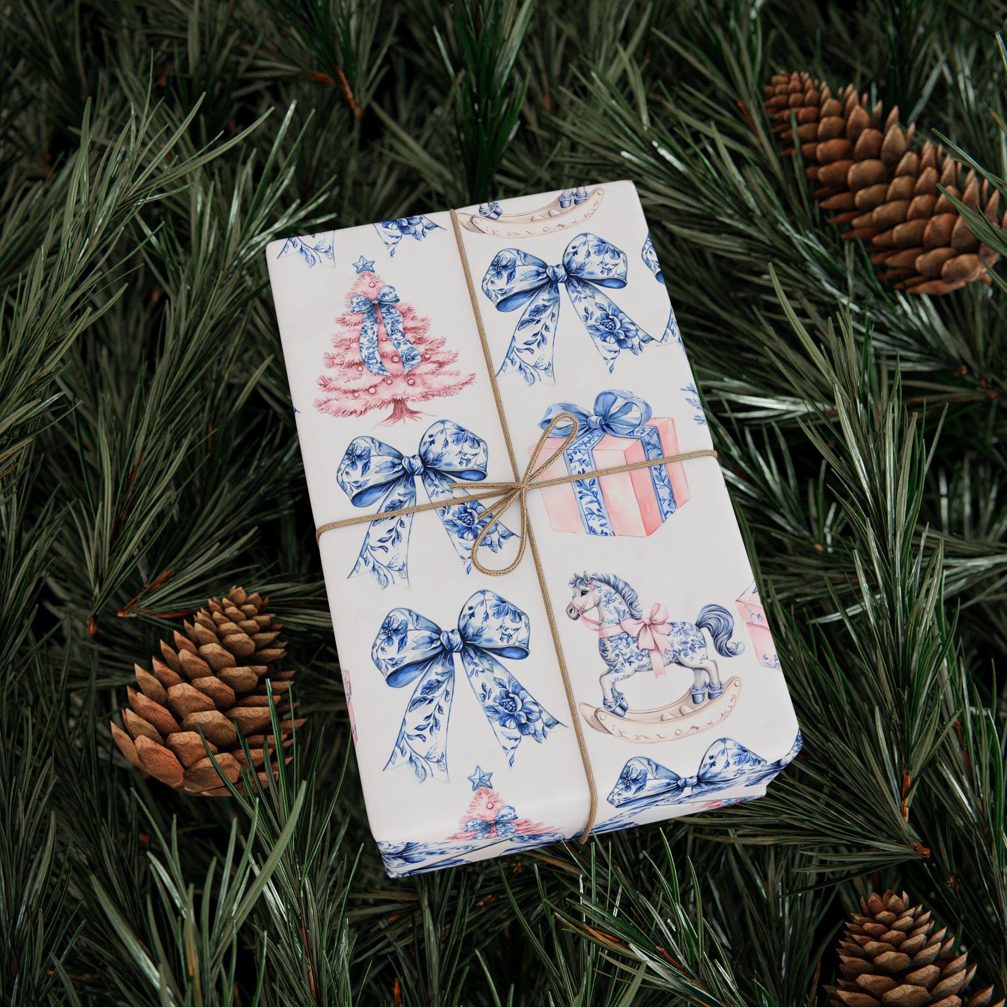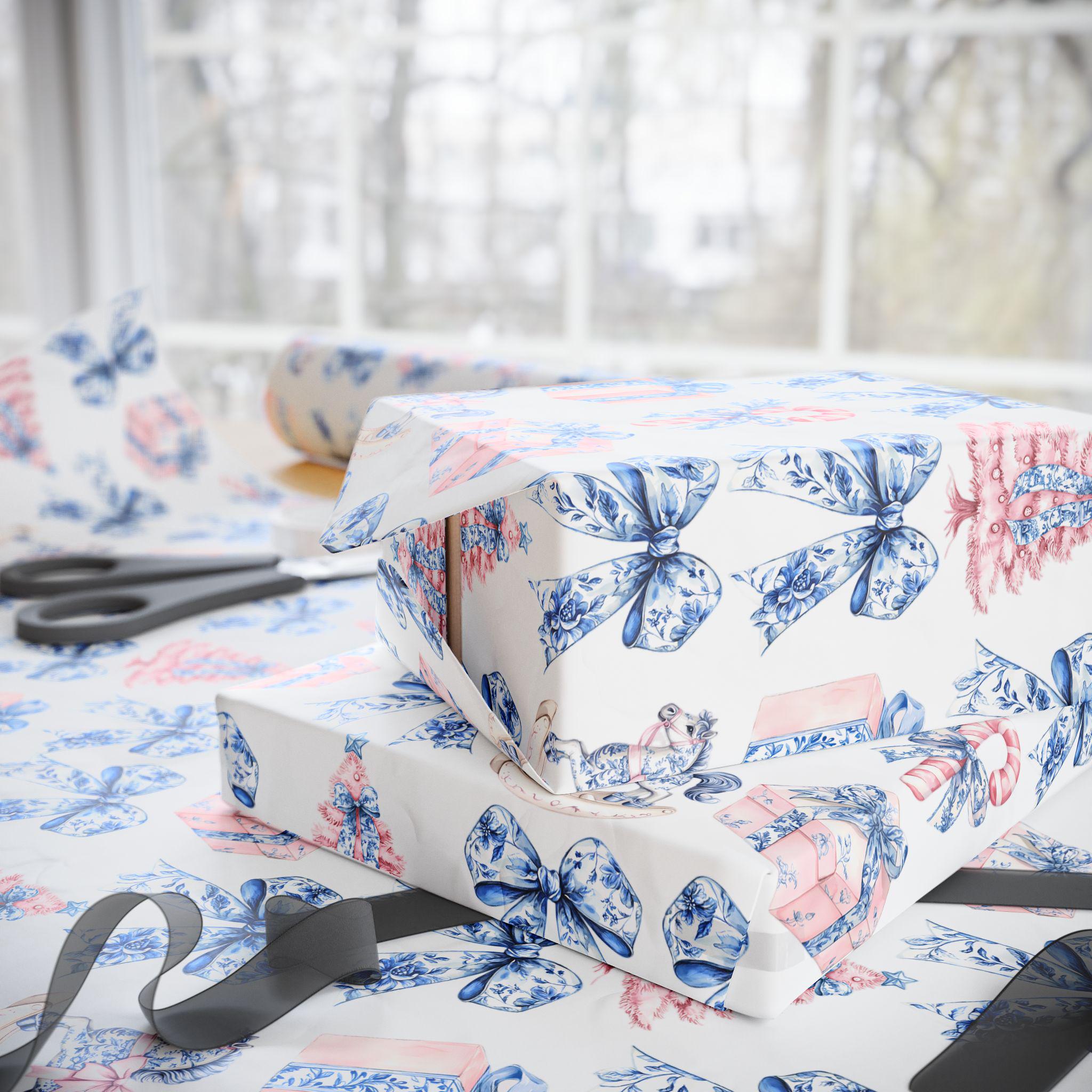 Elegant Blue Chinoiserie Pink Christmas wrapping papers that exude sophistication and charm. Perfect for adding a touch of luxury to your holiday gifts. Ideal for those who appreciate traditional yet stylish designs.