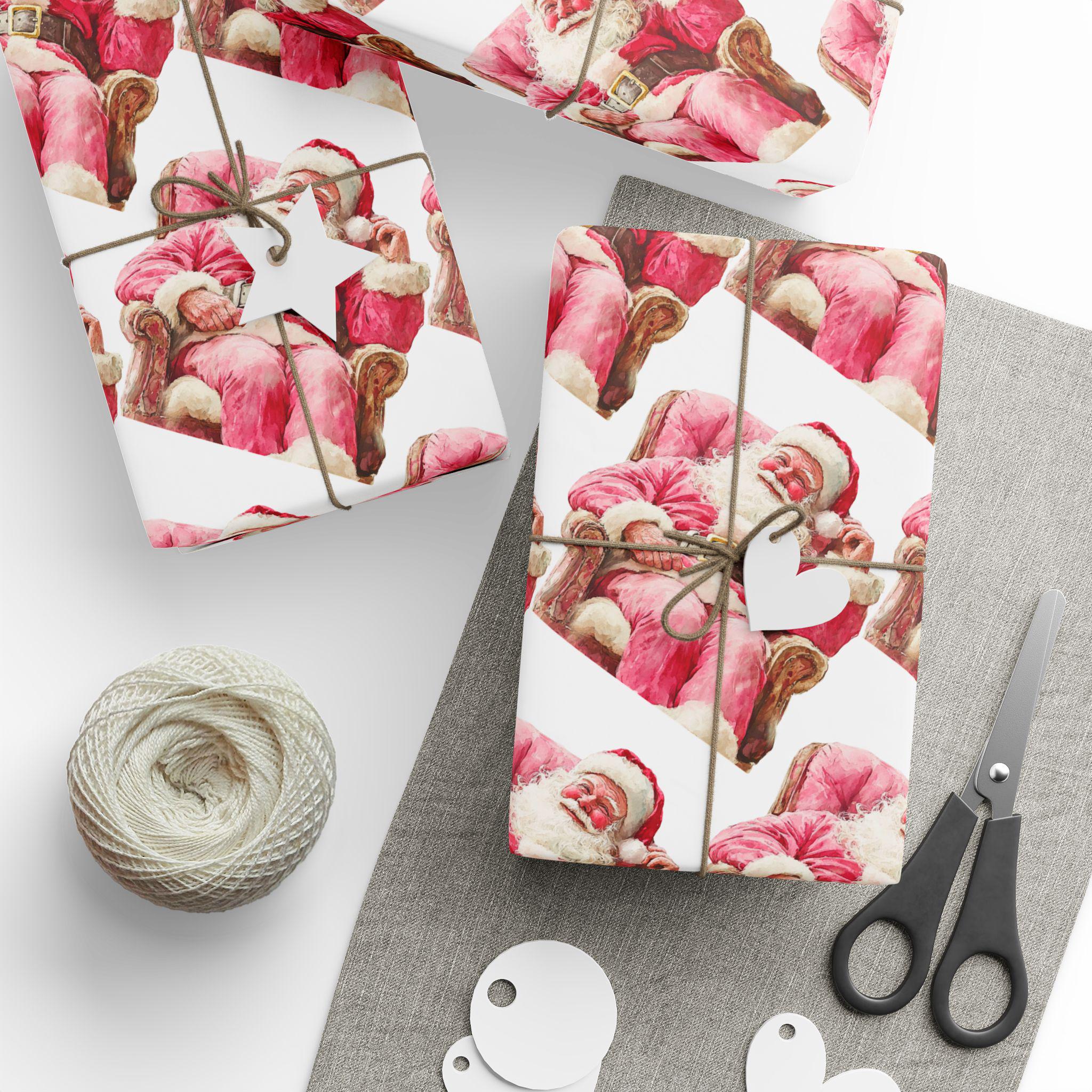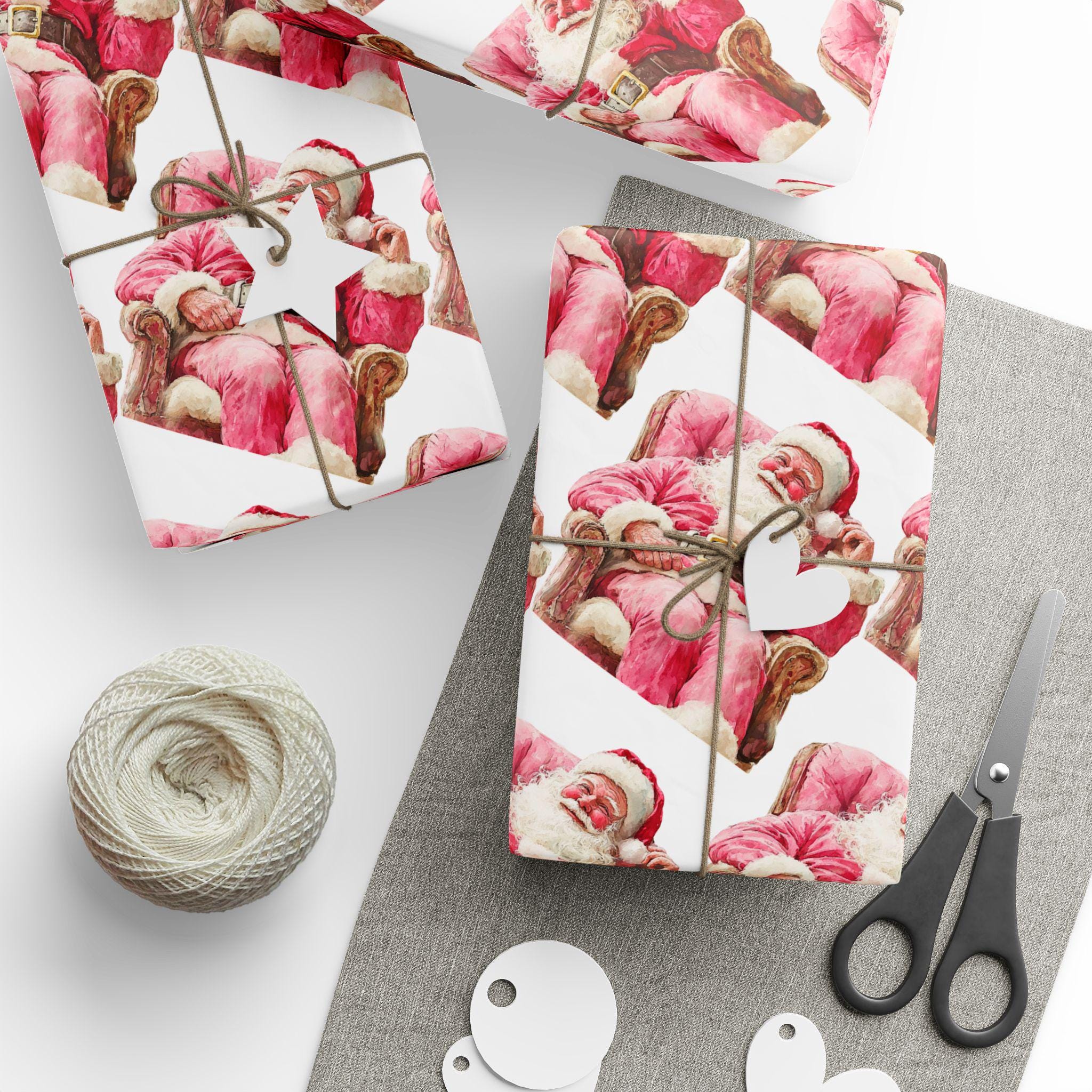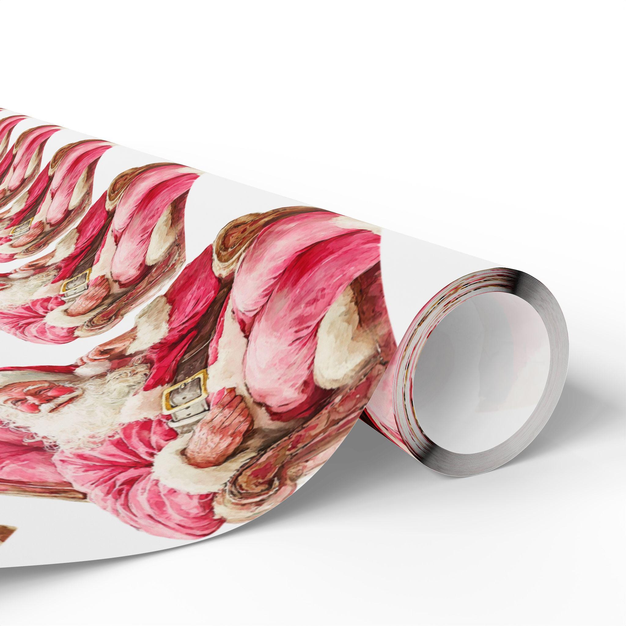 Vintage Hot Pink Santa Christmas Wrapping Papers, Blue Elegant Gift Wrap Roll, Holiday Celebration Gift Supplies, Festive Decorative