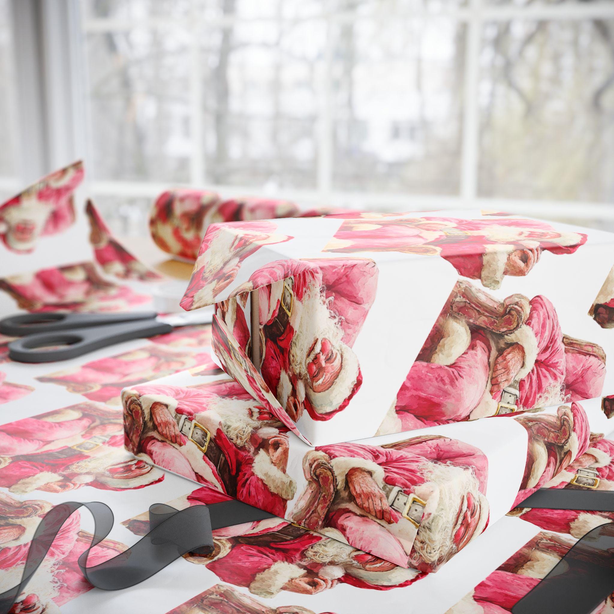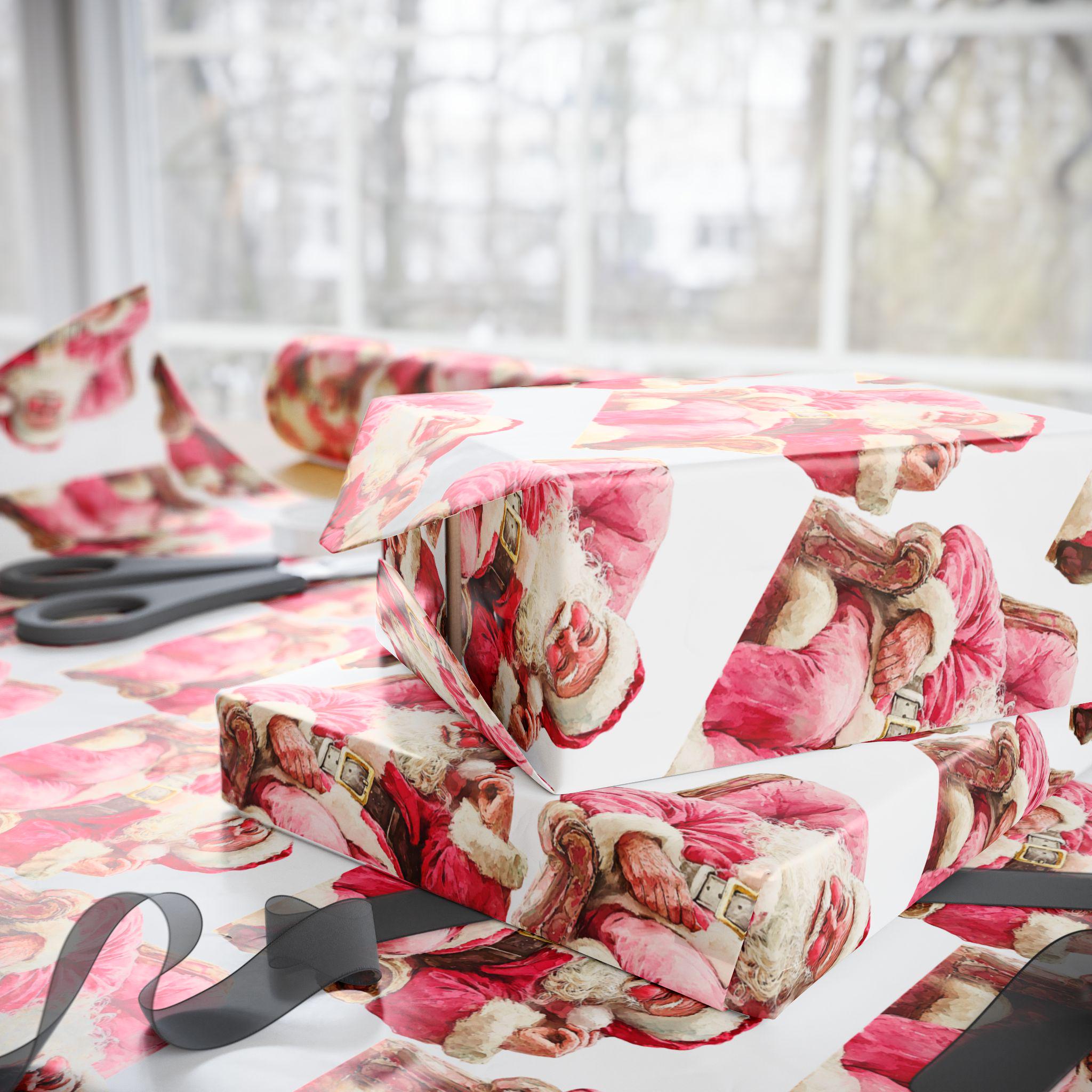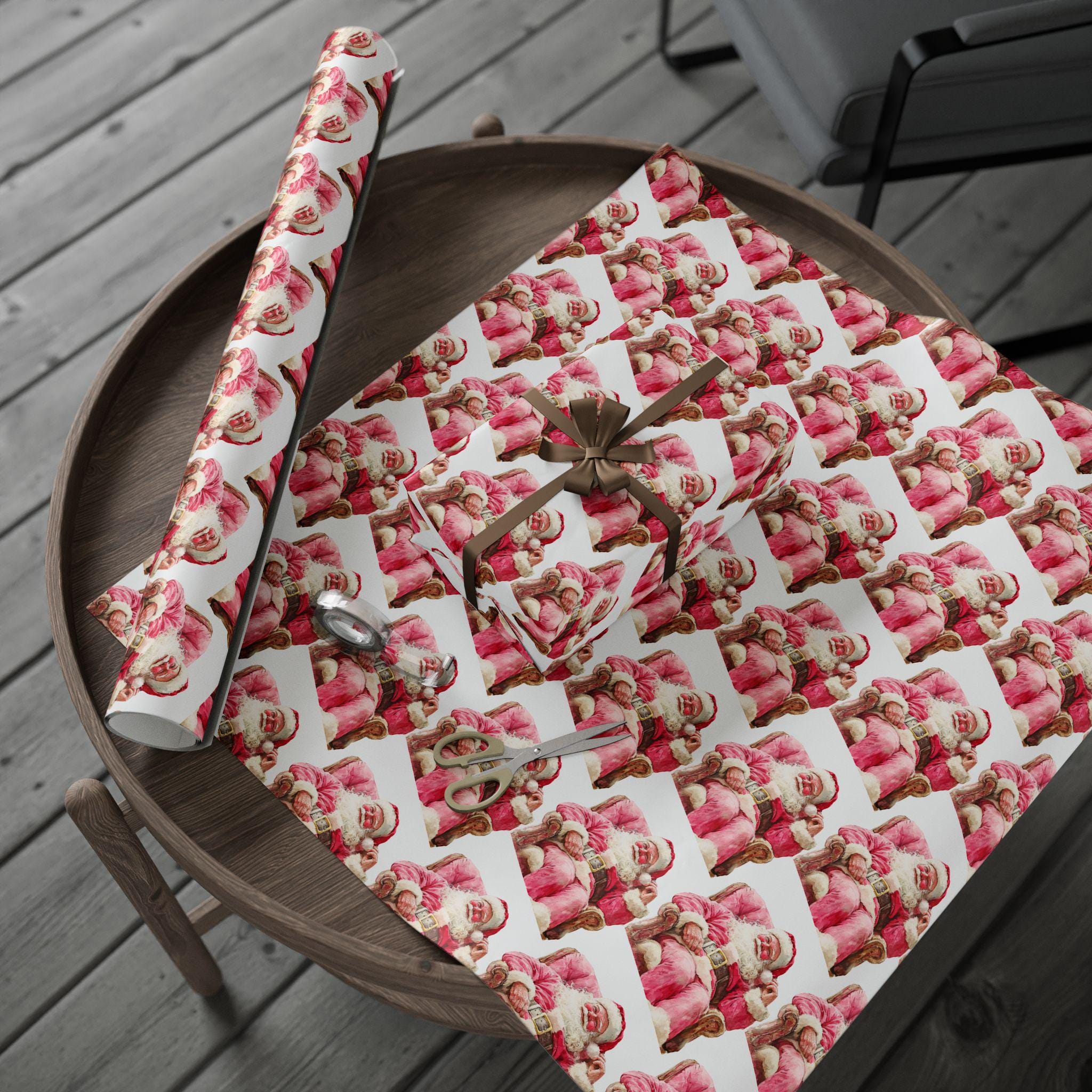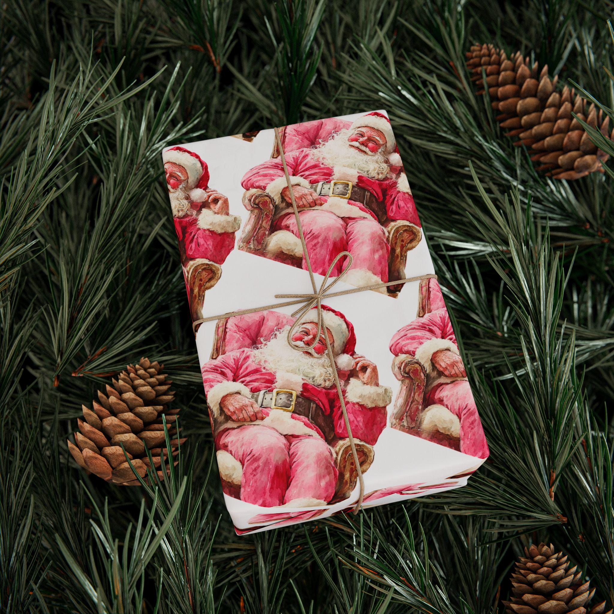 Vintage Hot Pink Santa Christmas Wrapping Papers, Blue Elegant Gift Wrap Roll, Holiday Celebration Gift Supplies, Festive Decorative