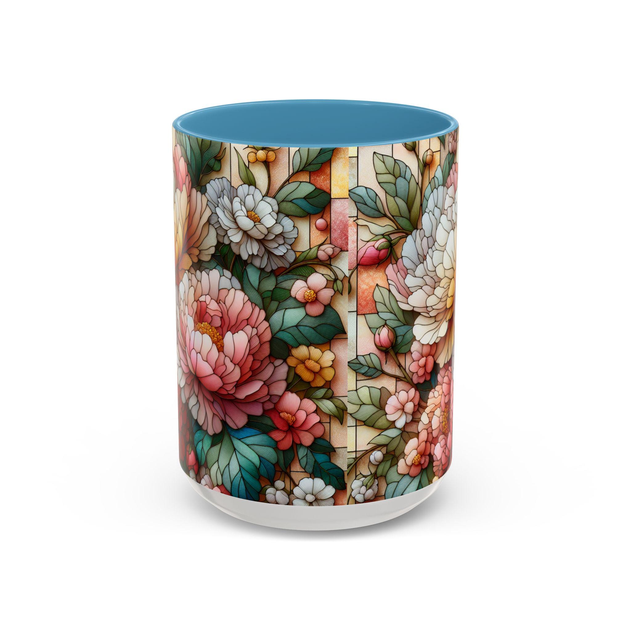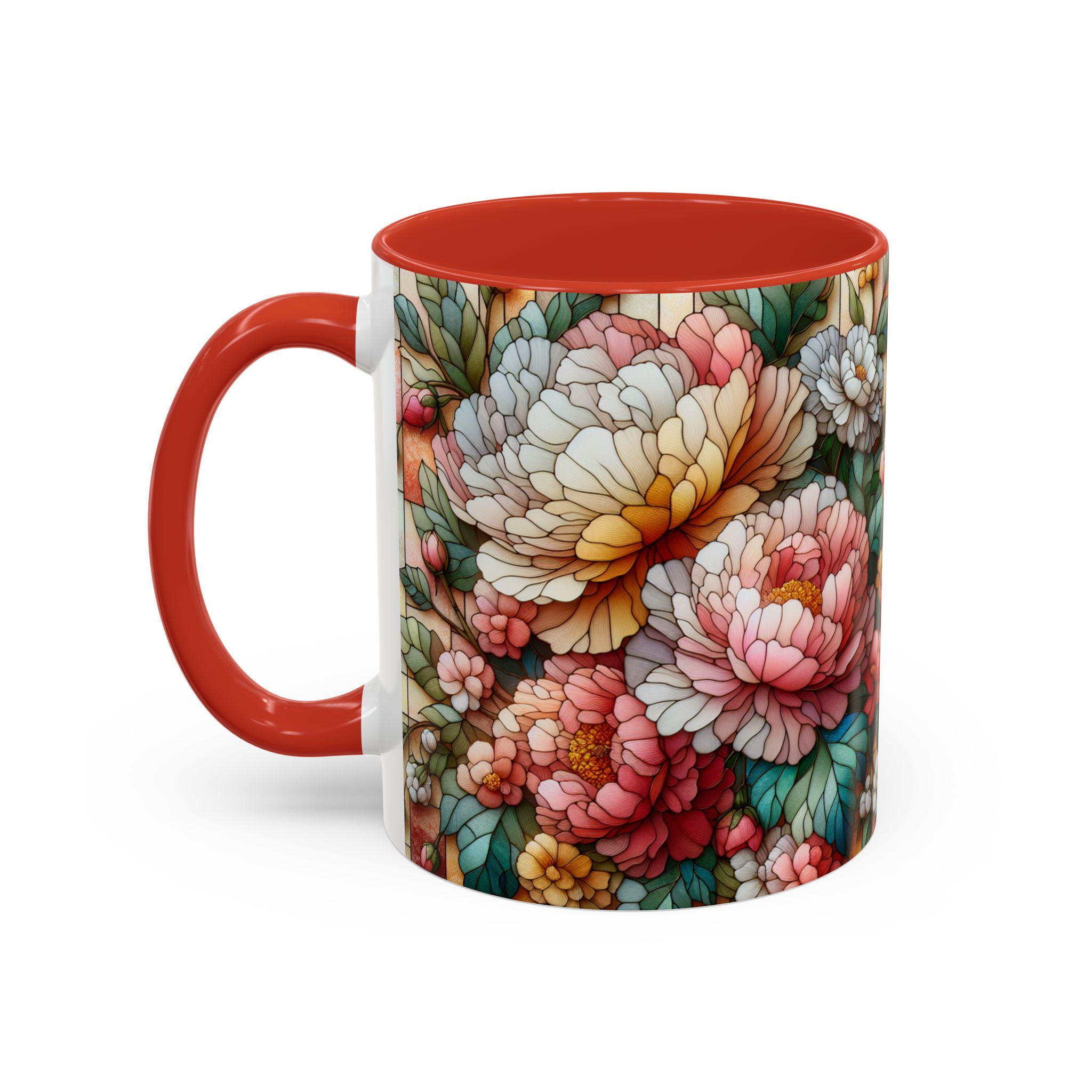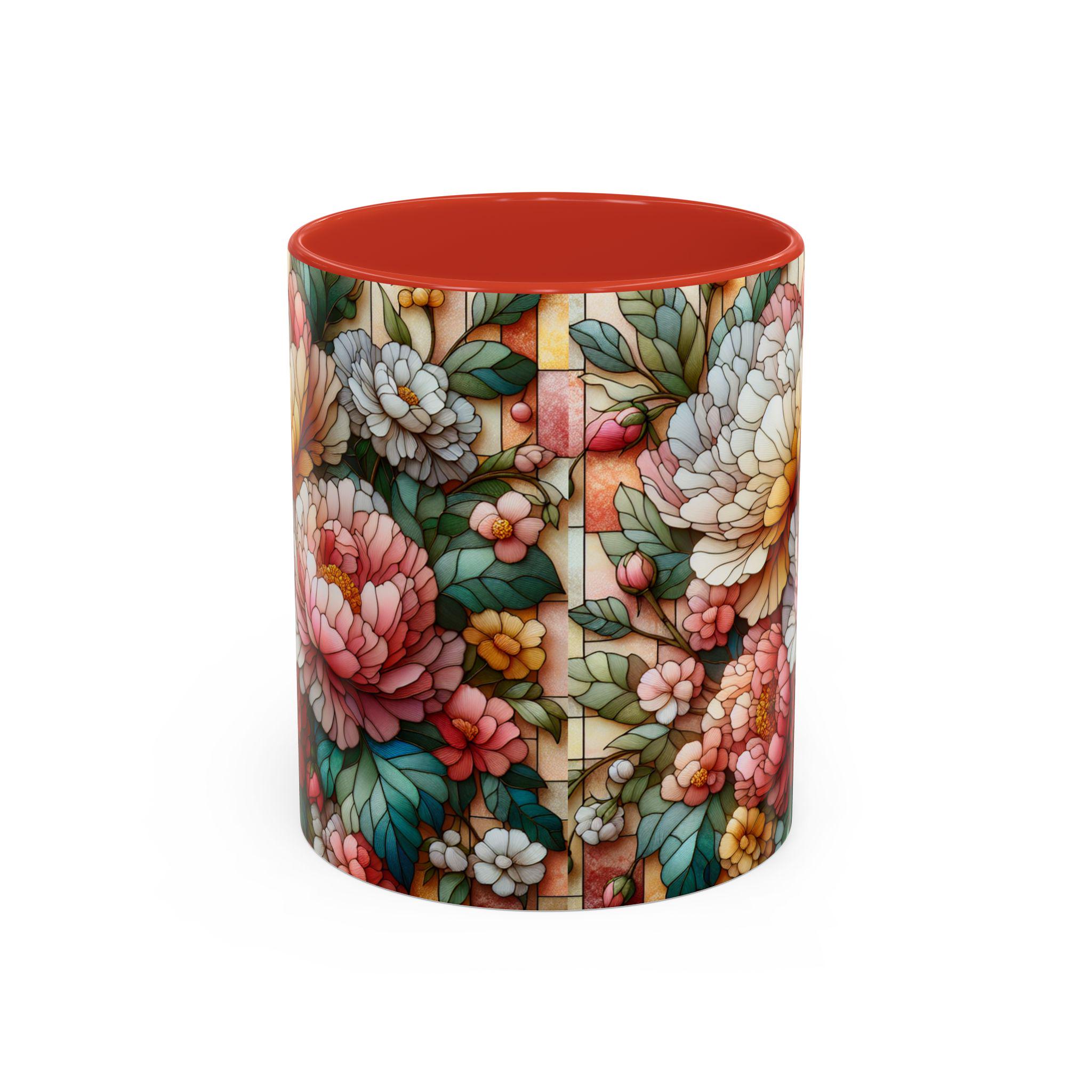 Stained Glass Peonies Mug: Floral Ceramic Coffee Cup