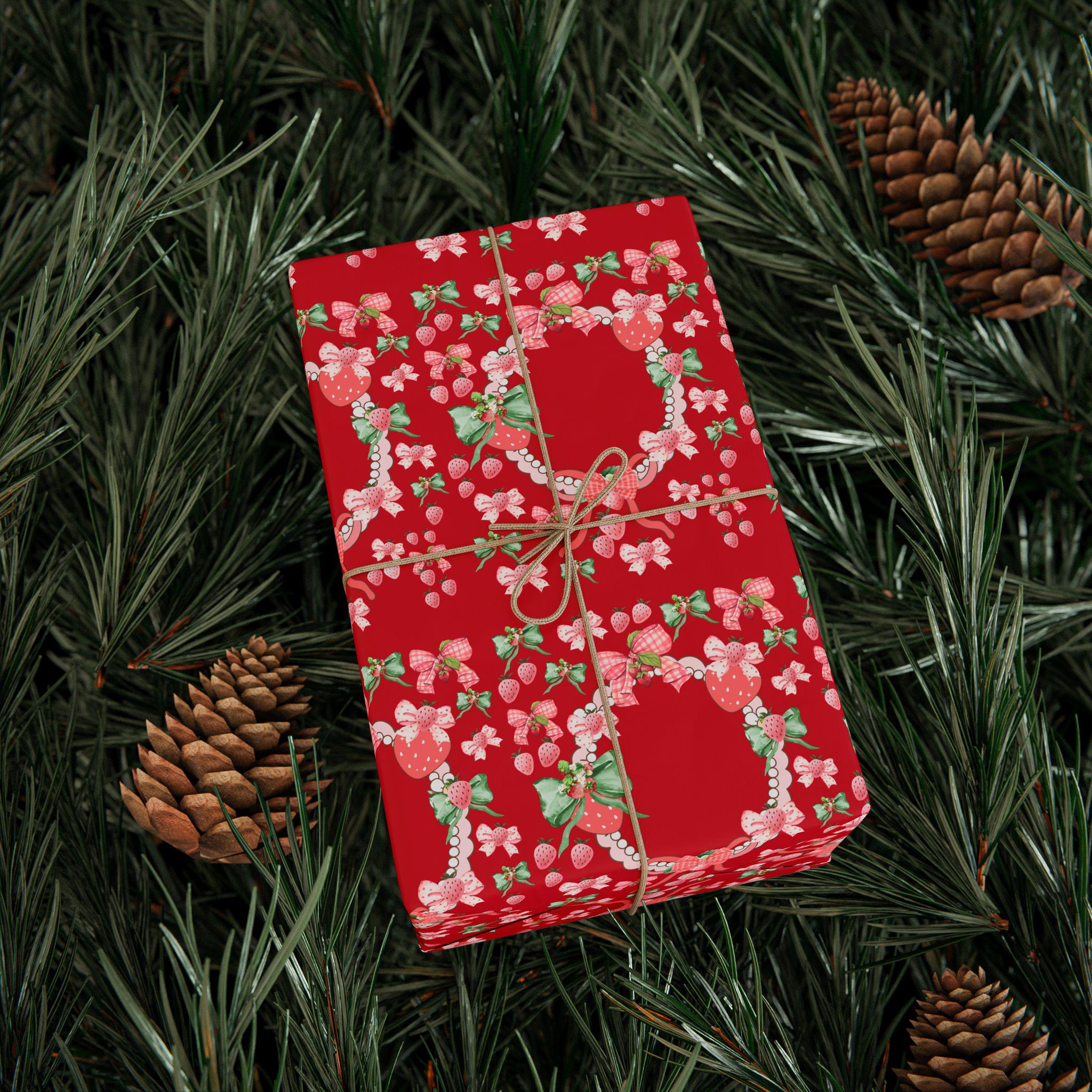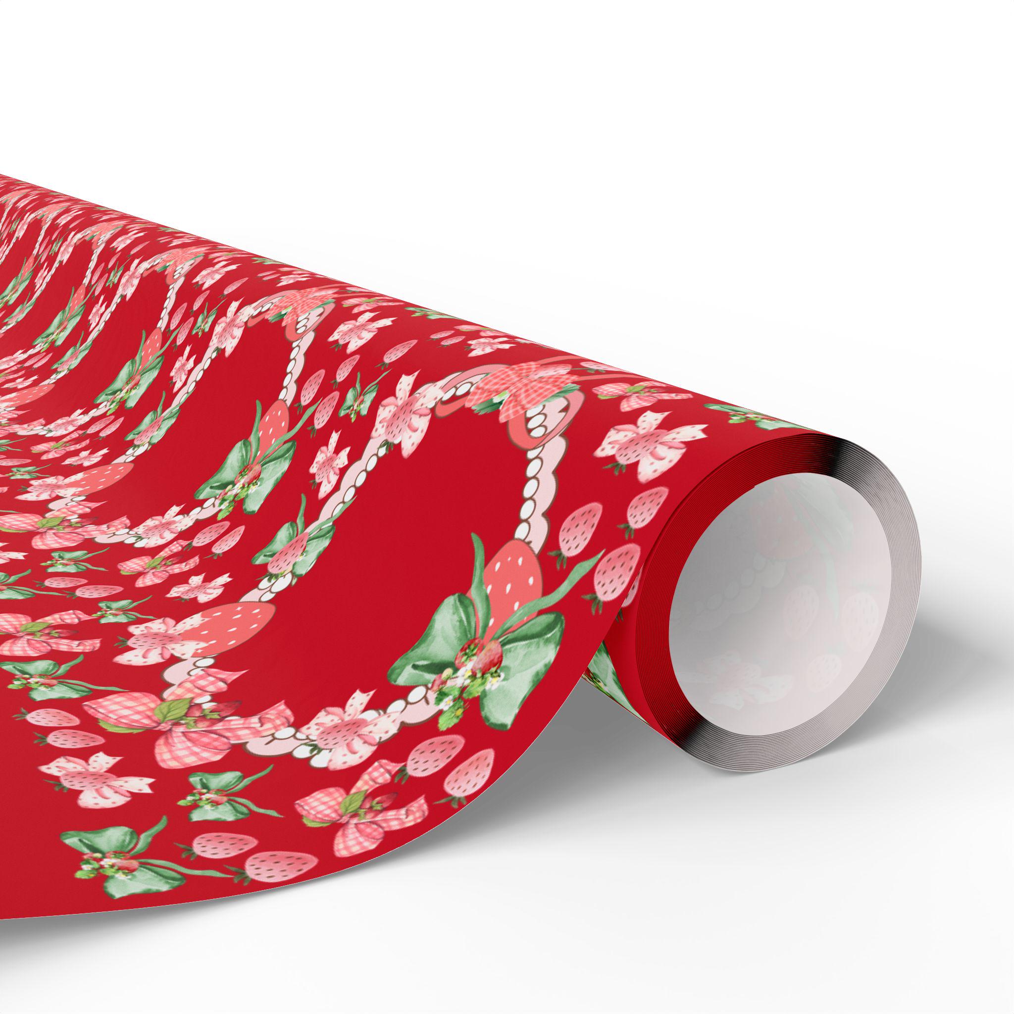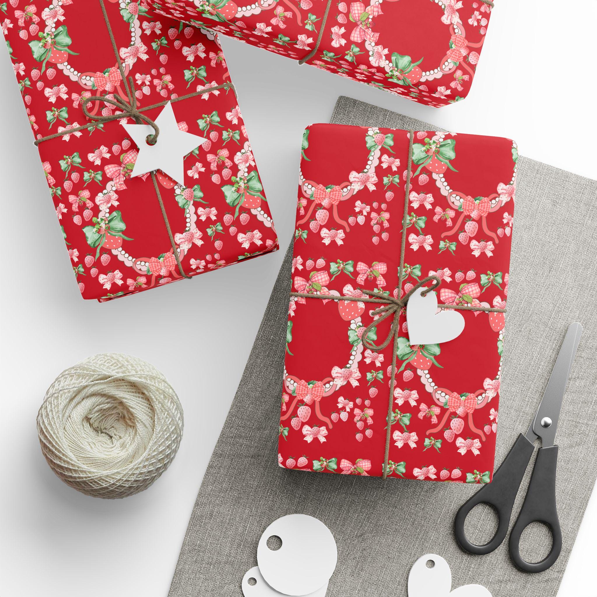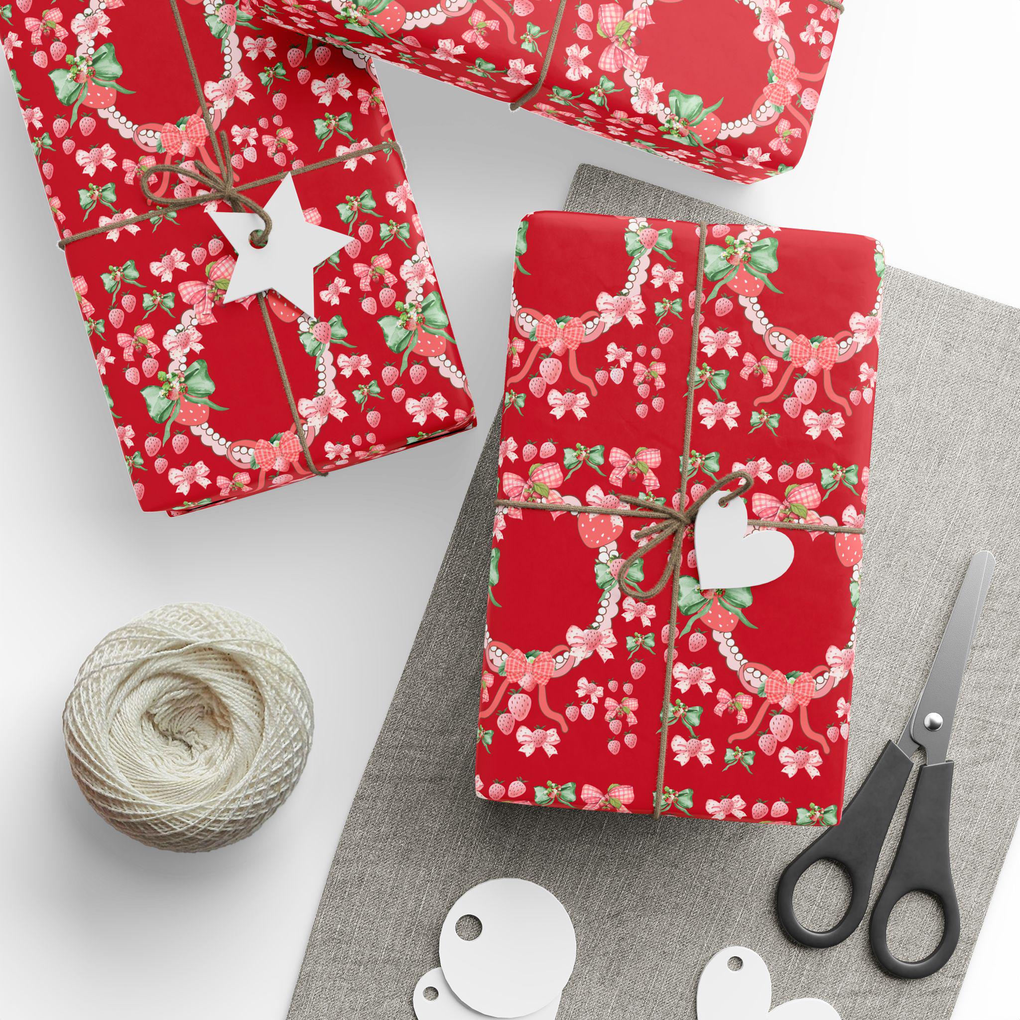 Luxurious vintage-style strawberry pink bow gift wrap perfect for boho, coquette, and festive occasions. This wrapping paper exudes a classy and elegant vibe, making your gifts stand out. Ideal for those who appreciate attention to detail and want to add a touch of luxury to their gift-giving.