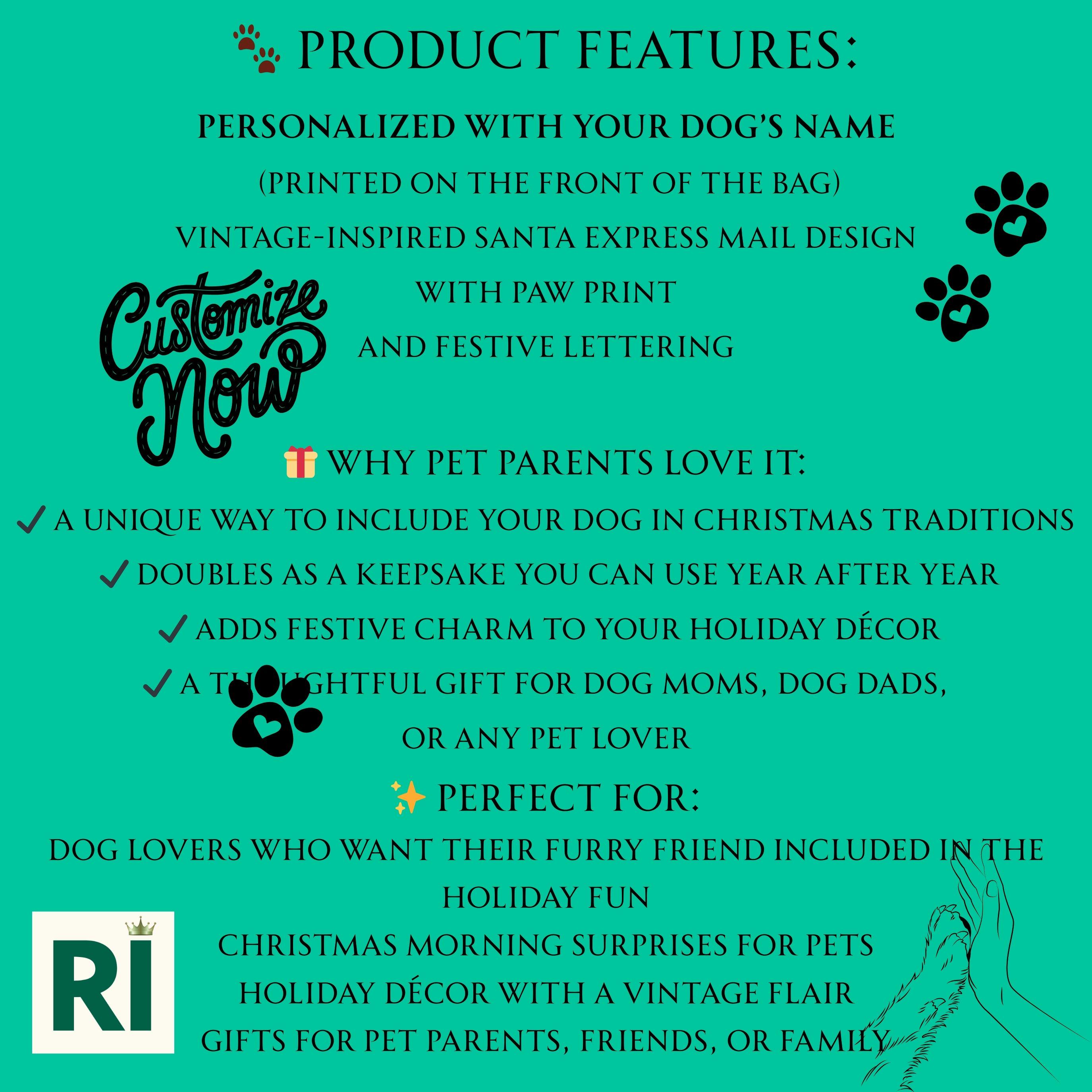 Personalized Dog Santa Sack, Pet Christmas Gift Bag, Santa Express Dog Sack, Custom Dog Name Bag, Dog Holiday Gift Bag, Christmas Paw Print Sack, Vintage Pet Santa Bag