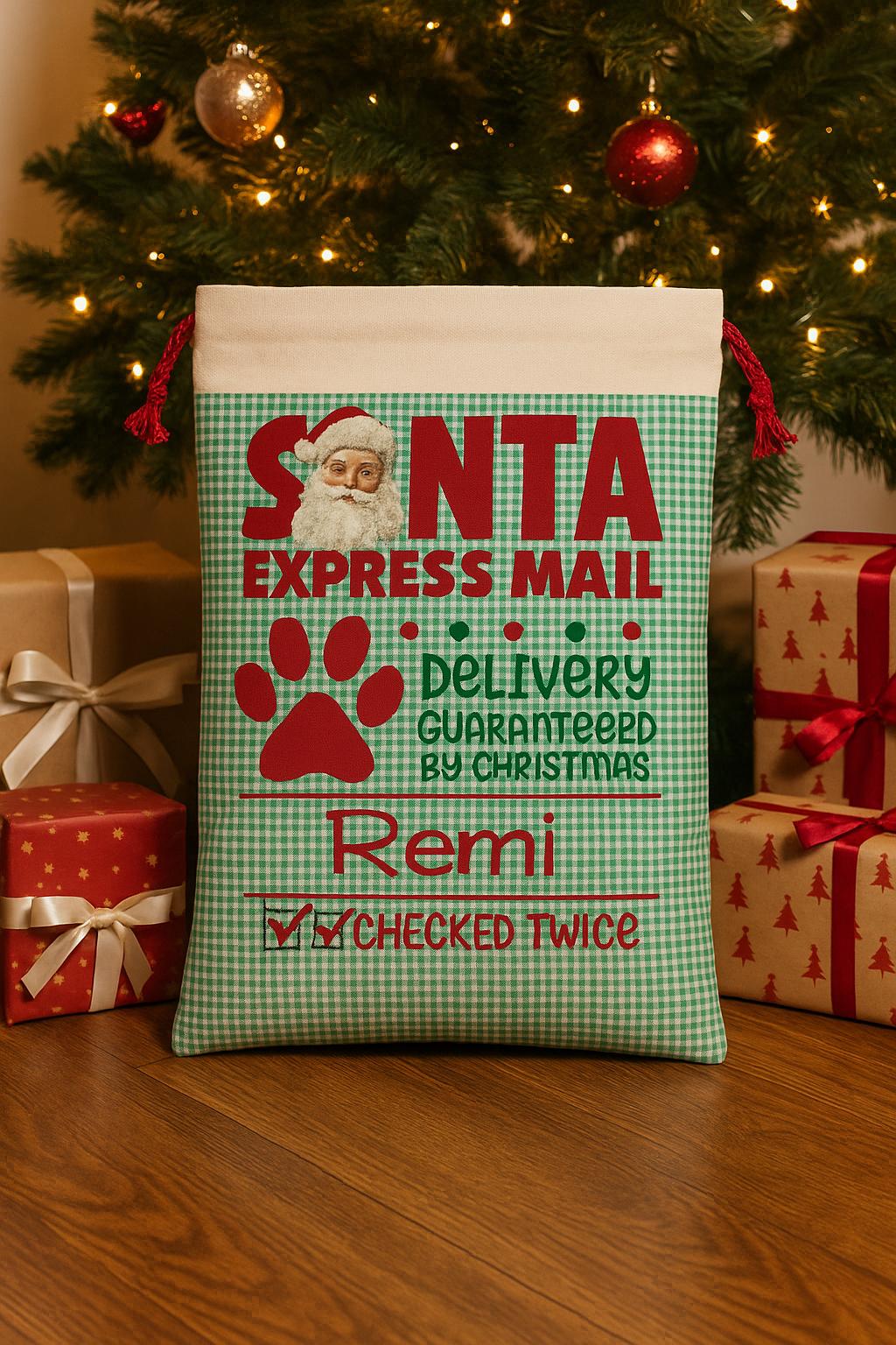 Personalized Dog Santa Sack – Santa Express Mail Christmas Gift Bag