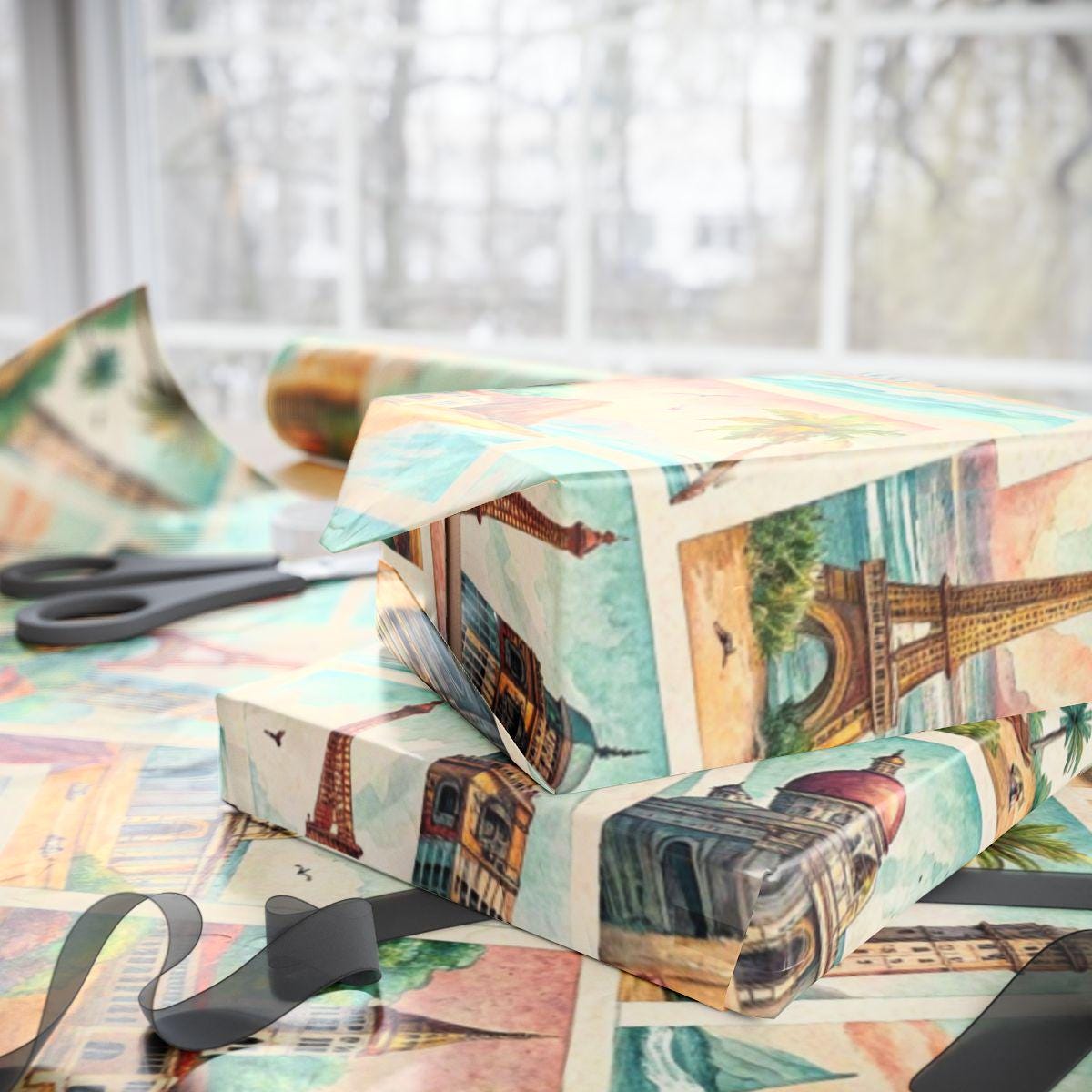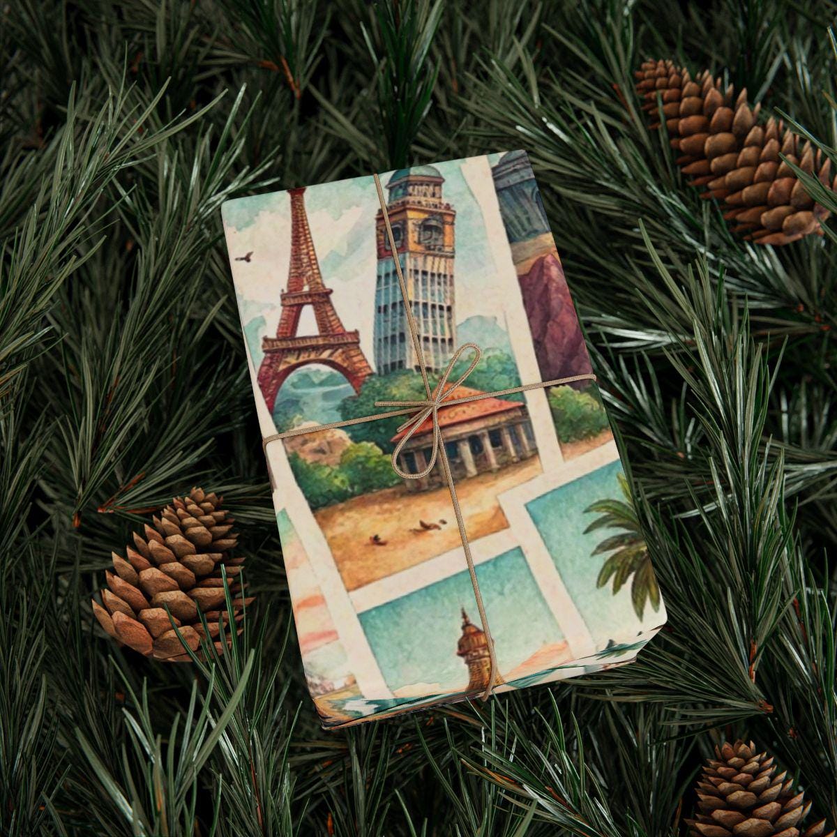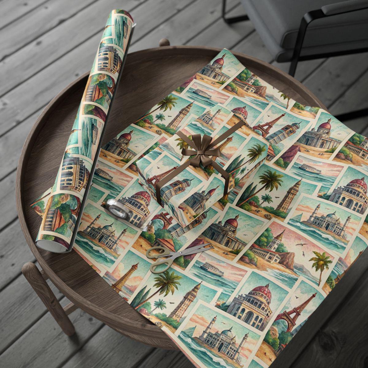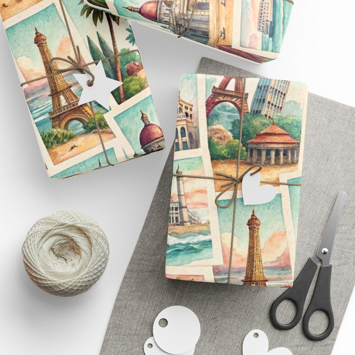 Add a touch of elegance to your gifts with this luxury custom wrapping paper featuring various world travel landmarks. Perfect for any special occasion, this premium quality gift wrap makes your presents stand out with its unique, vintage-inspired design. Ideal for those who appreciate the beauty of iconic structures from around the globe, this wrapping paper adds a sophisticated and personal touch to your gift-giving experience.