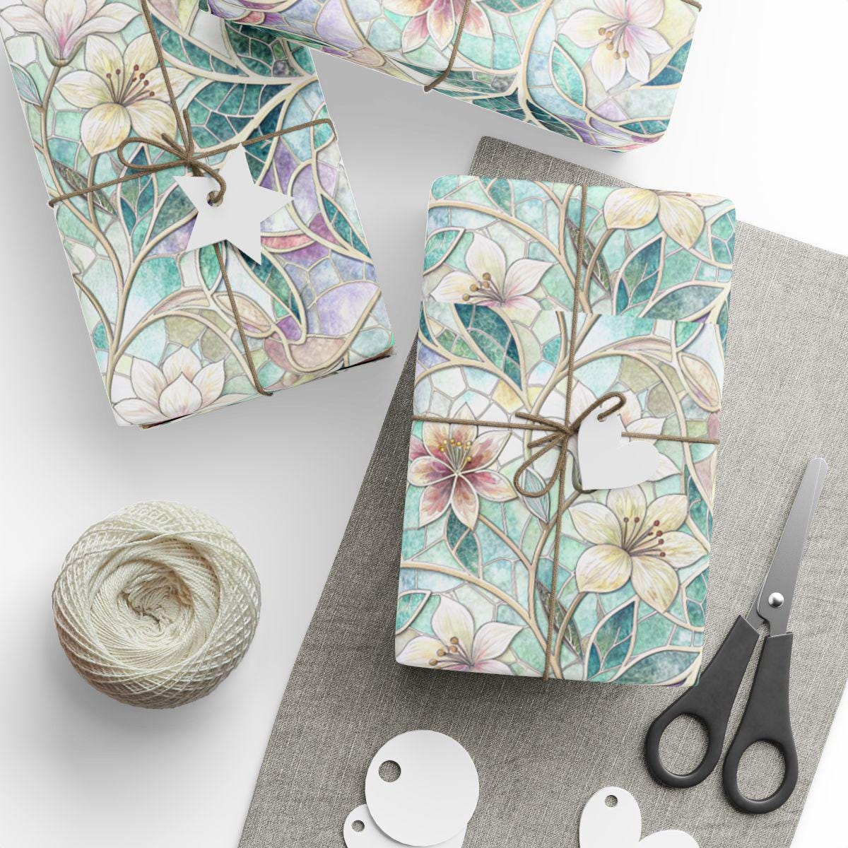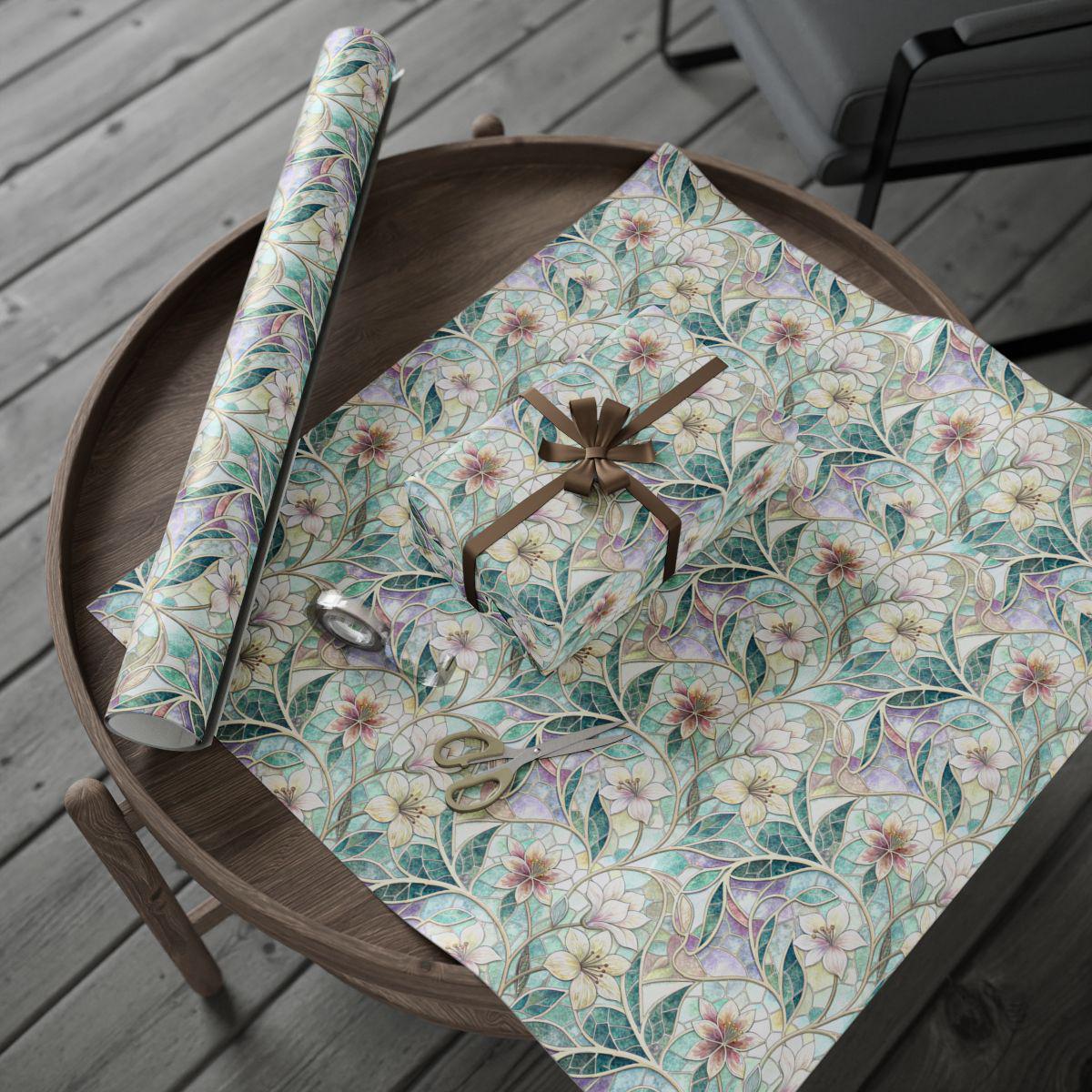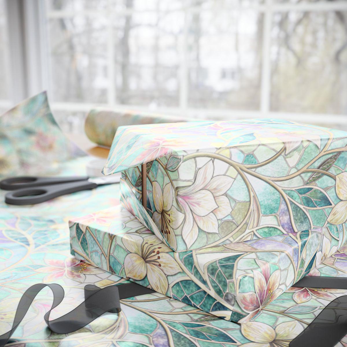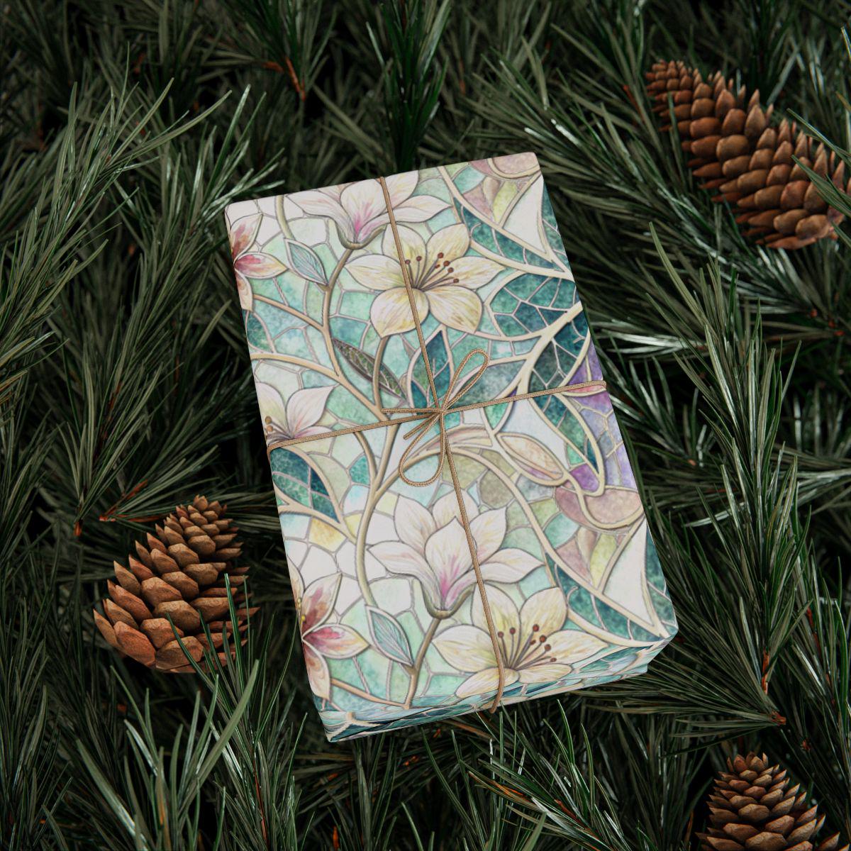 Stained glass floral design wrapping paper, luxury gift wrap, boutique style wrapping sheets for birthday or holiday presents. Wrapping Paper is available in 3 different size rolls. This is luxury, custom, boutique style gift wrap that is not available in stores. Wrapping Paper tends to sell out quickly. For example, in 2024; most of our paper was out of stock by November. We are hoping this year will be better as far as stock is concerned. With that in mind; if you see a design you really like; I would encourage ordering early. Thank you for shopping with our small family business.